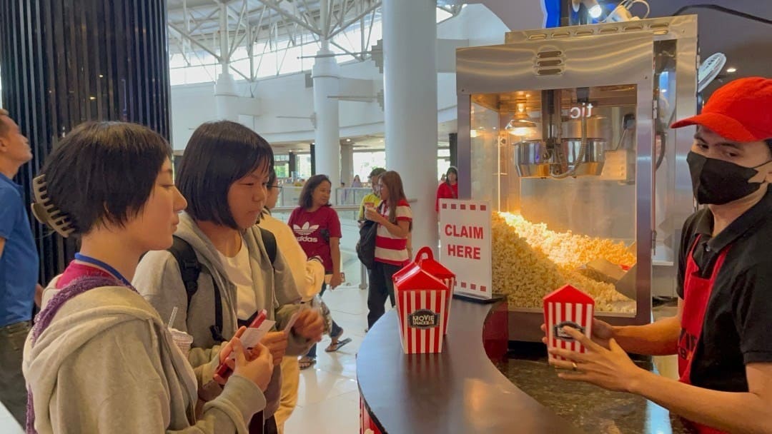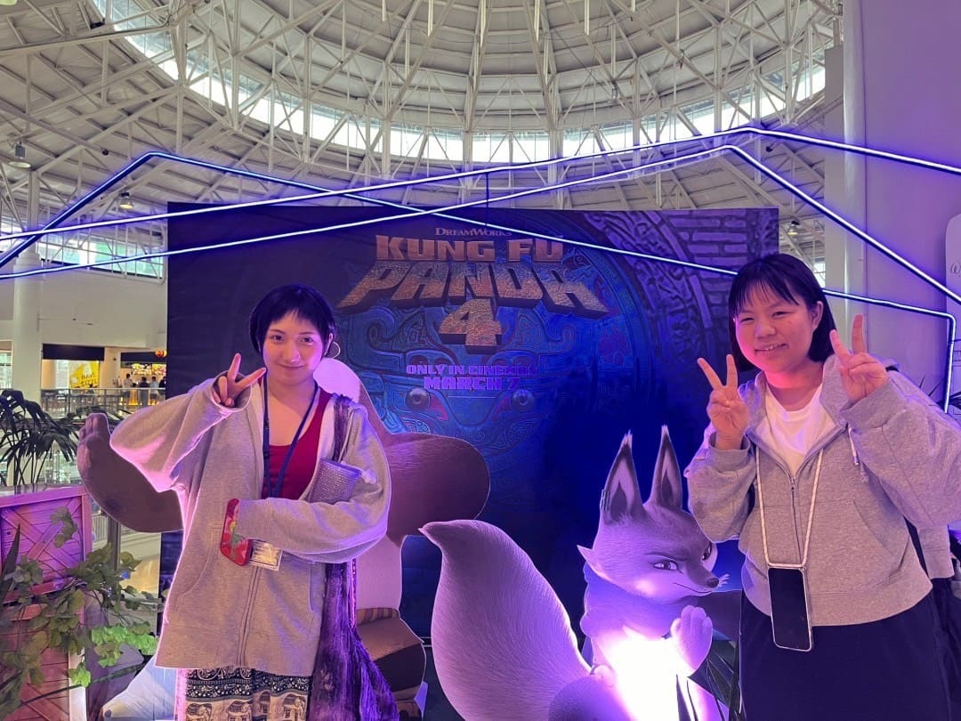 英語講師と映画館へ行く課外クラスの様子♪チケット購入ももちろん英語でチャレンジ☆英語講師のKenjがしっかりサポートしてくれるので心強い。映画は「カンフーパンダ」を楽しみました。チケットを購入すると、なんと無料のポップコーンが付いてくるからラッキー!(^^)!映画館には、やっぱりポップコーンが最高ですよね。