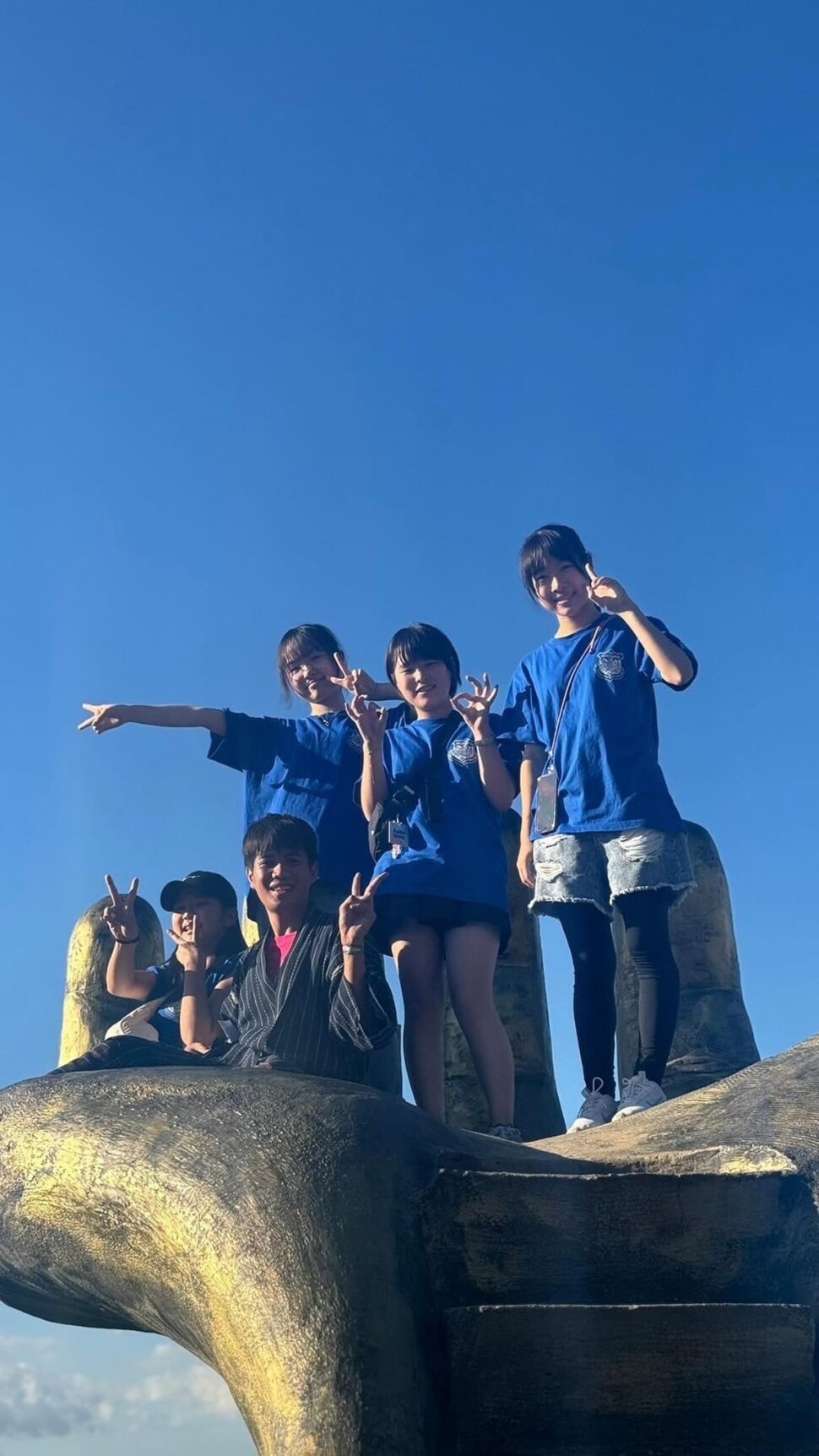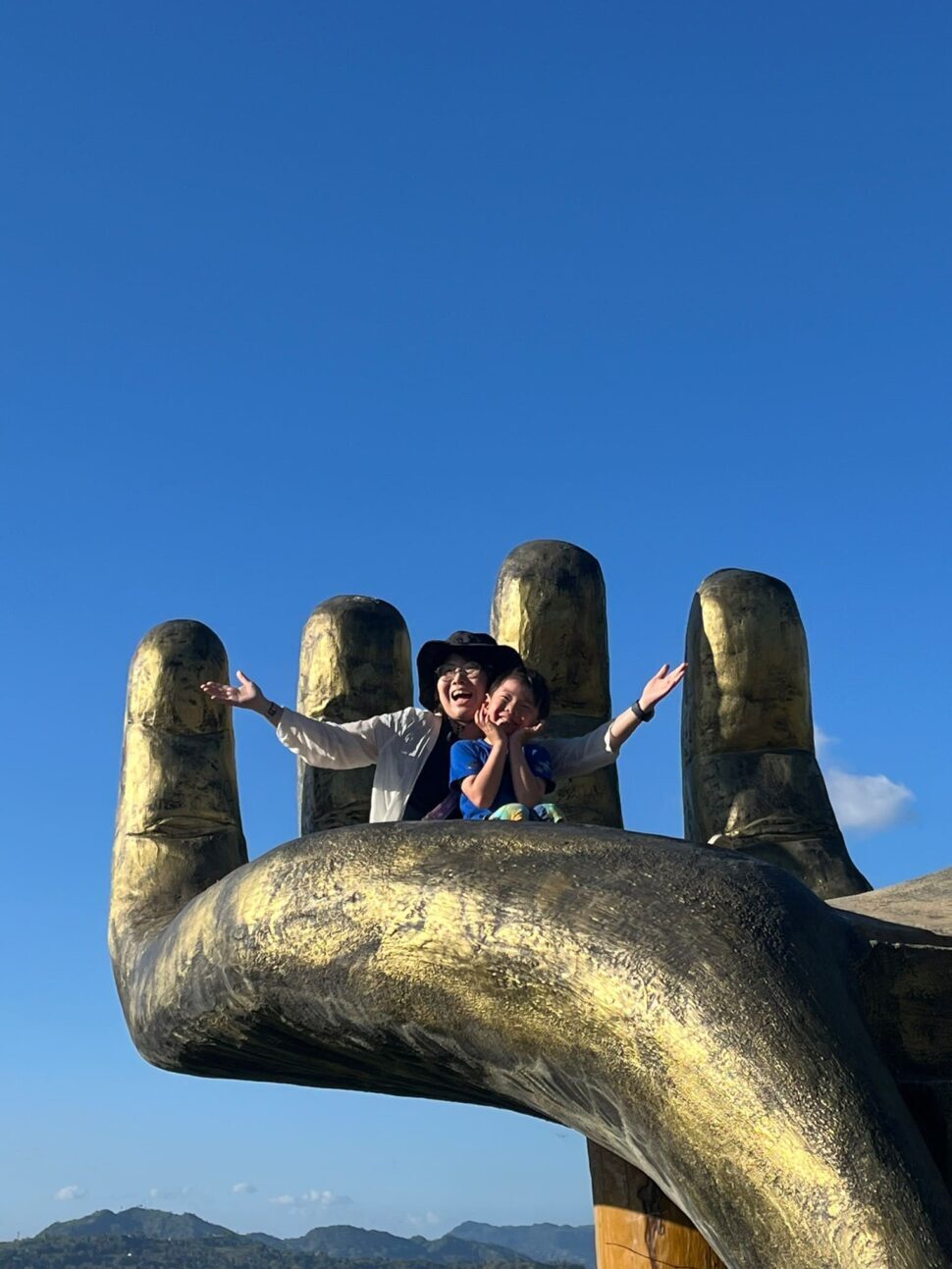 有名な金色の手のひらオブジェは、圧倒的な存在感で人気のスポット。素敵なスナップが撮れましたよ♪