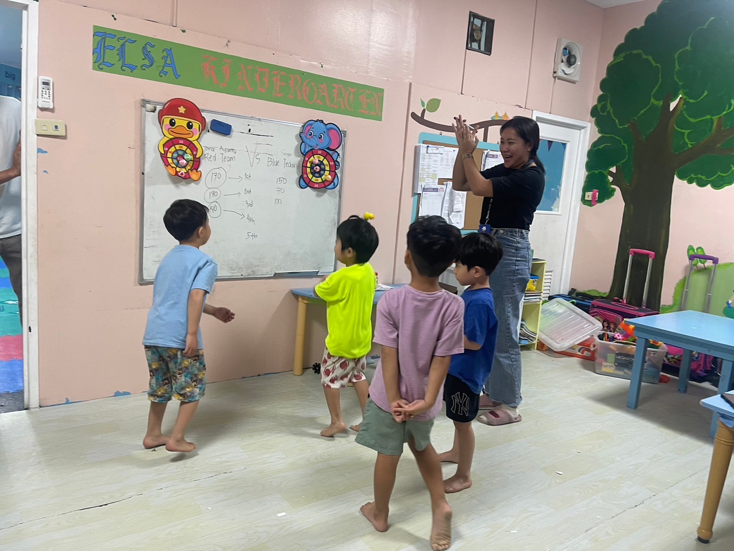 幼稚園クラスでは、集団生活ルールに至るまでもちろんALL English。