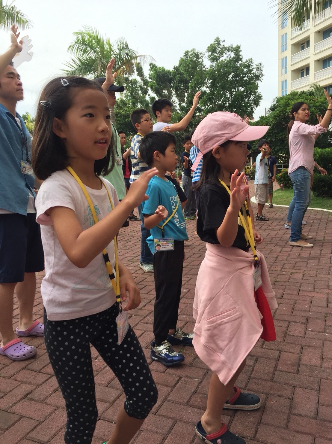 授業の合間に行われる英語のリズムゲームは小学生の子に大人気!!
