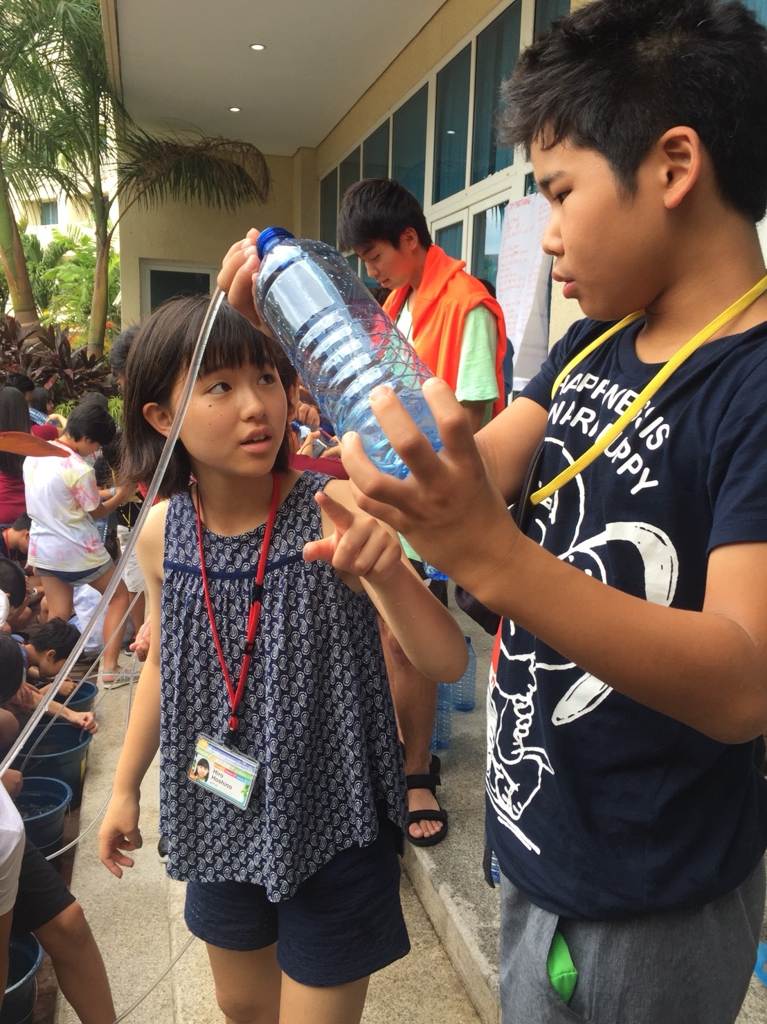 この日のサイエンスは”Transporting Water with the Siphon Priciple”