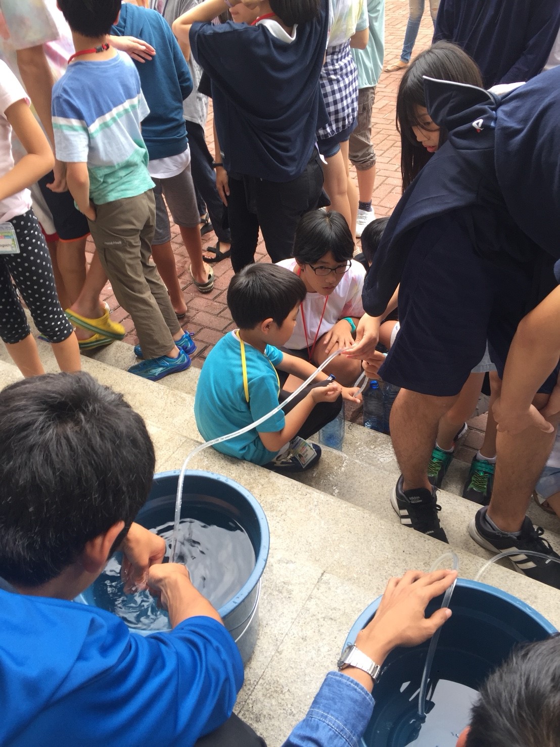 ”サイフォン”を利用して水を運ぶサイエンスです。