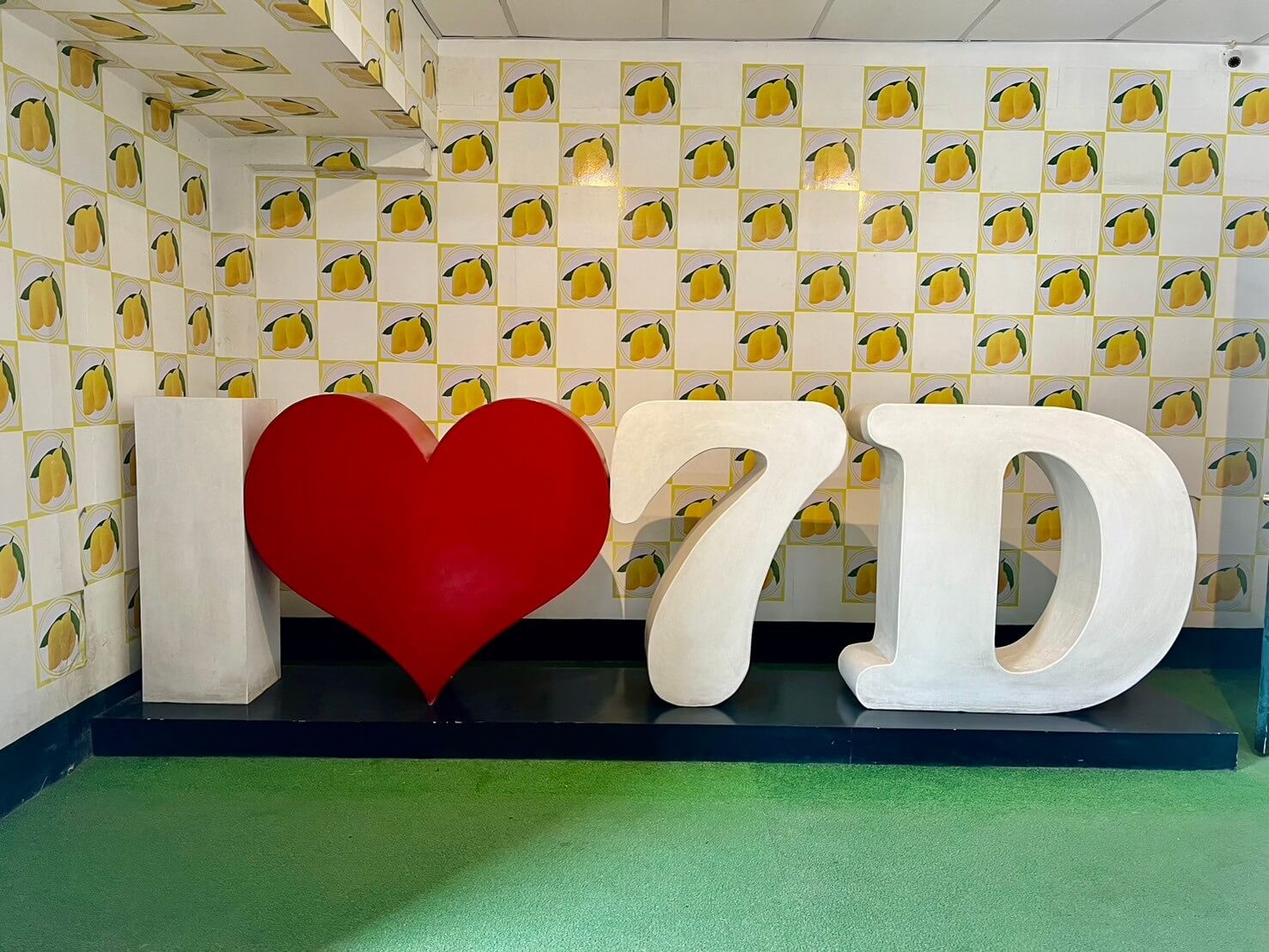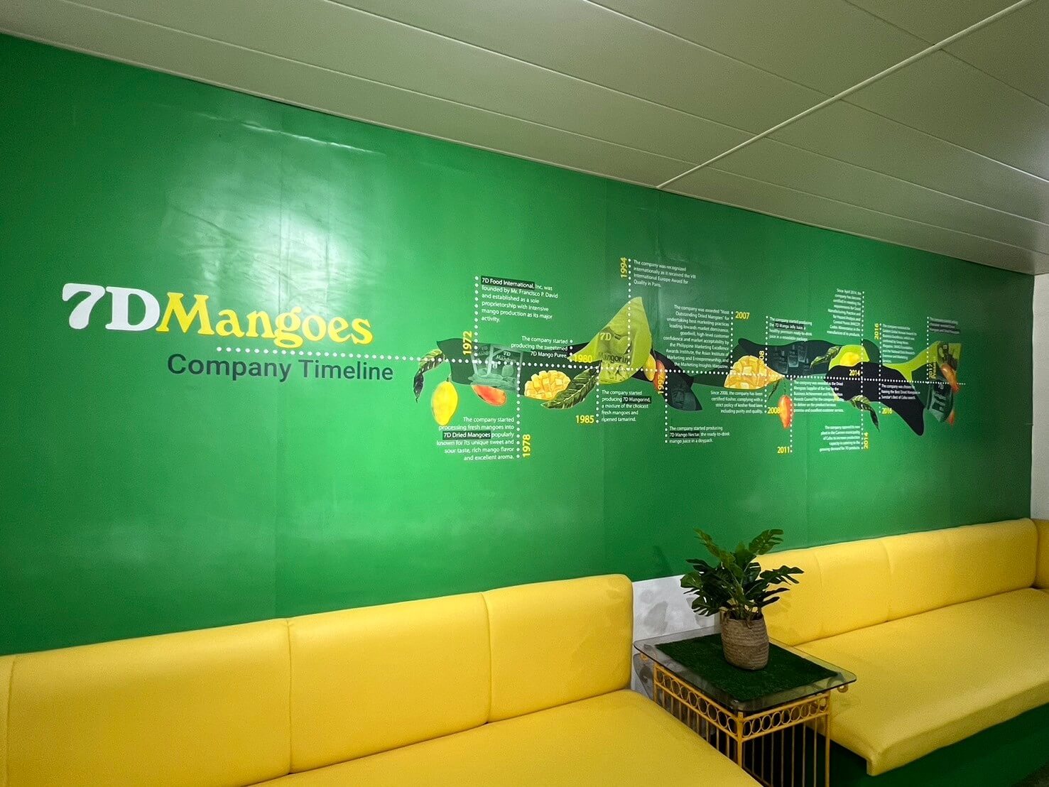 中に入ると、7Dの企業年表が壁一面に描かれています。