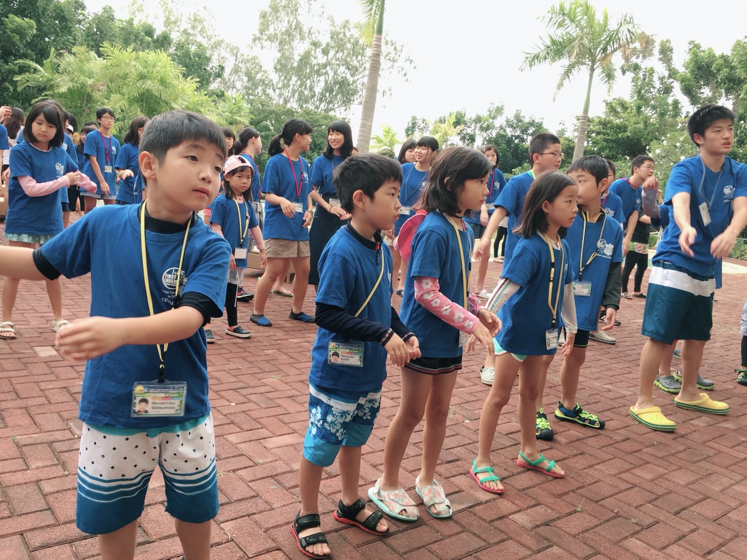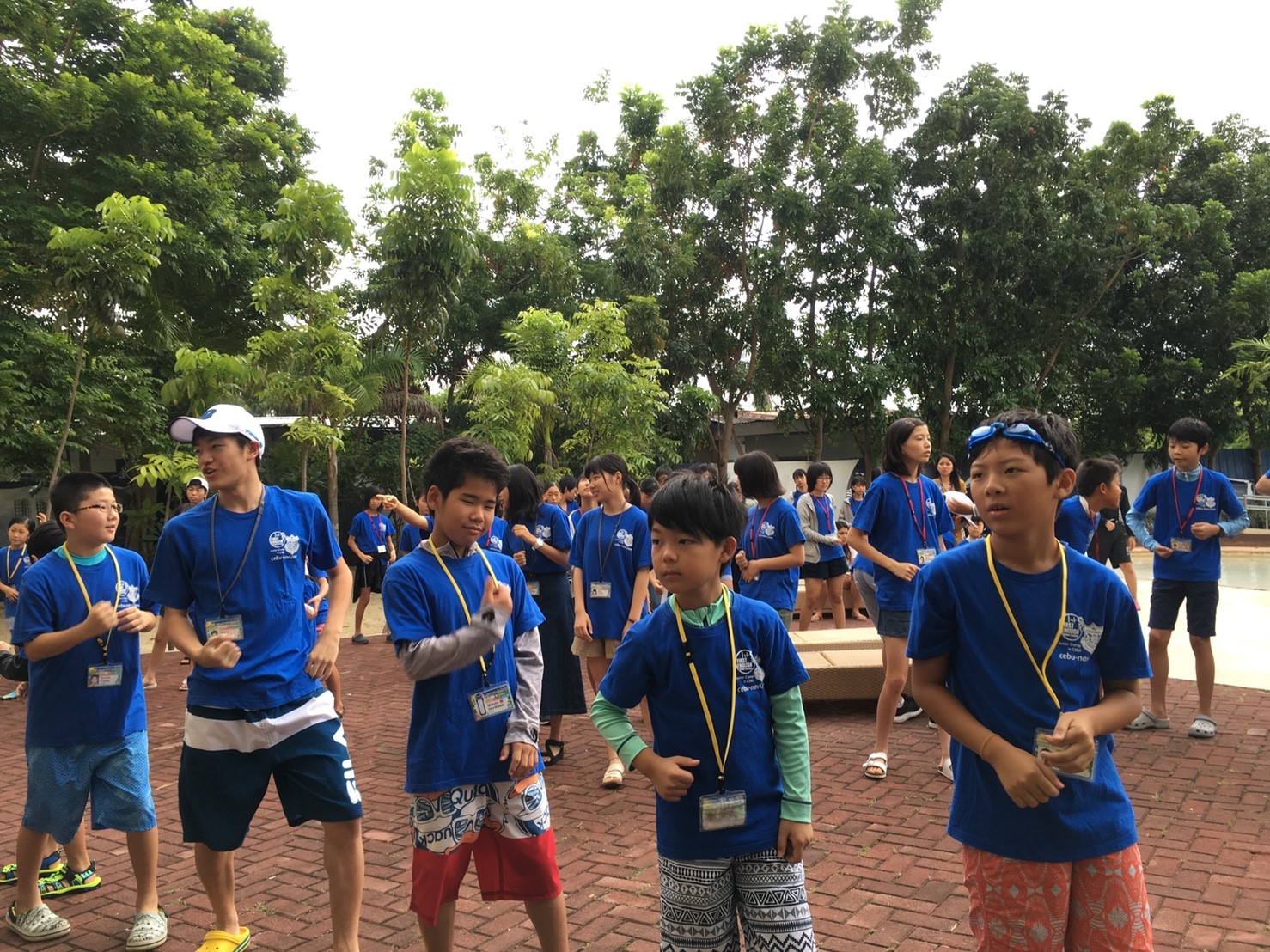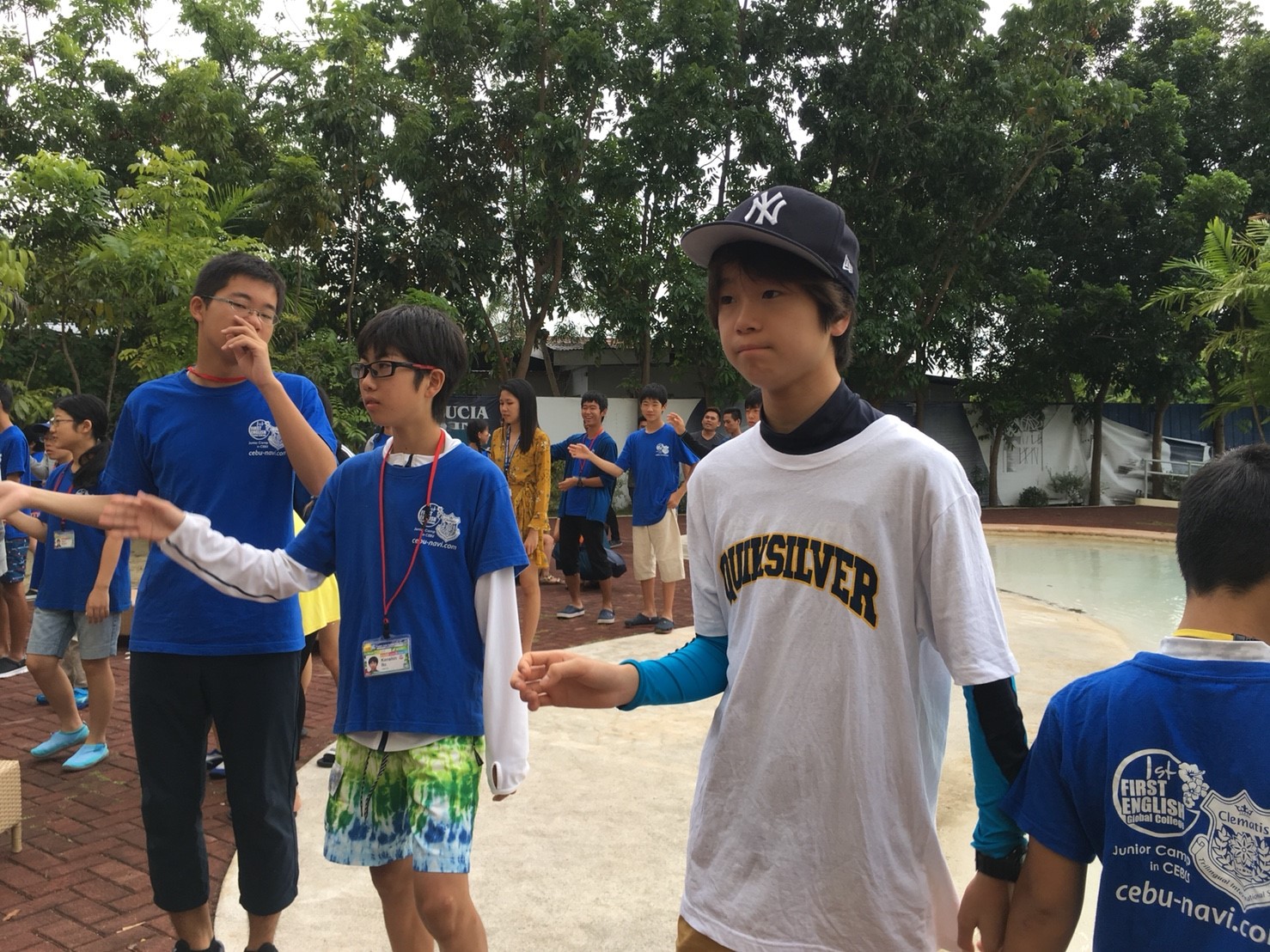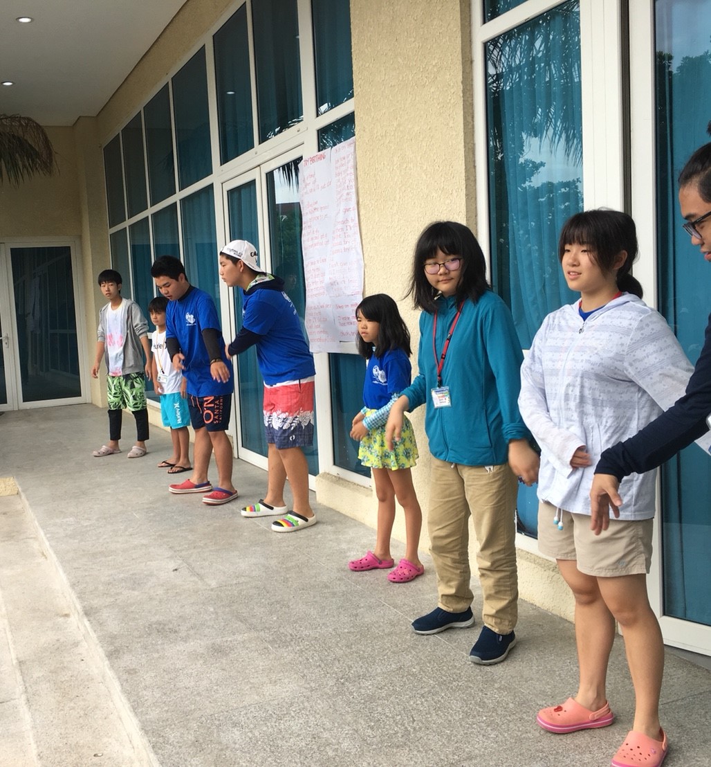 プール内でも英語でゲームをし、