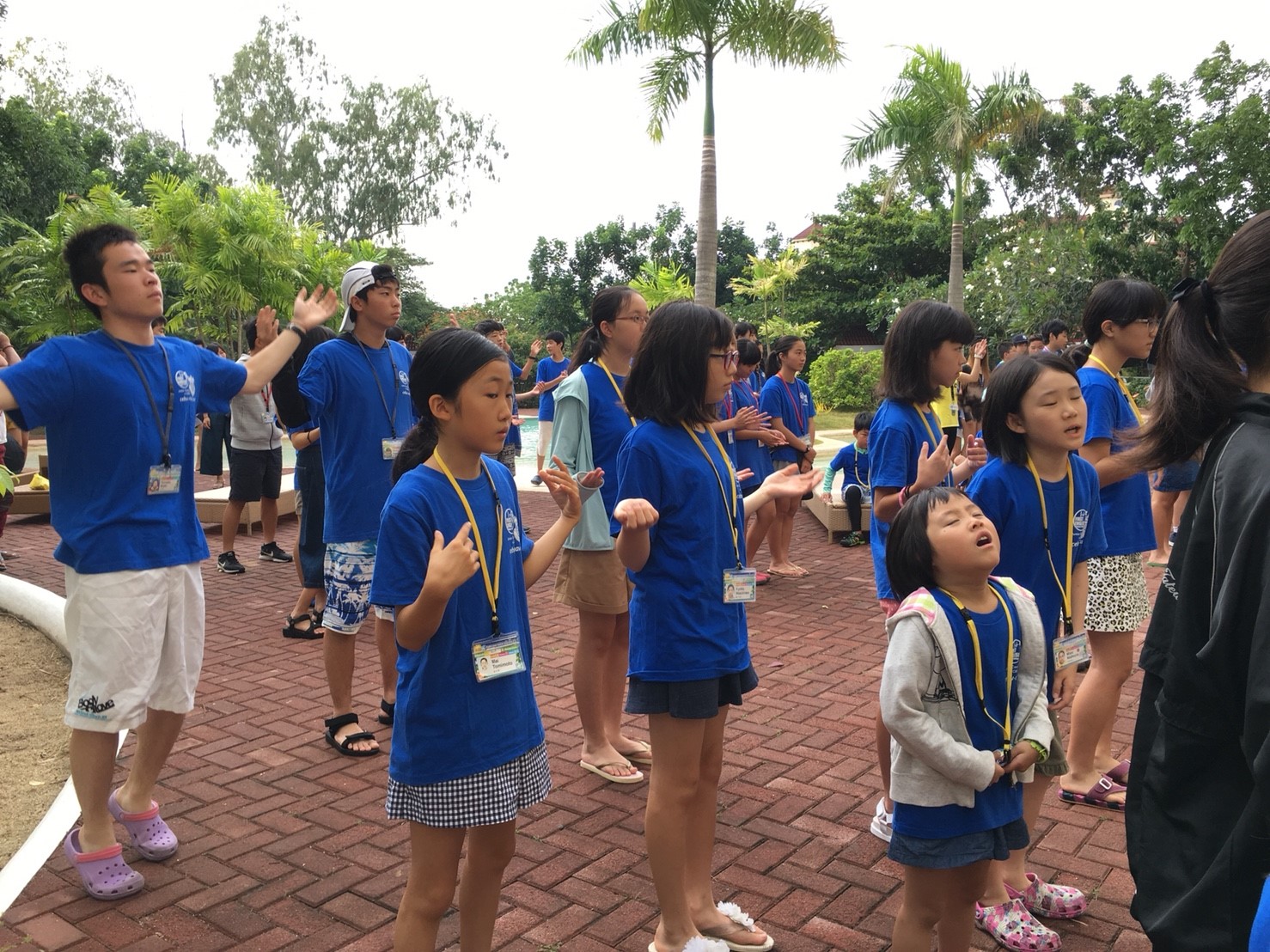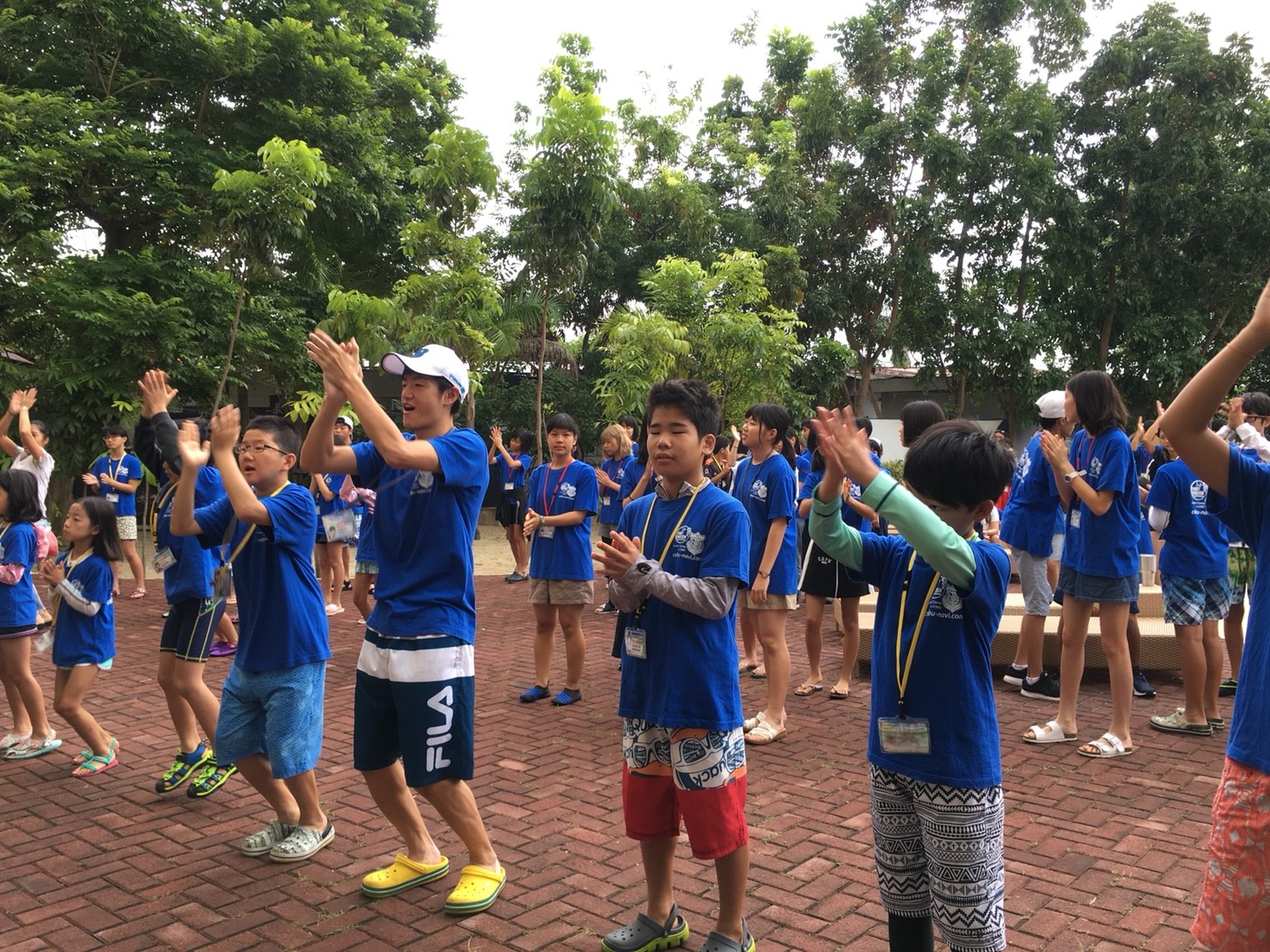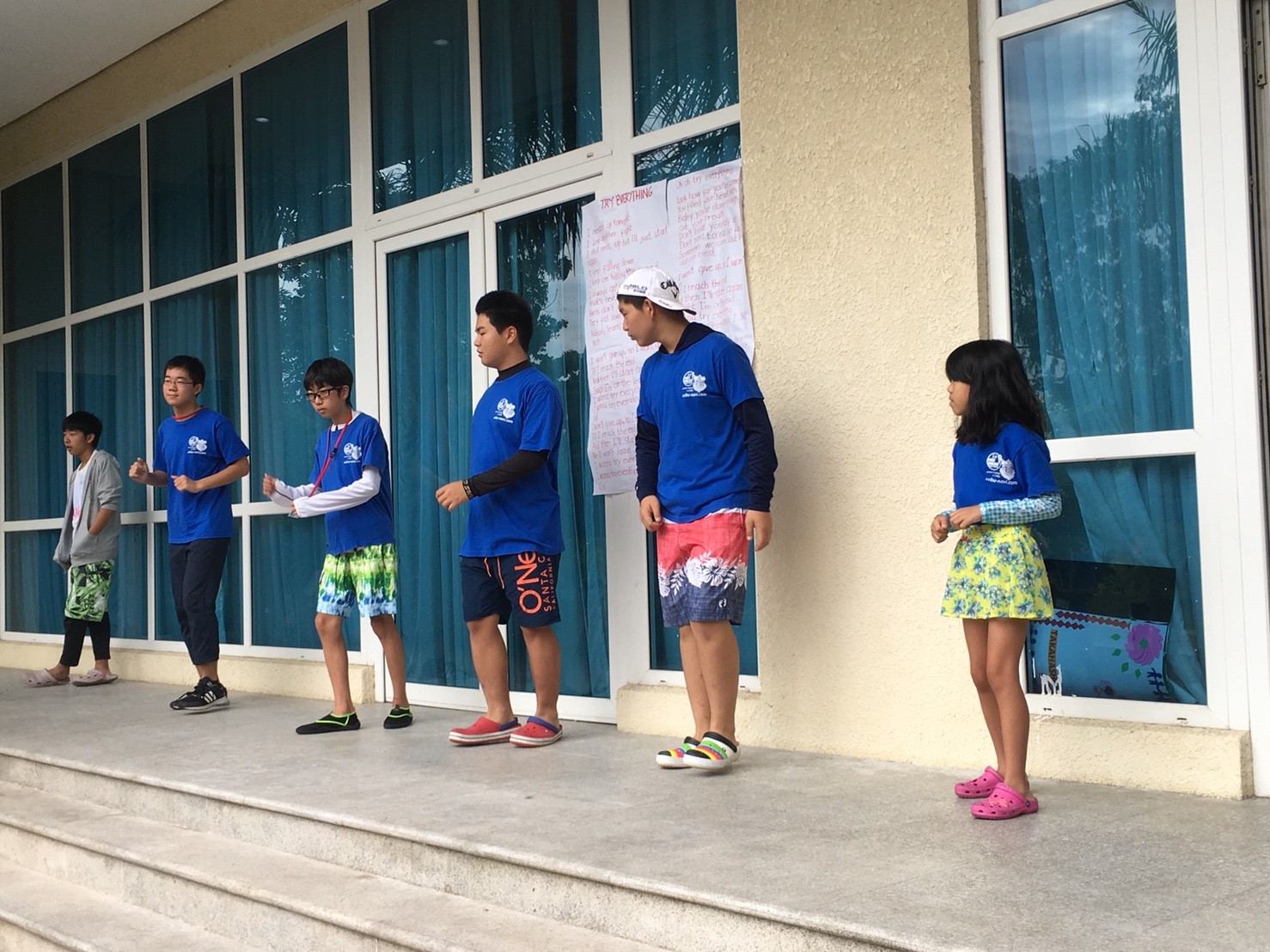 プール内でも英語でゲームをし、
