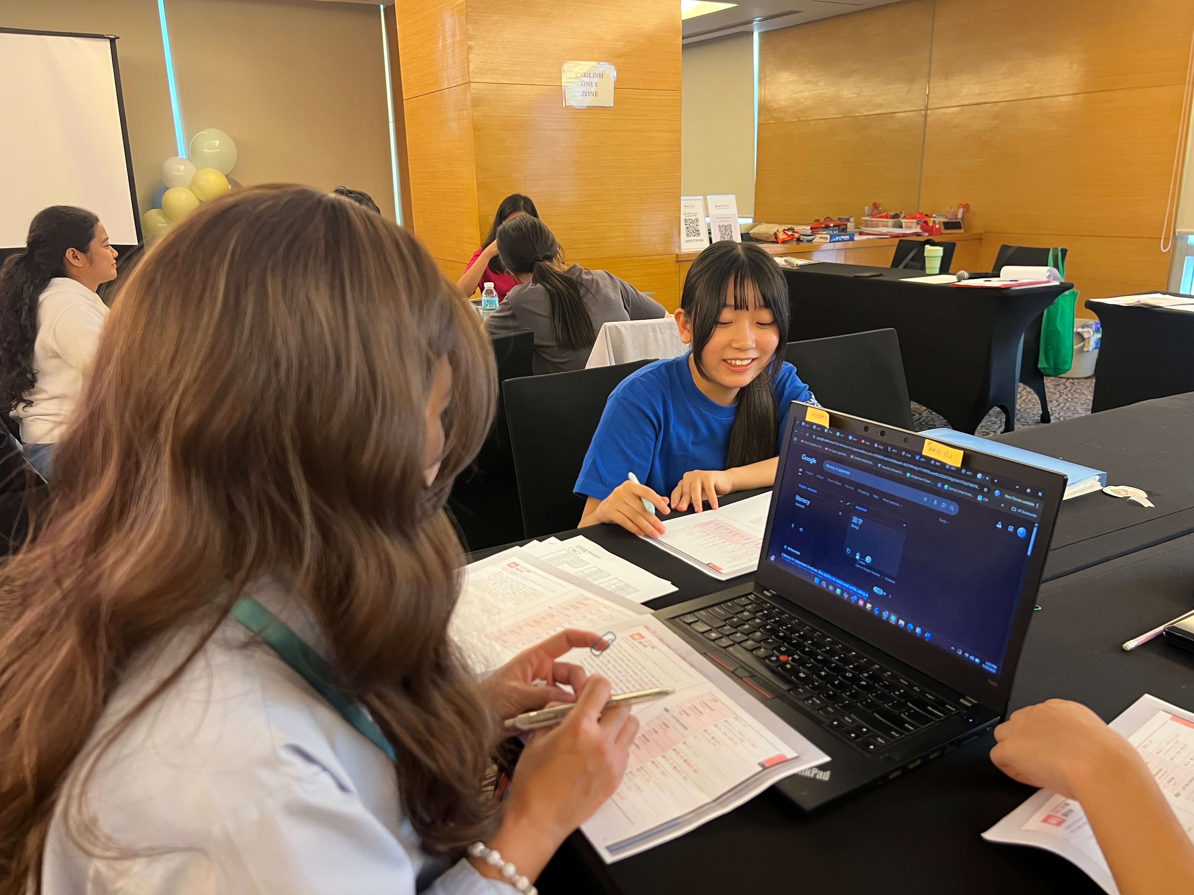 個々のレベルや学年などに合わせてグループが構成されます。仲間の視点や表現をシェアすることで、イントネーションや語彙の幅がぐんとアップ!「この表現が分かりやすい」、「こういう単語も使えるんだ」と、それぞれに新たな発見や教科書以上の学びもあるようですね。