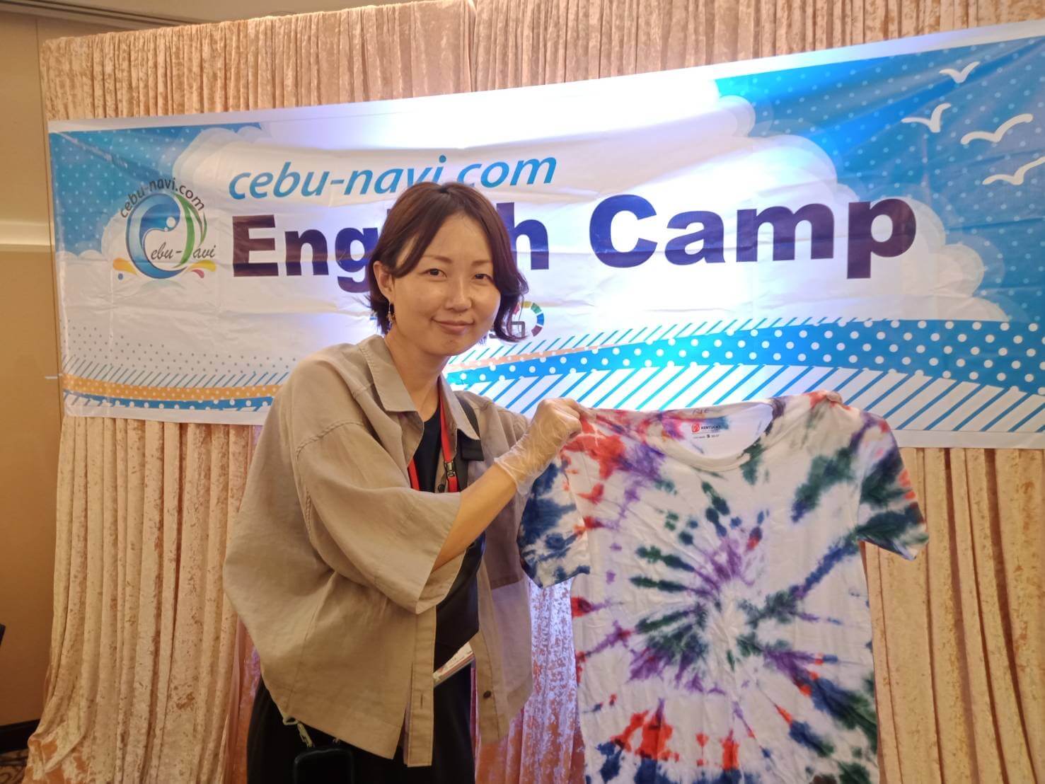 ☆新入生は初日オリエンテーション後、タイダイTシャツ染め体験を実施。自分の好きなカラー、デザインで、世界にひとつのオリジナルTシャツが完成しました(*^-^*)