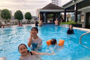 古代ナイル川と同条件の下、プールの浅瀬でチャレンジ!