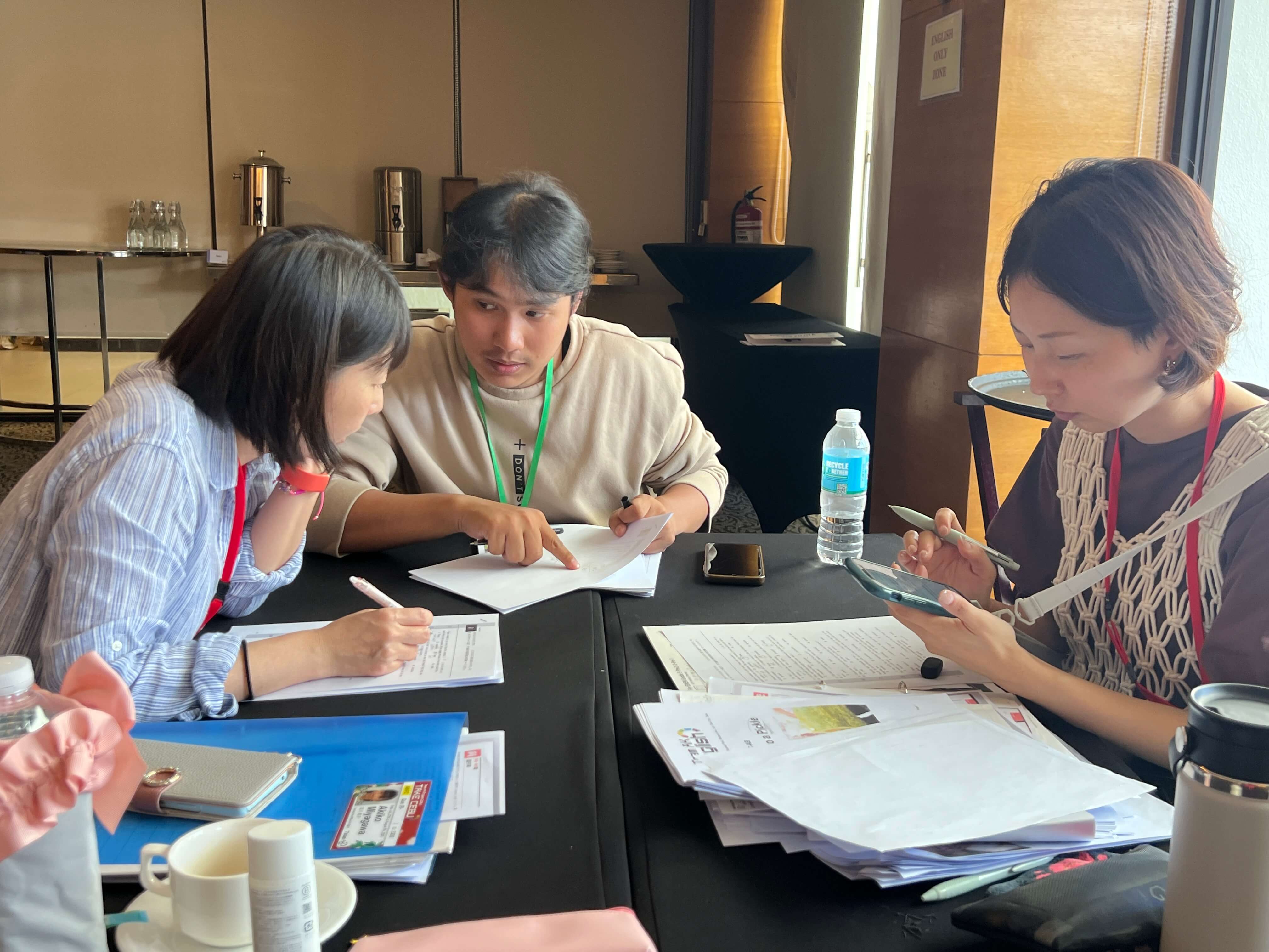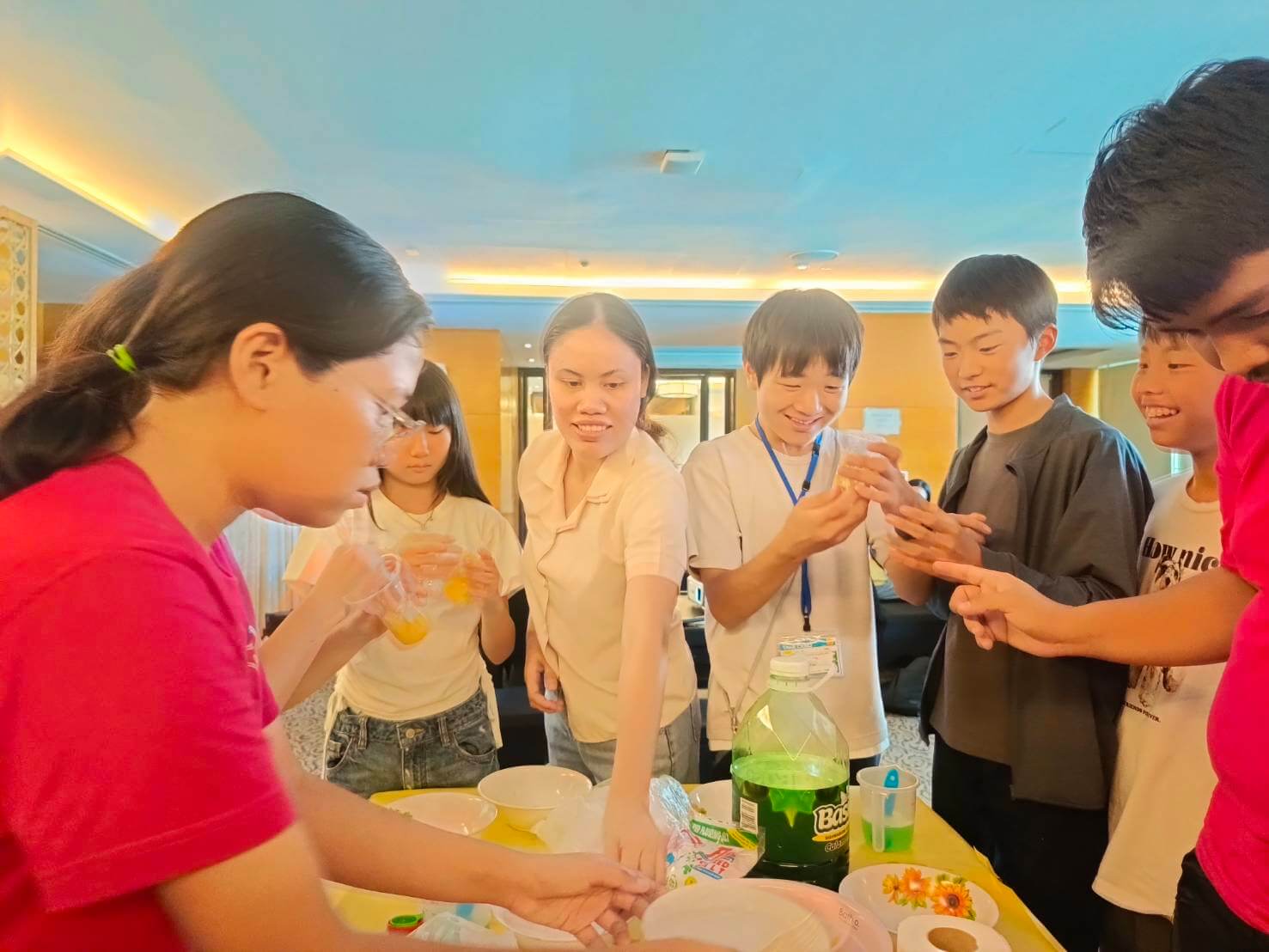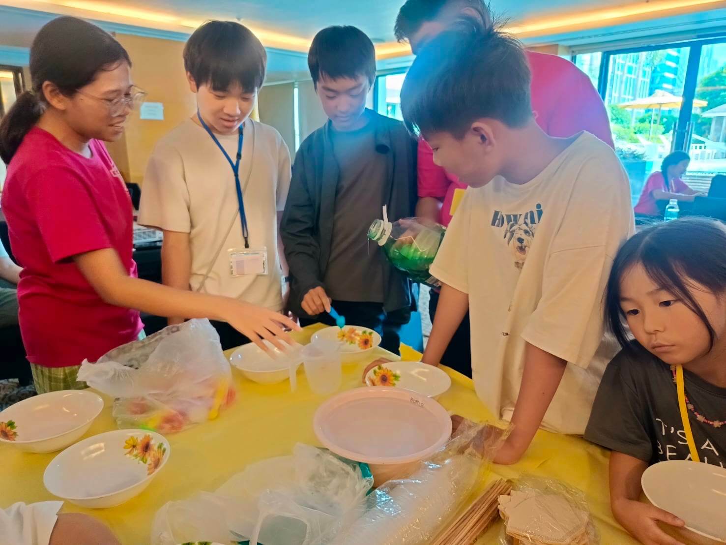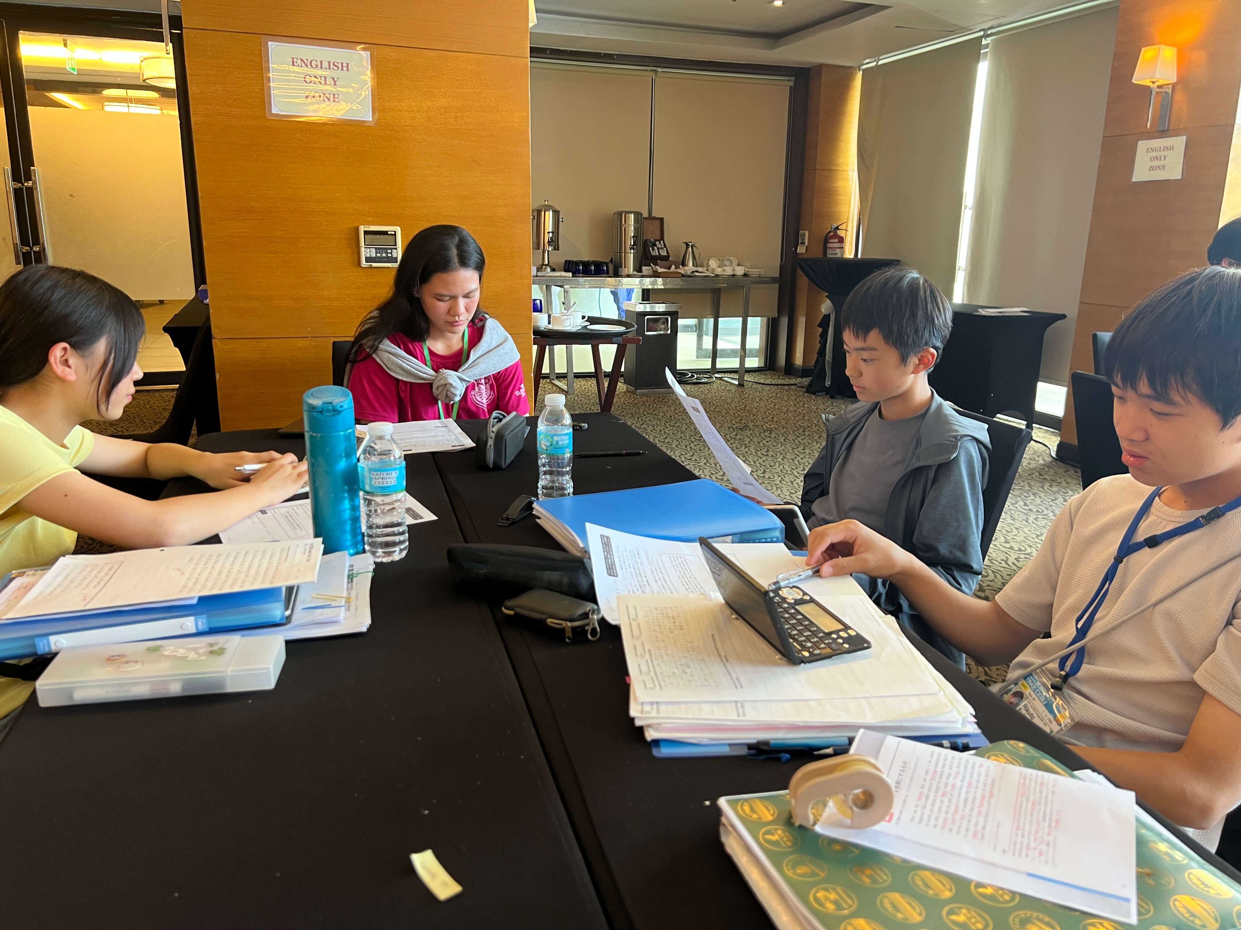 英語で自然や社会を考えるテーマスタディなど、仲間と協力し合って取り組みます。参加生の皆さん、日毎に自分の意見や感想など積極的に発話できるようになり、表情も和らいできた様子です。