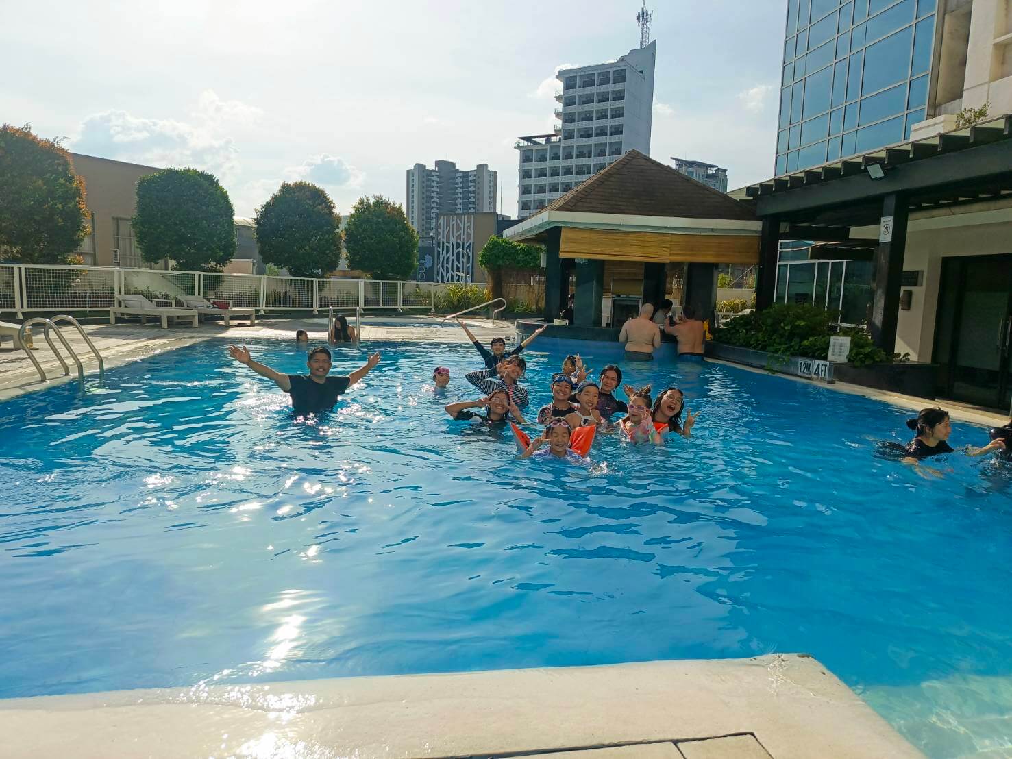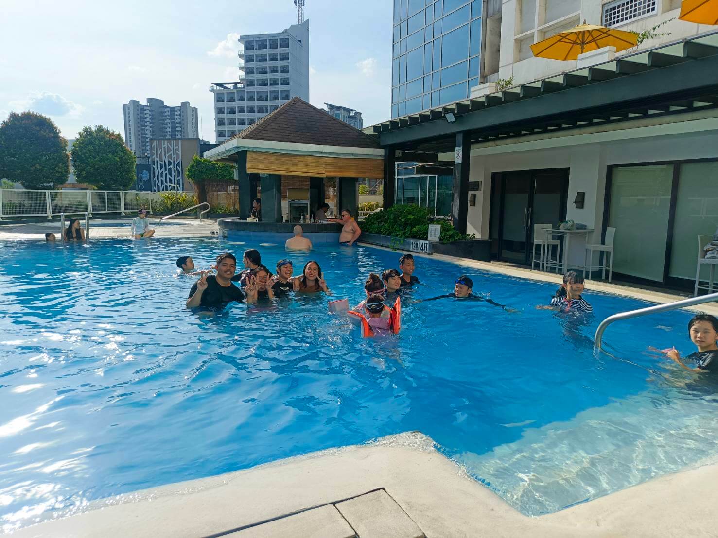 セブの7月は、平均気温28~30℃くらいの心地よい気候が続いています。皆さんお待ちかねのプールアクティビティ開催。