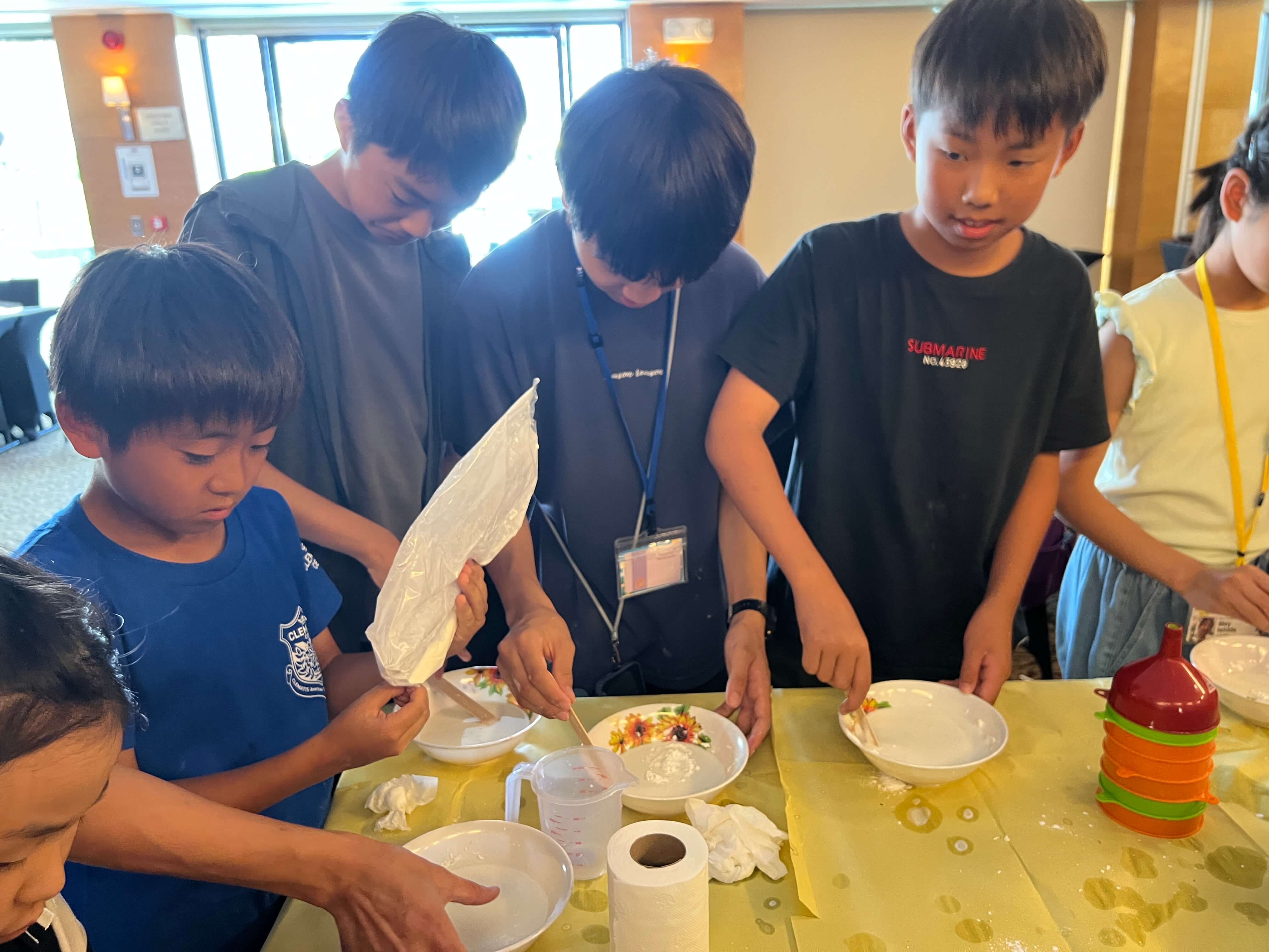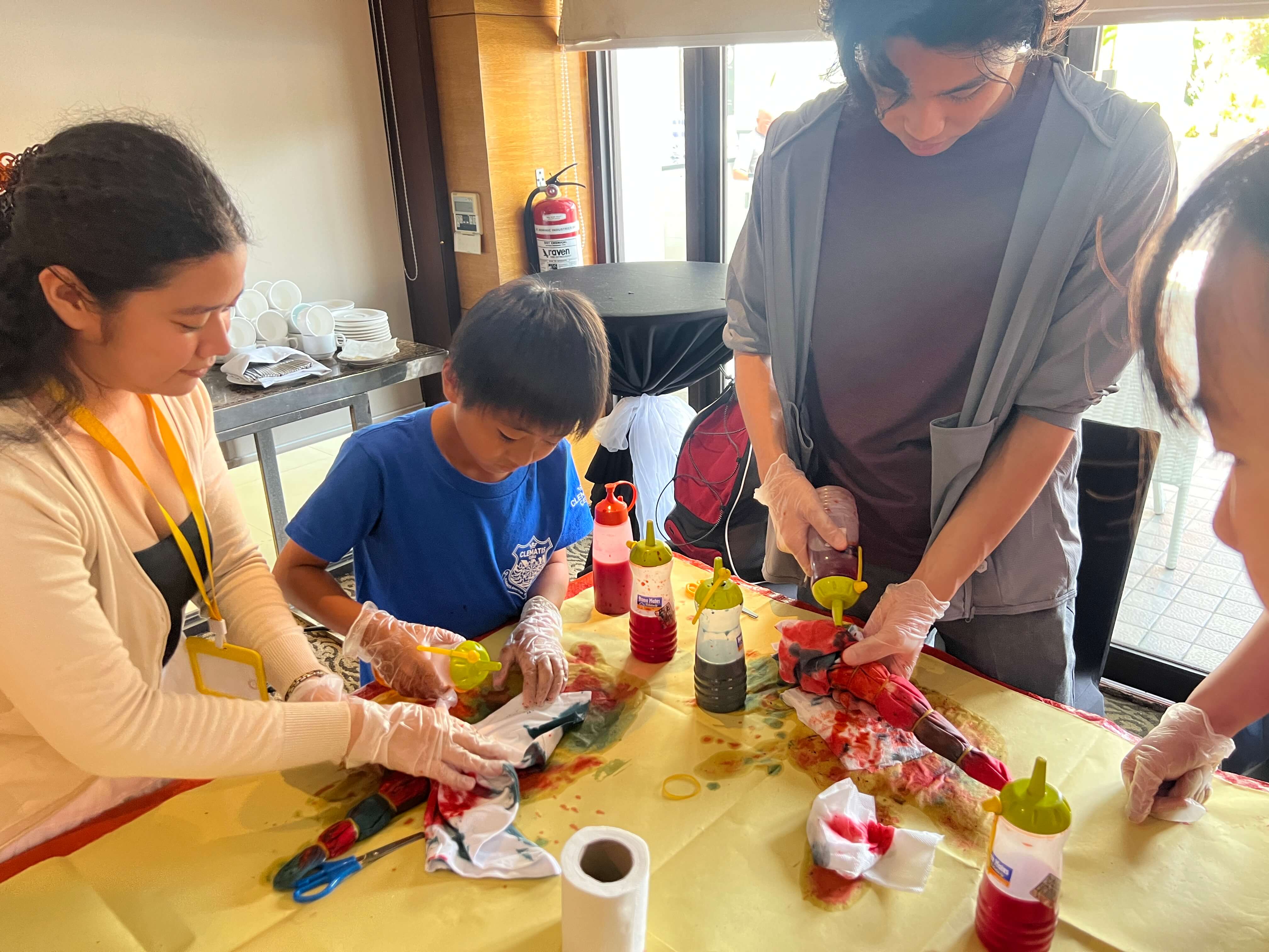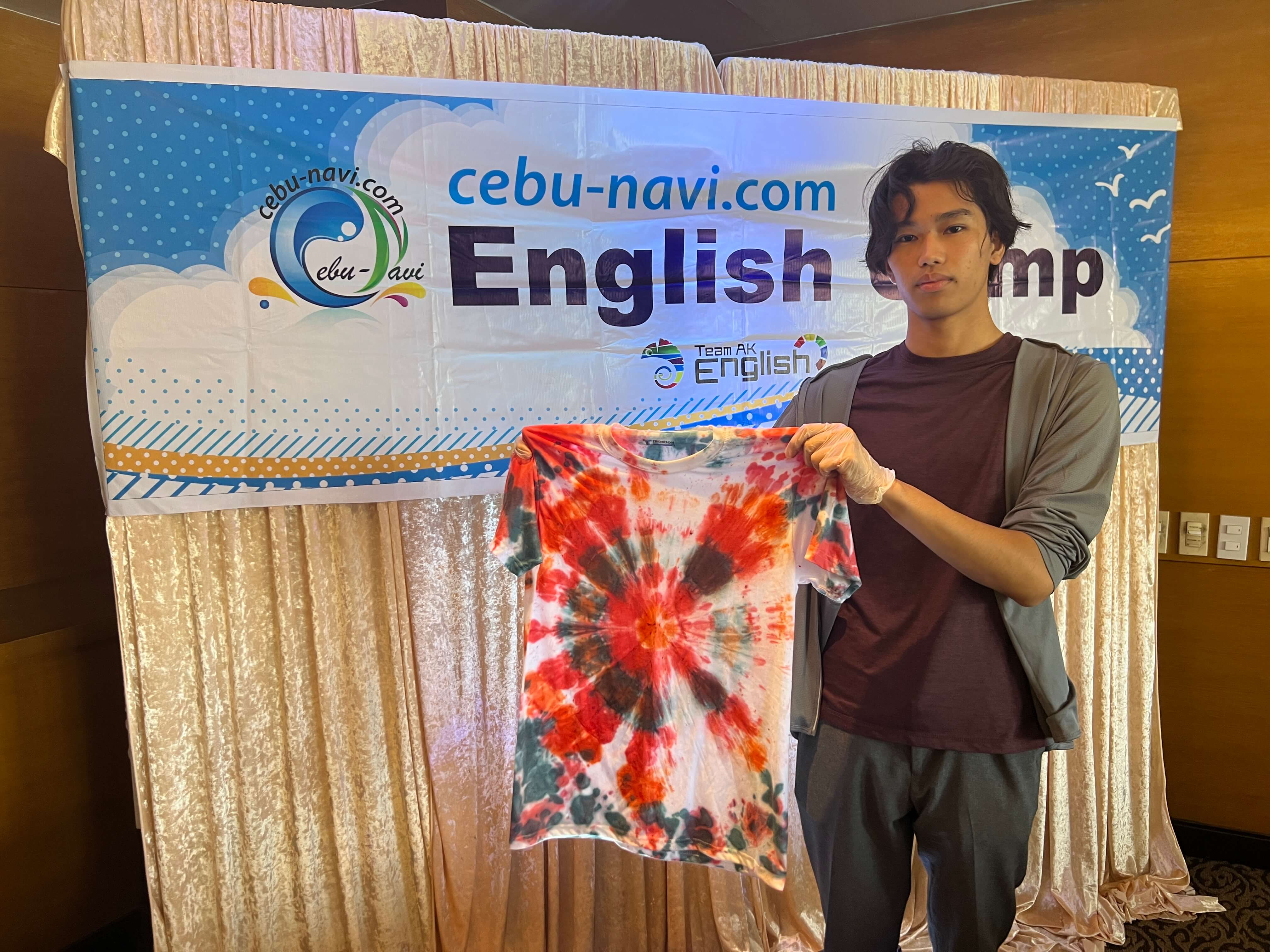 オリエンテーション後は、セブナビ×TAKE CEBU英語漬けジュニアキャンプ恒例のタイダイ染め体験。
