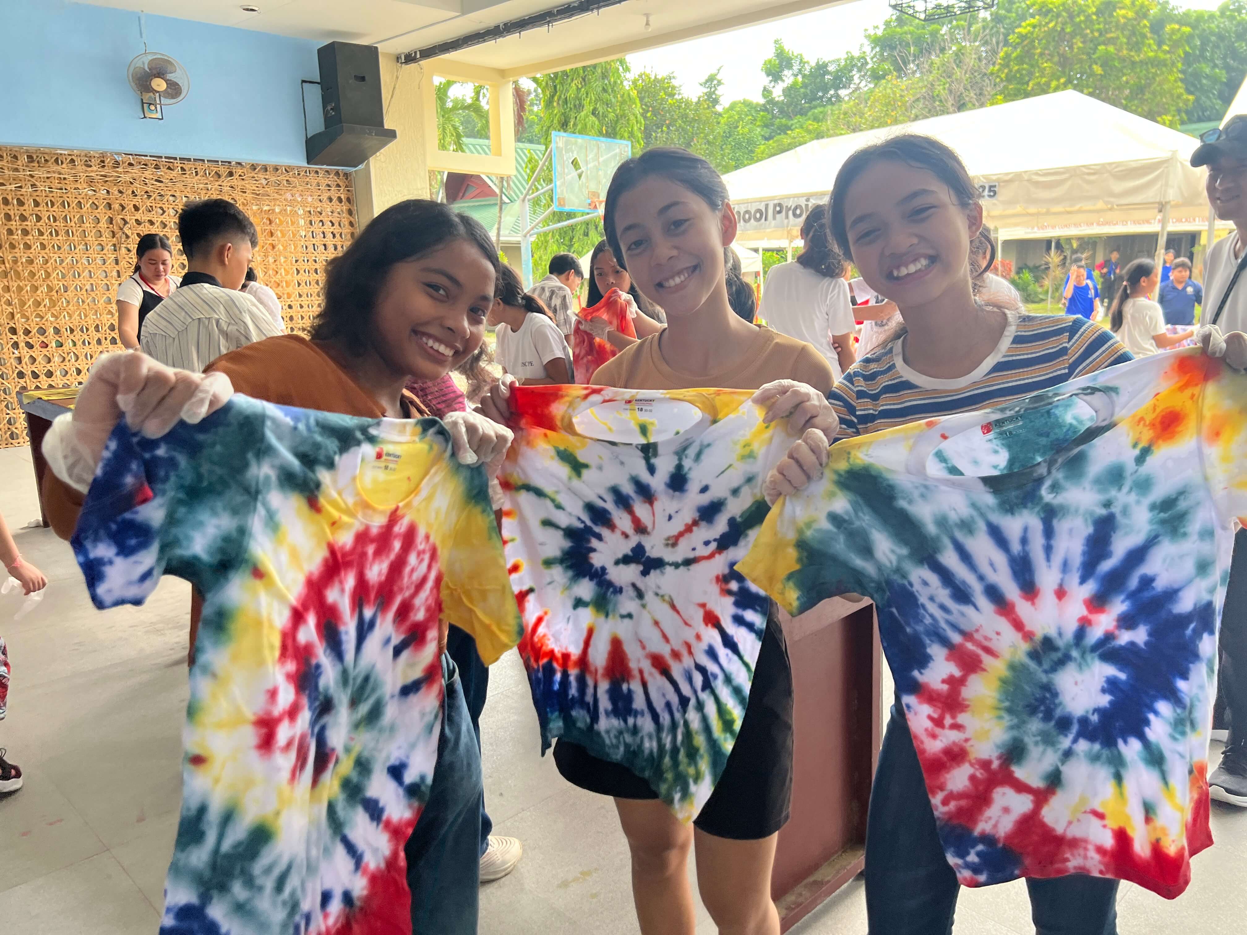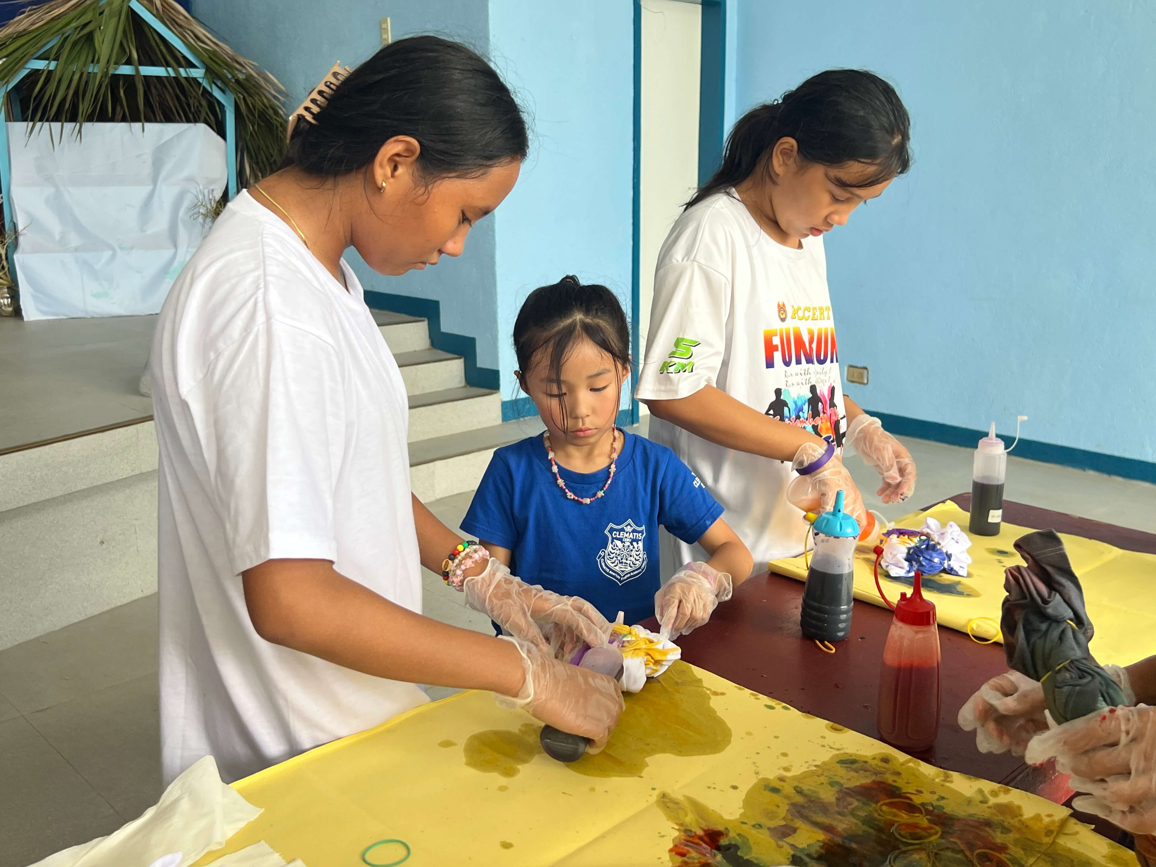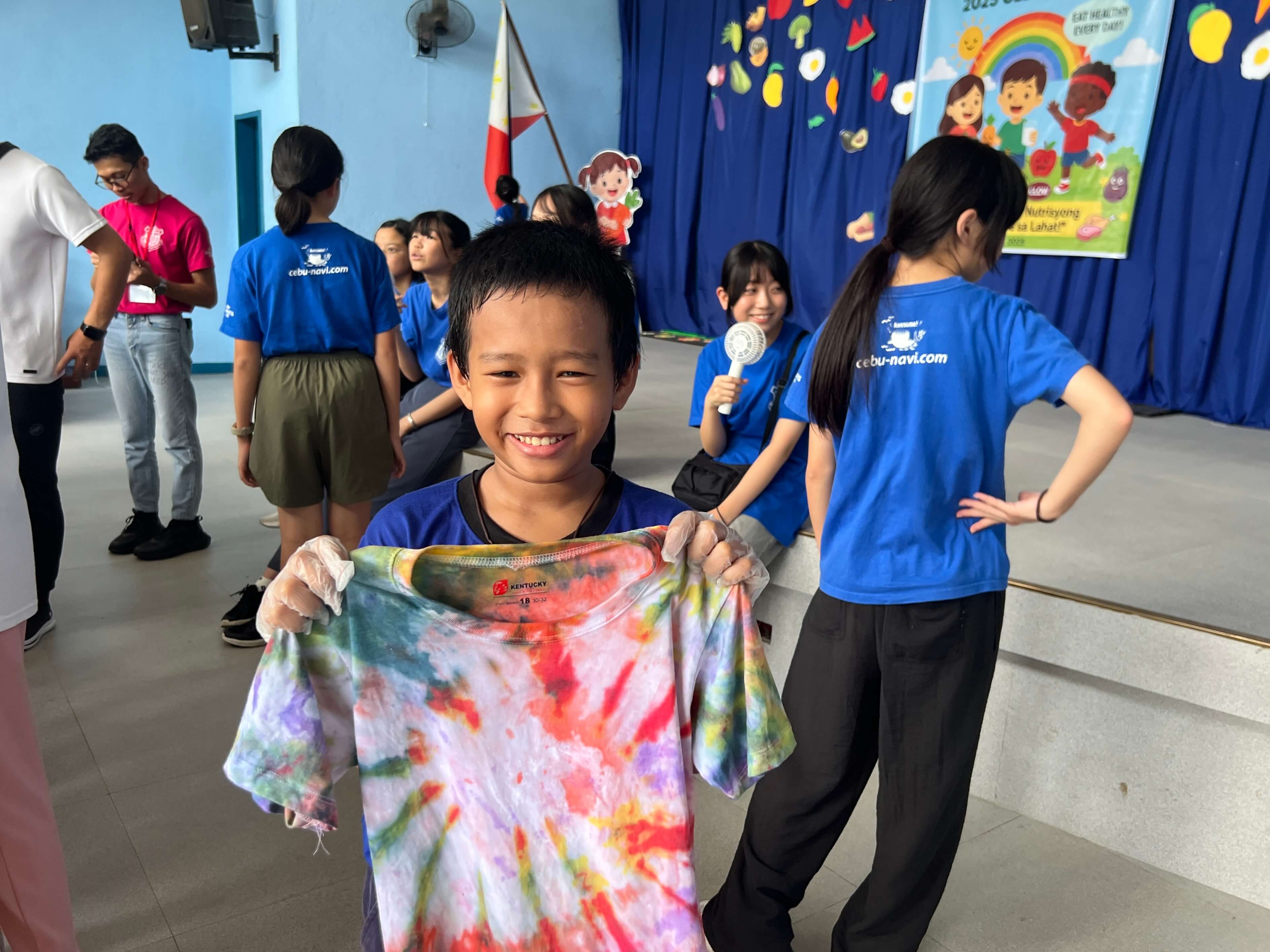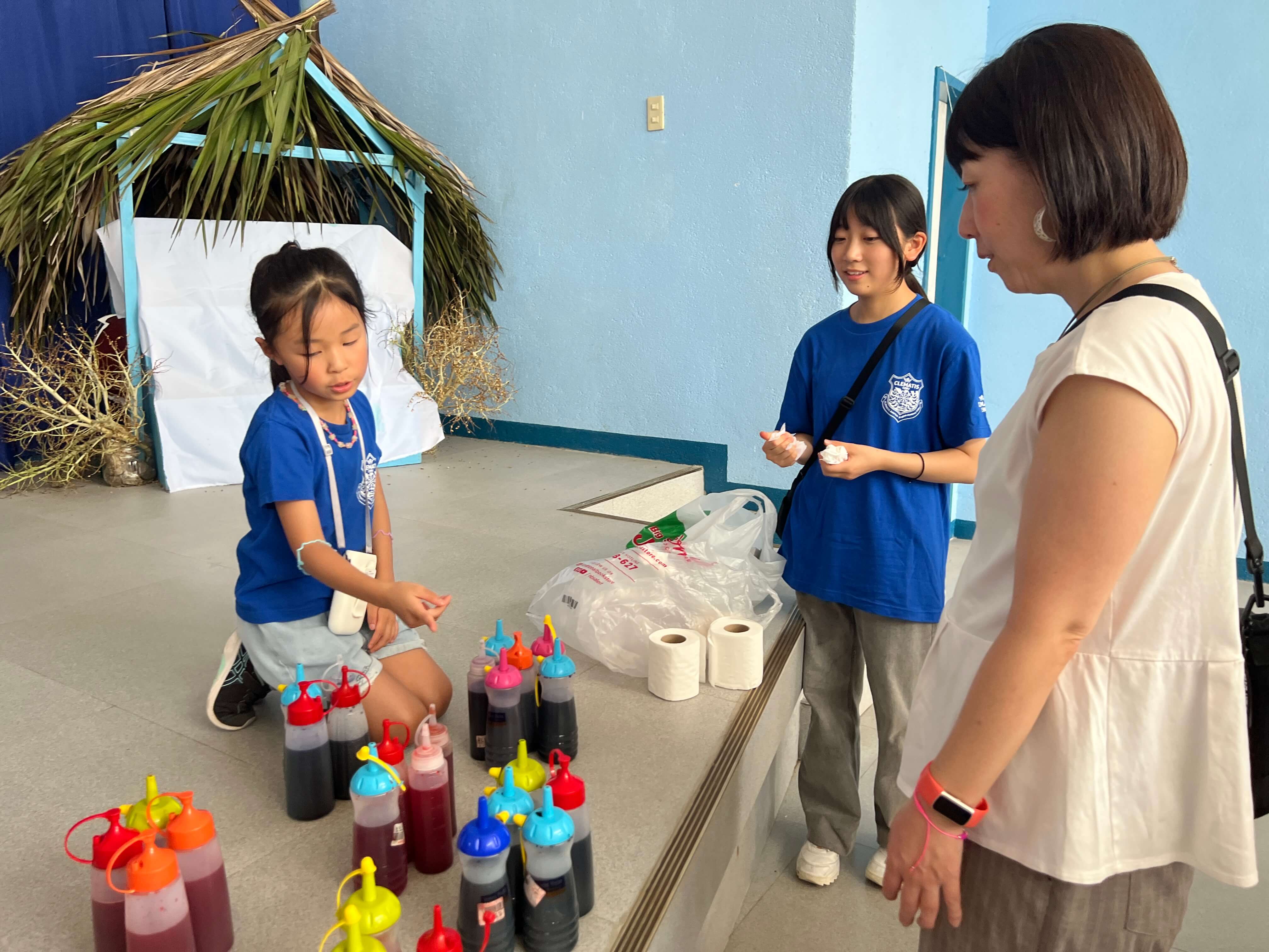 本日のサイエンスクラスは、セブナビ×TAKE CEBU 英語漬けジュニアキャンプ・親子キャンプ恒例の「タイダイ染めTシャツ」体験です。