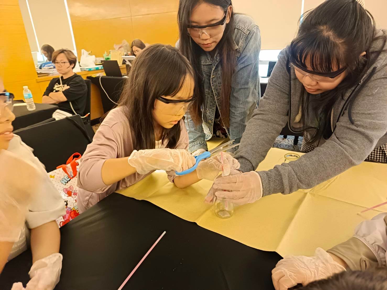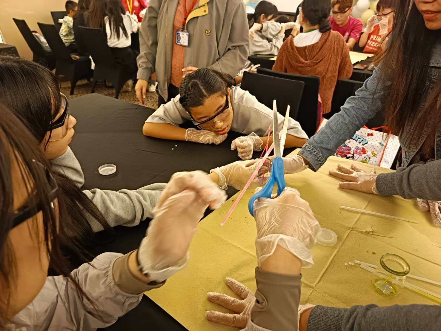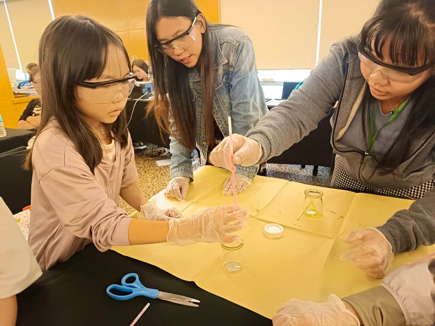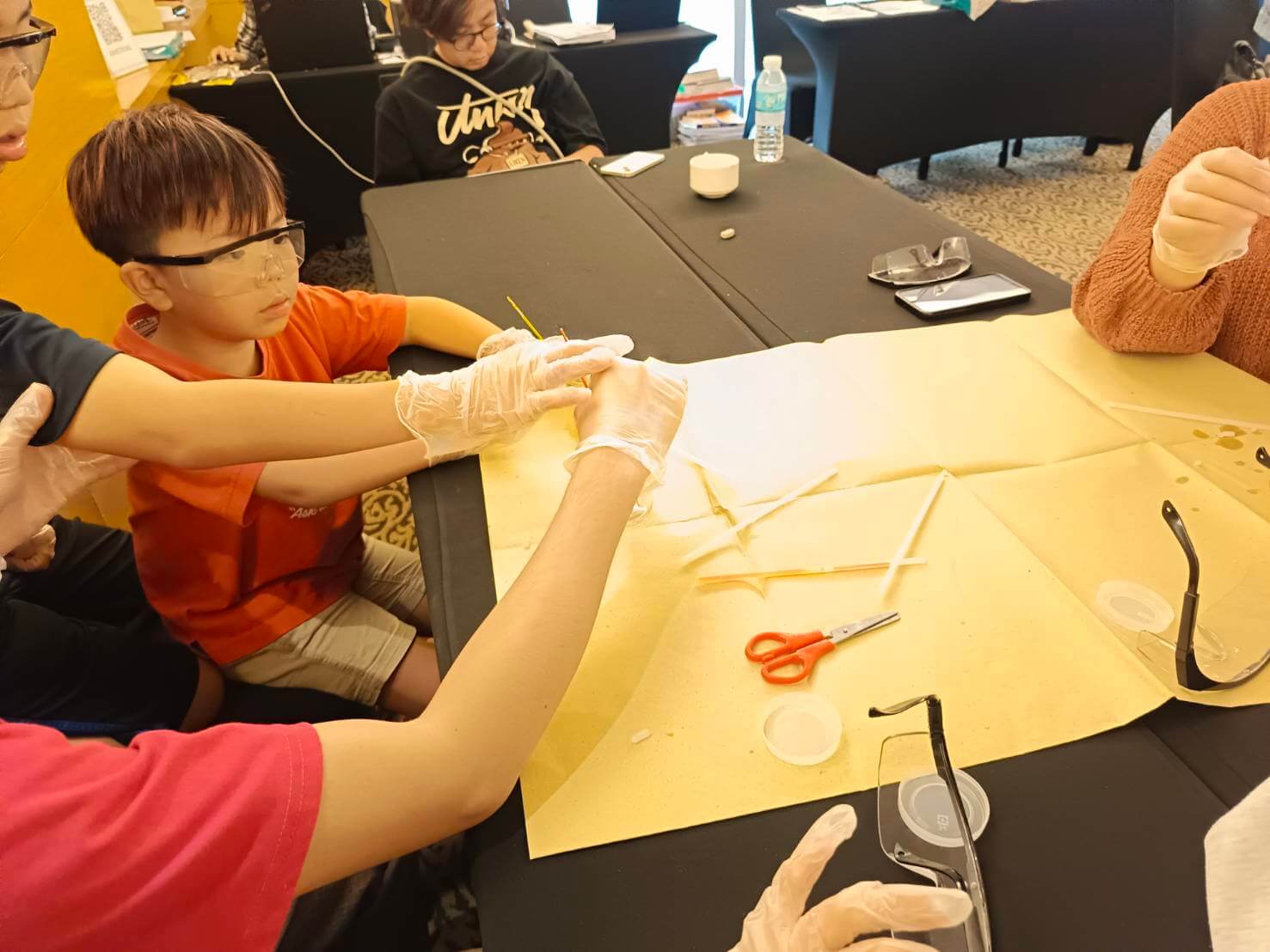 グループの仲間同士でじっくり観察しながら「色によって明るさがちがう?」「中の液体、温度で変わるのかな?」など、みんな興味津々な様子で意見を出し合っていました。