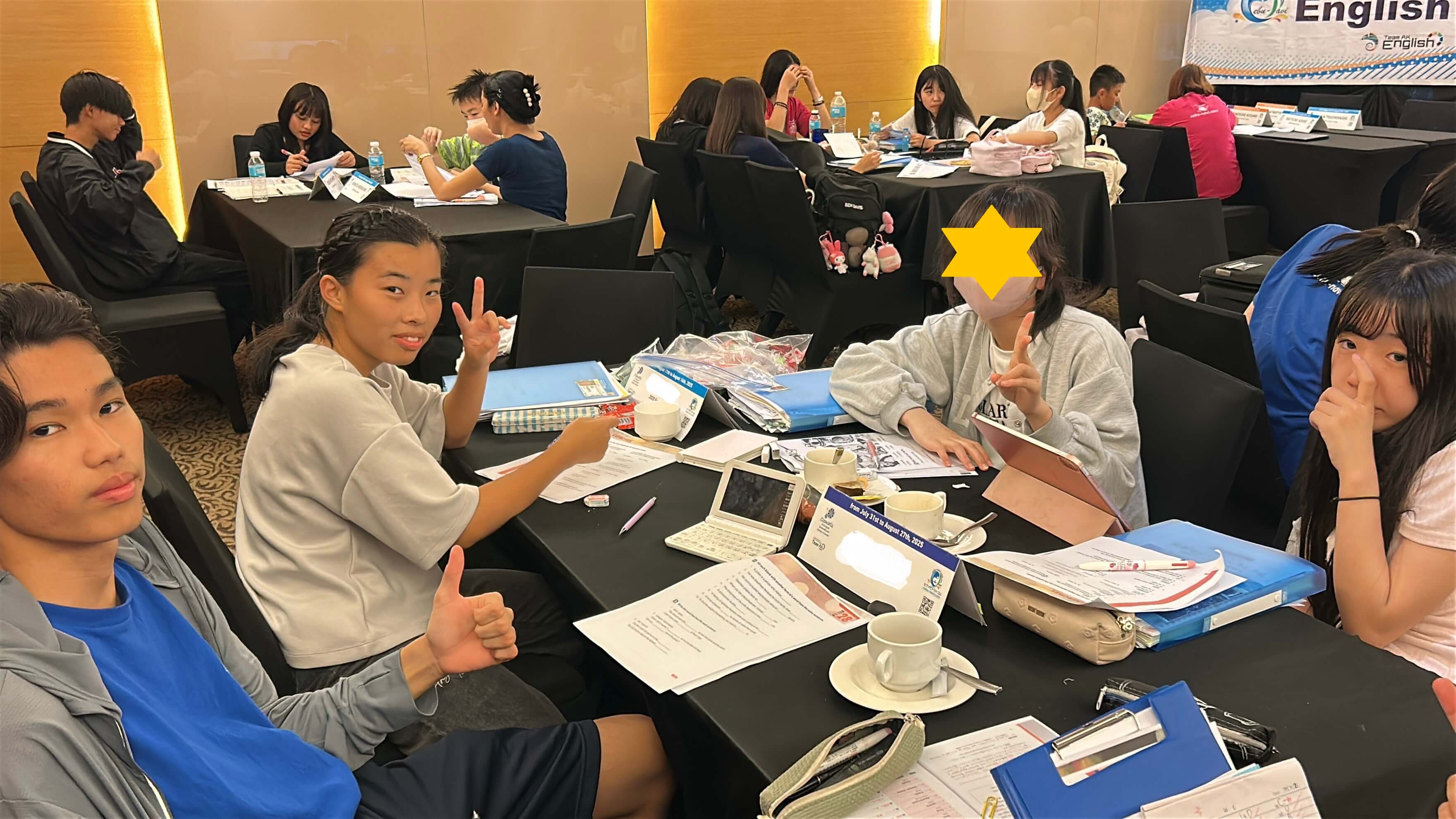 セブナビ×TAKE CEBU校 英語漬けキャンプのグループクラスは、最大でも3〜5人の少人数制。先生との距離も近くて、レッスン中は発話するタイミングがたくさん巡ってくるので、自然と口が動くようになります。