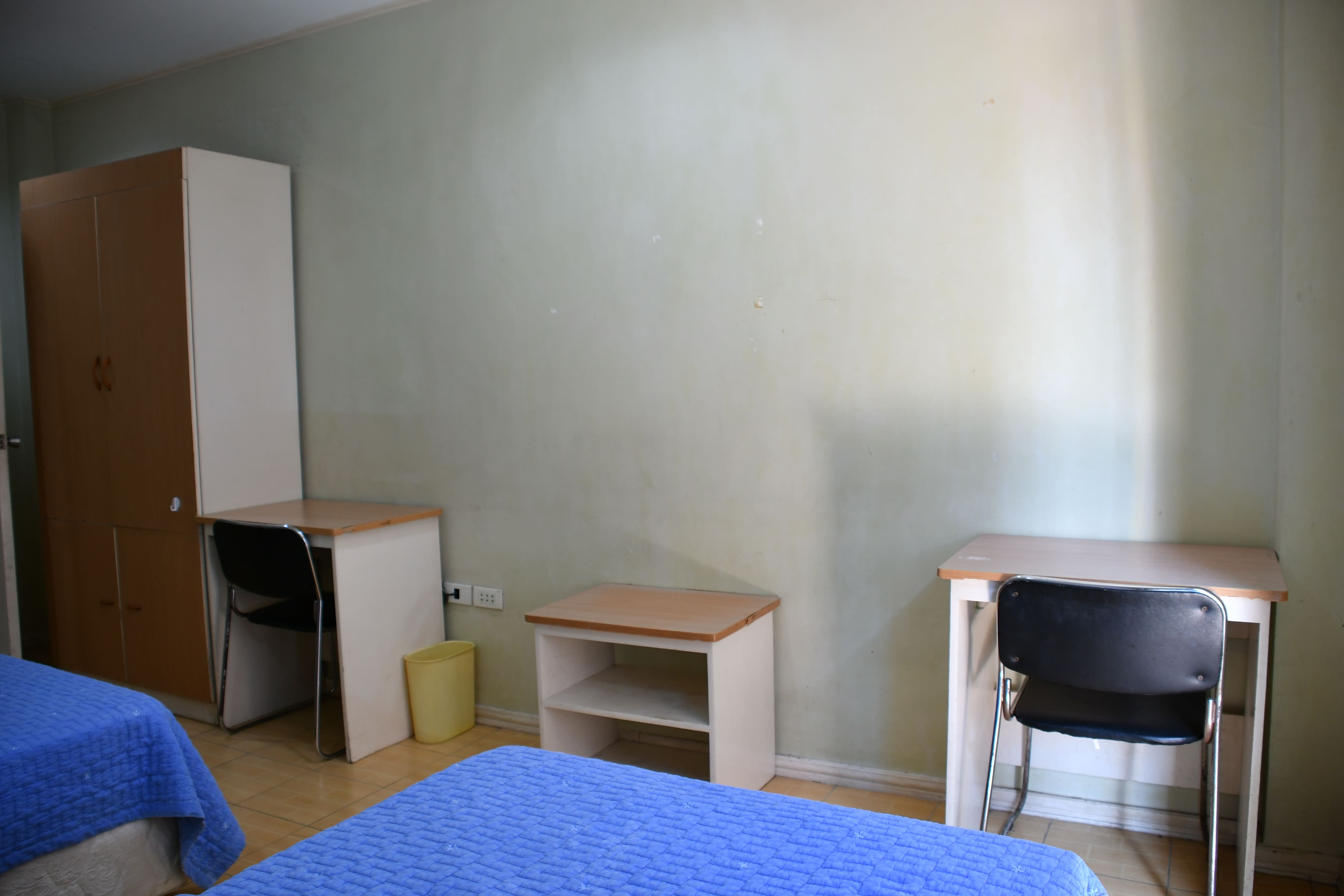 お部屋はシンプル。ベッド、勉強机、クローゼット(鍵無し)シャワー、トイレという感じ。貴重品はスーツケースに鍵をかけて管理して下さい。