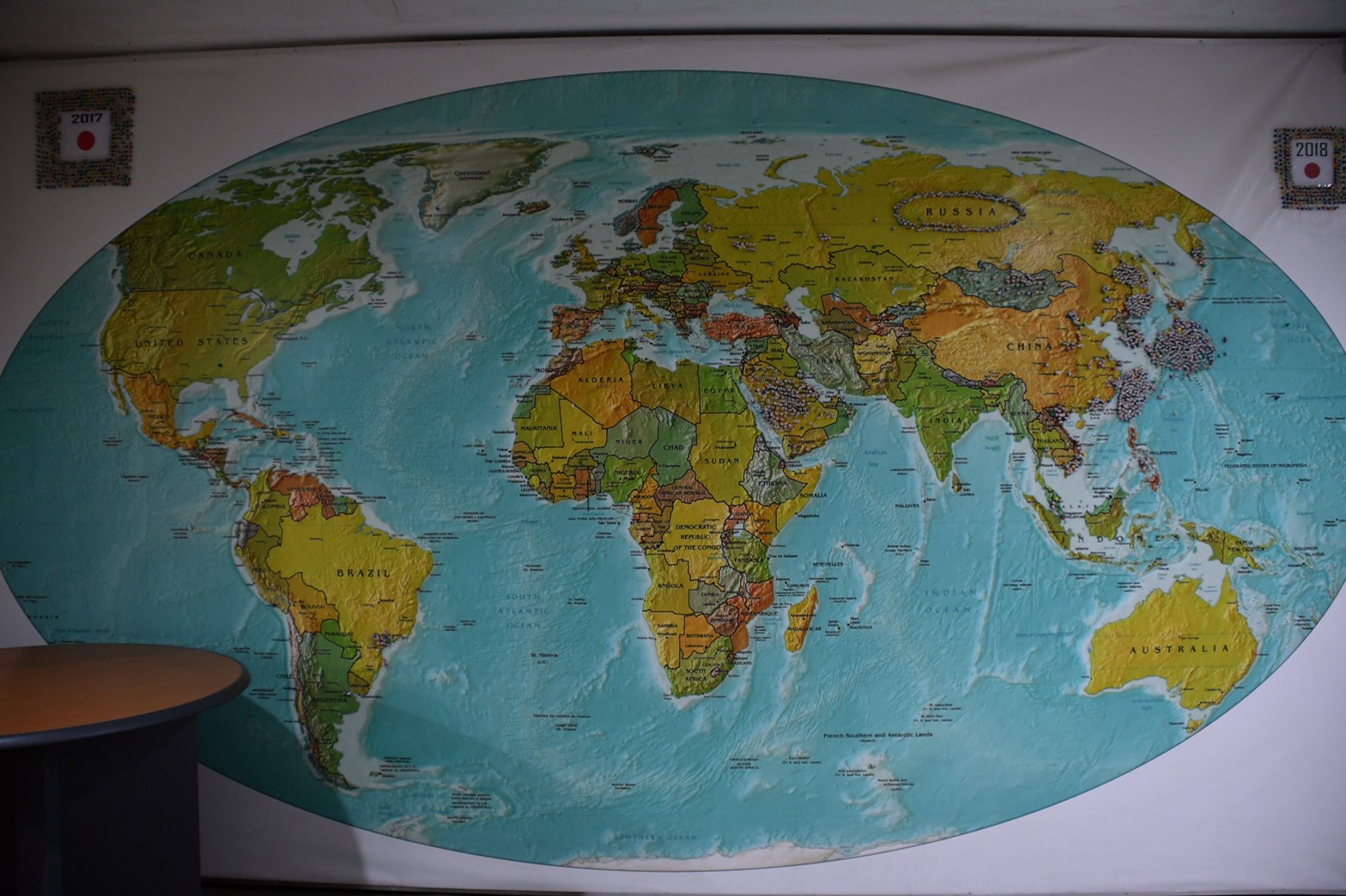 ↑GENIUSへ留学した生徒が、自分の国にピンを立てます!