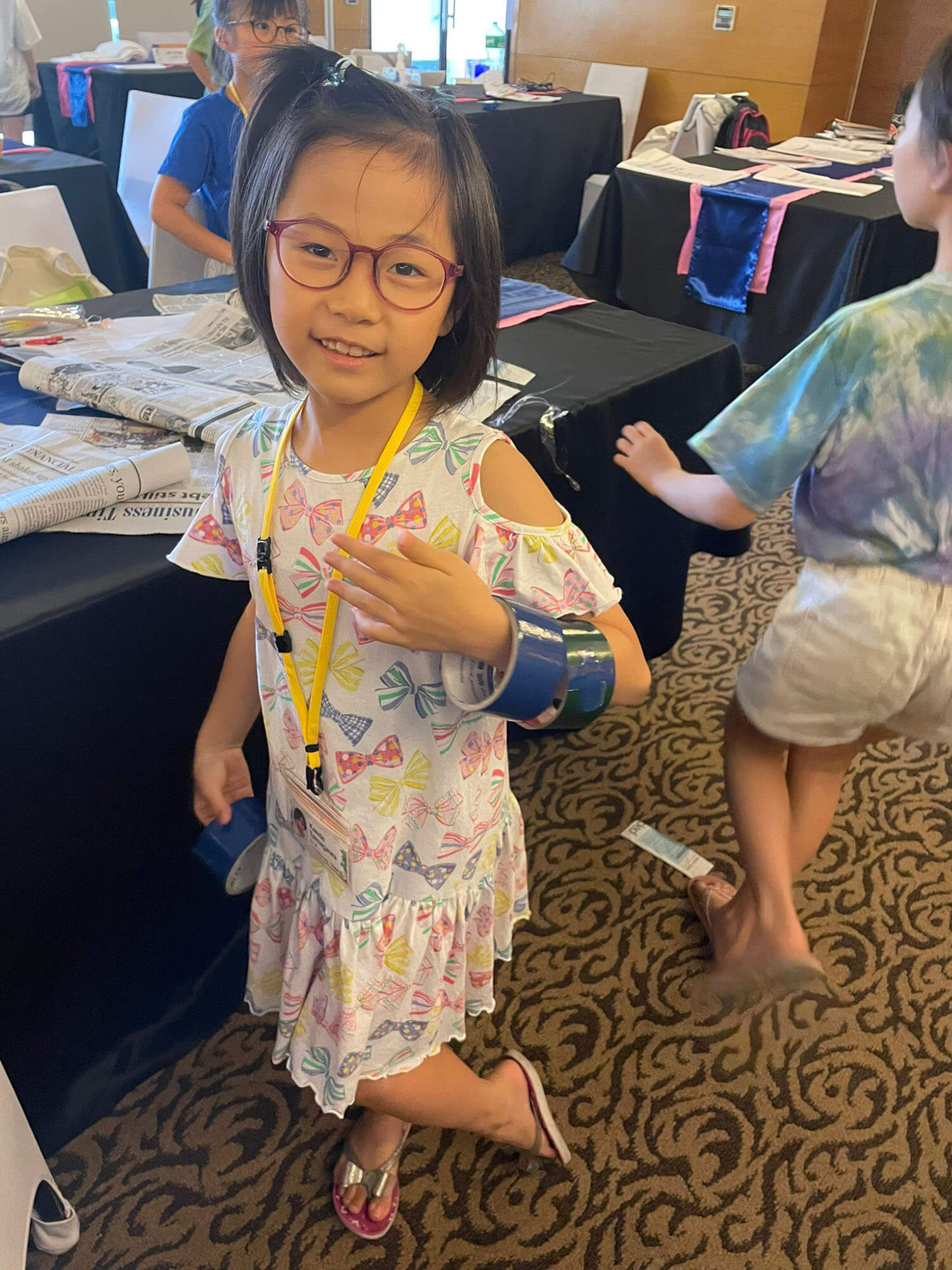 本日は、新聞紙を使ったドーム作りを体験
