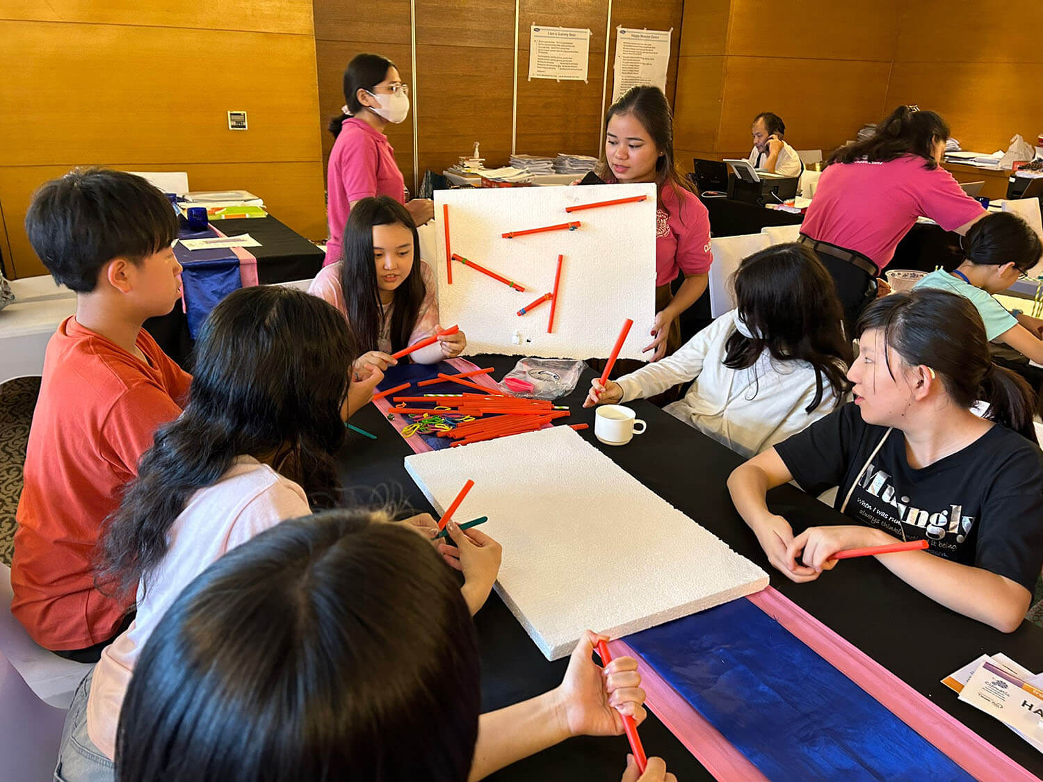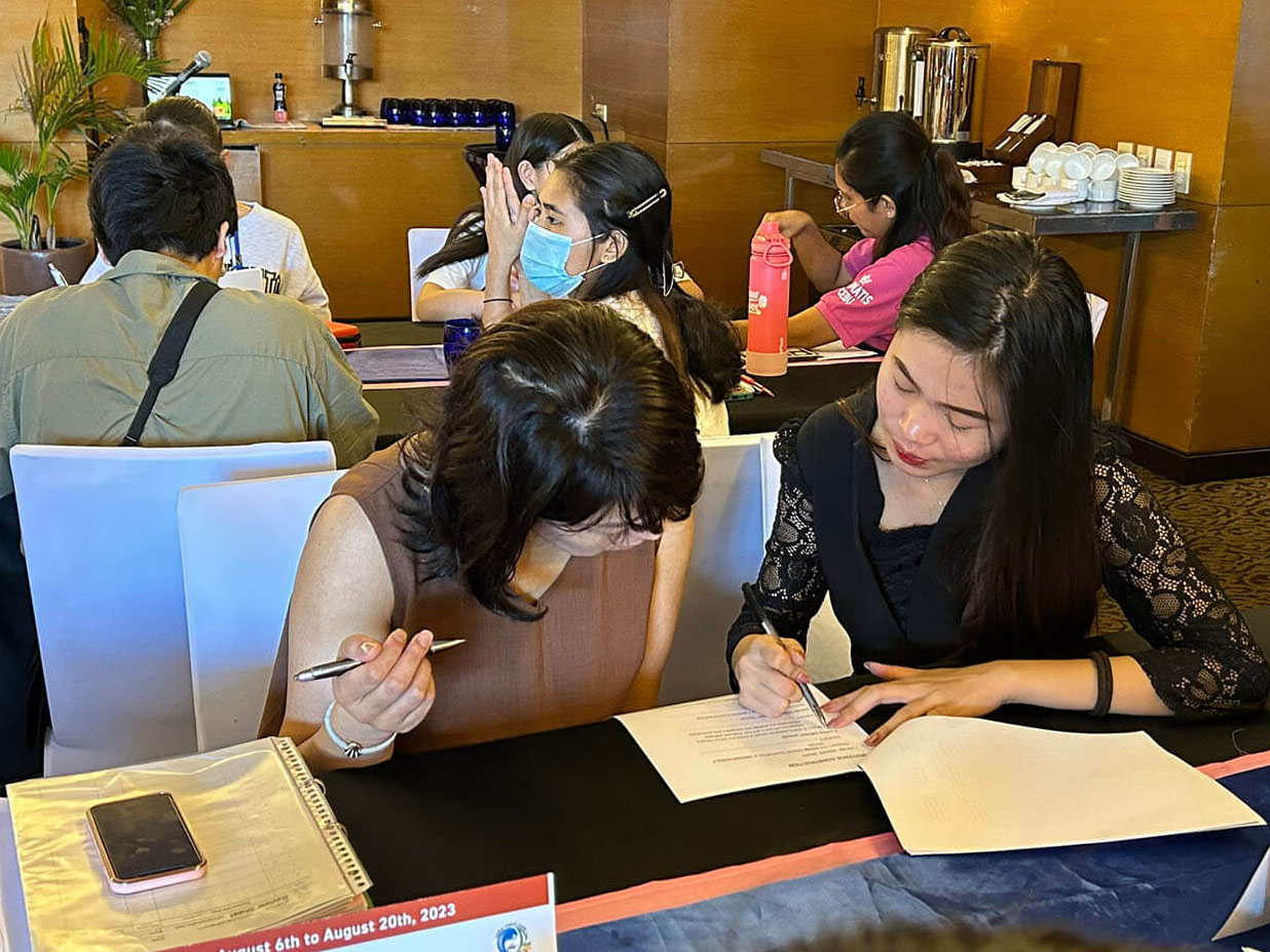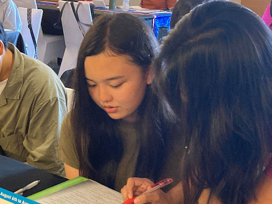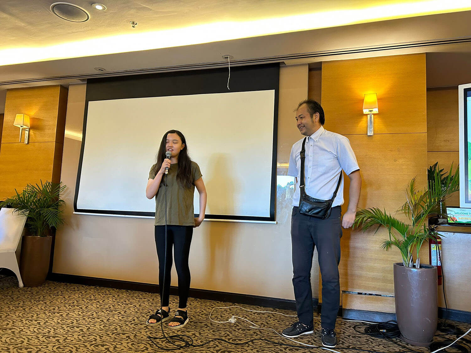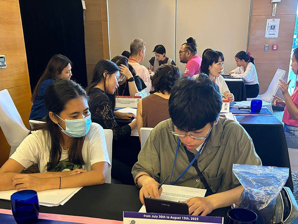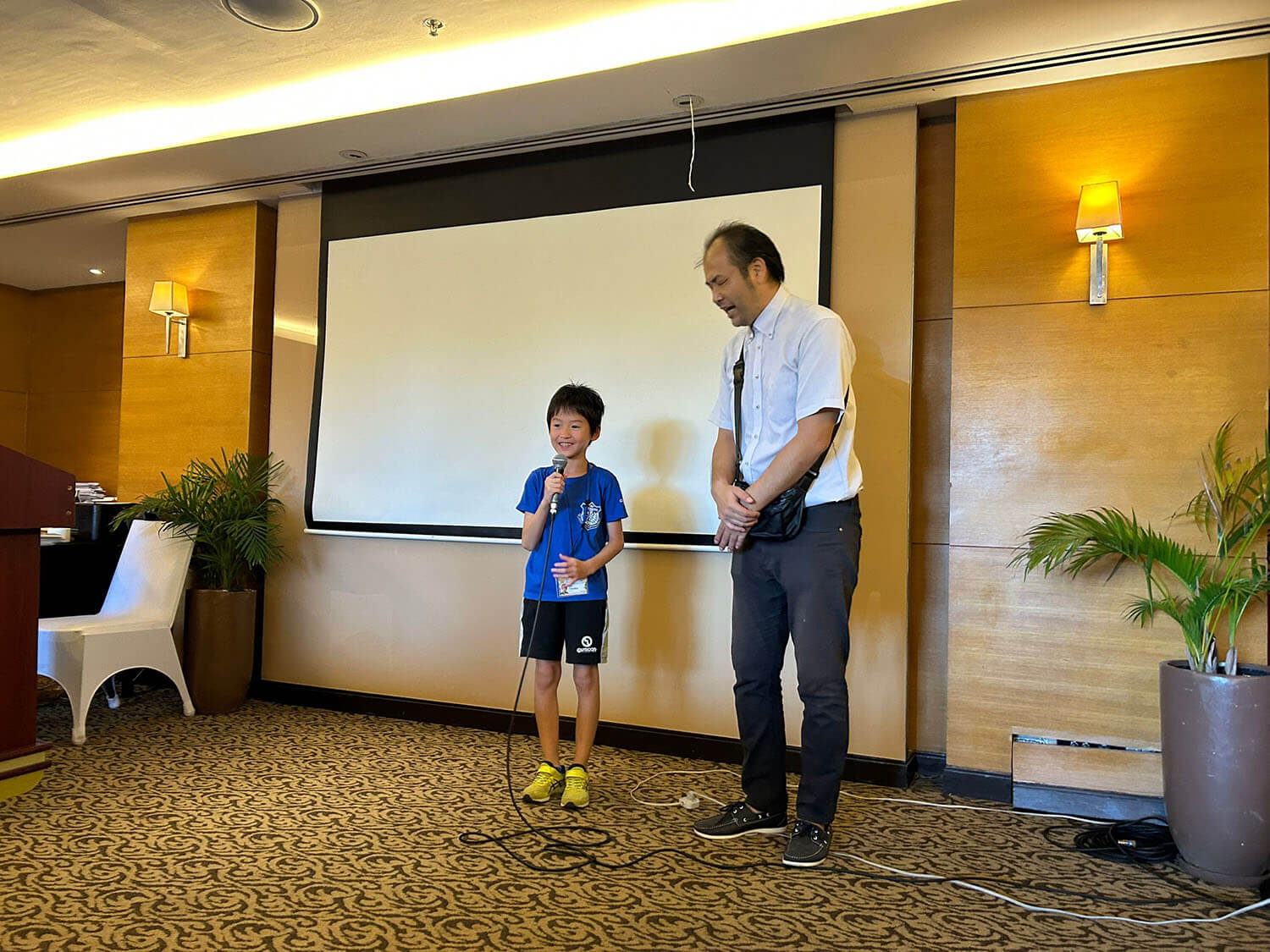 大盛況で進行中の夏休み英語漬けセブ島リゾート親子留学・ジュニアキャンプ併催のセブシティクエストホテル会場!クラスルームとなるカンファレンスは、プールが目の前のリゾート感あふれるファンクションルーム!