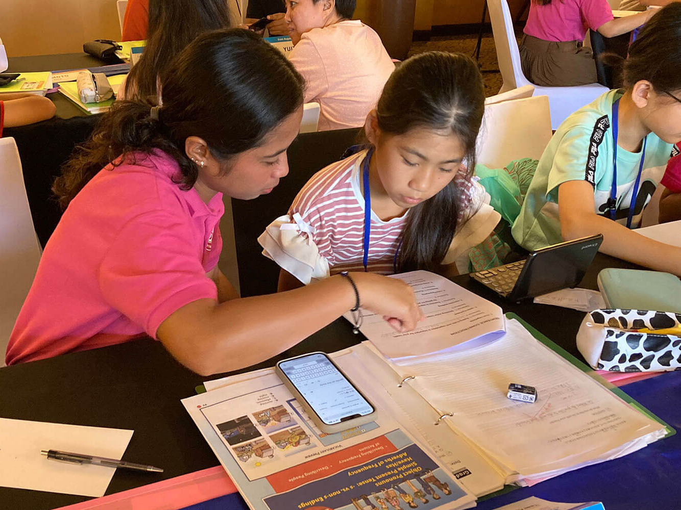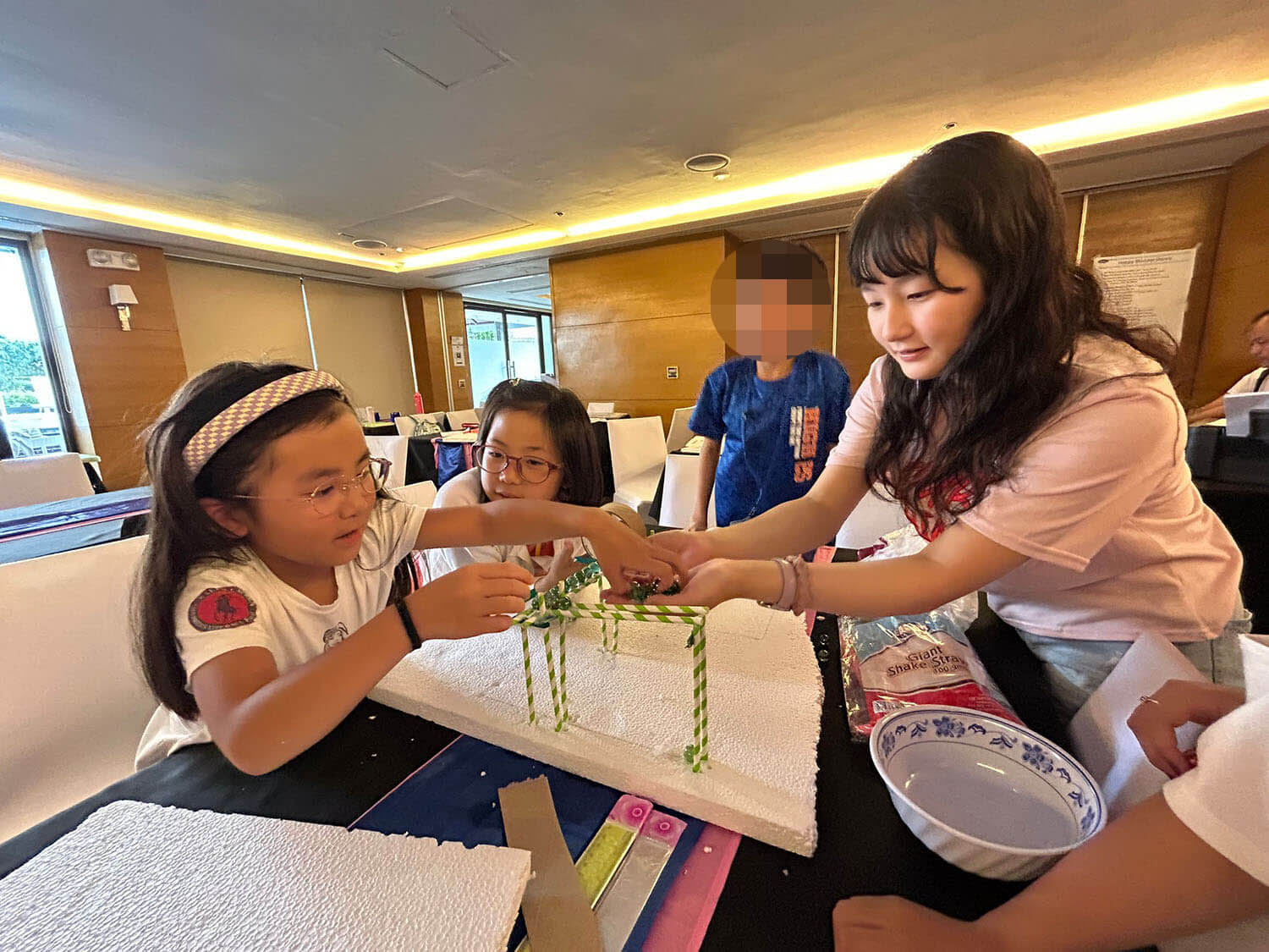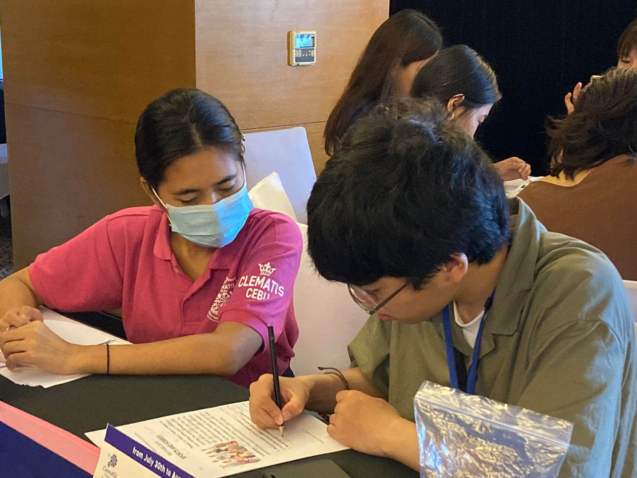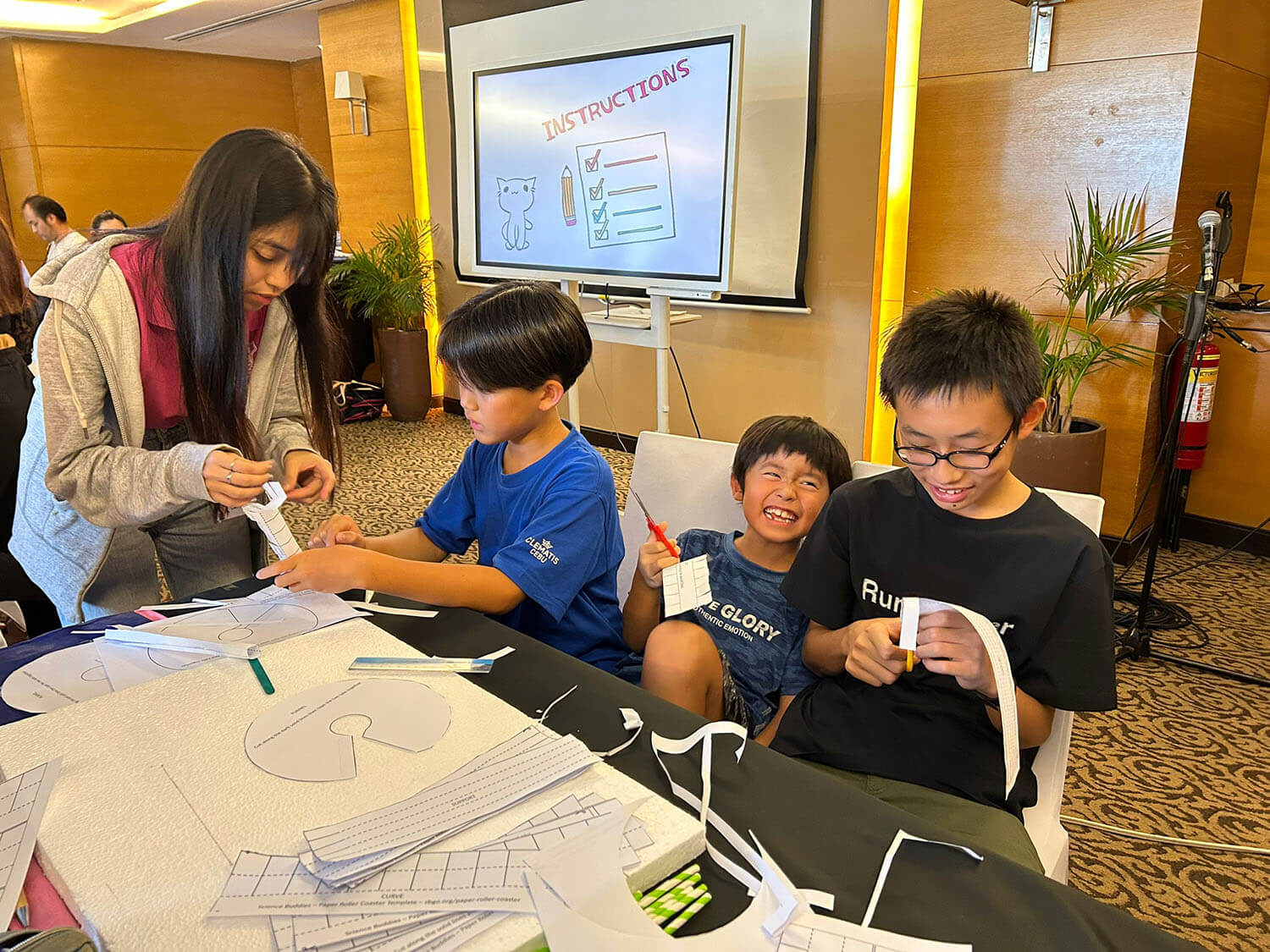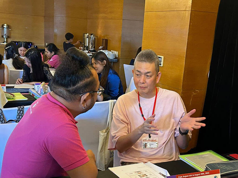 大盛況で進行中の夏休み英語漬けセブ島リゾート親子留学・ジュニアキャンプ併催のセブシティクエストホテル会場!クラスルームとなるカンファレンスは、プールが目の前のリゾート感あふれるファンクションルーム!