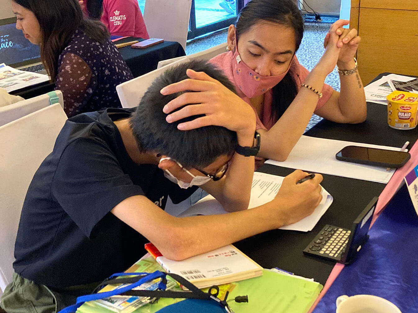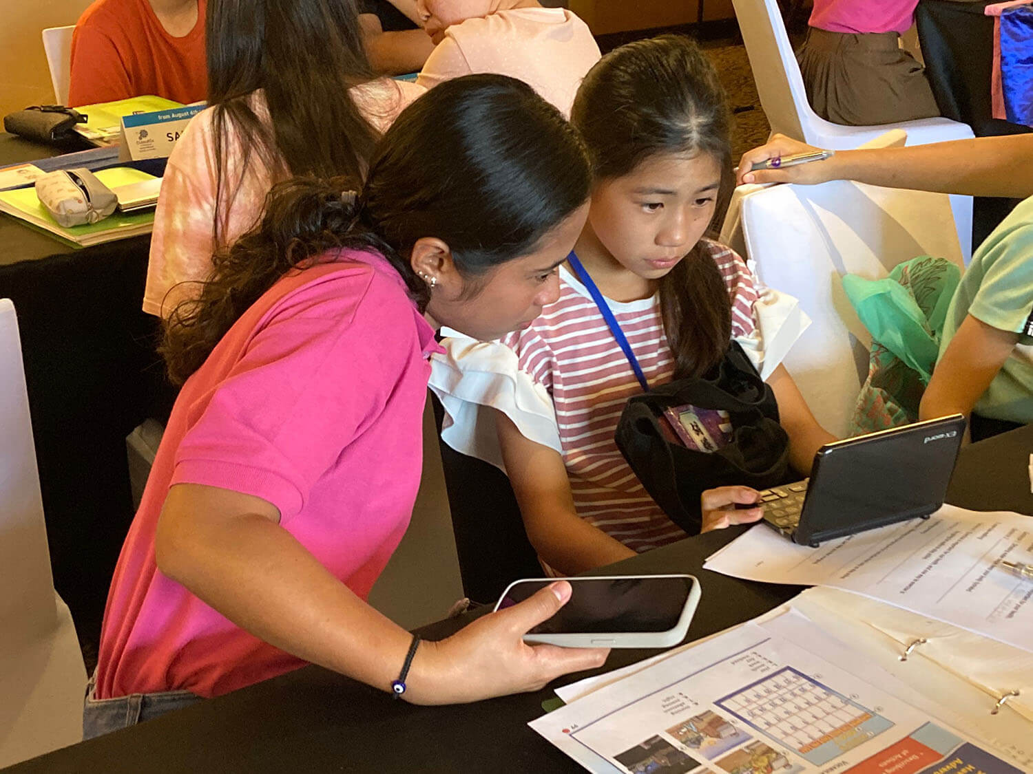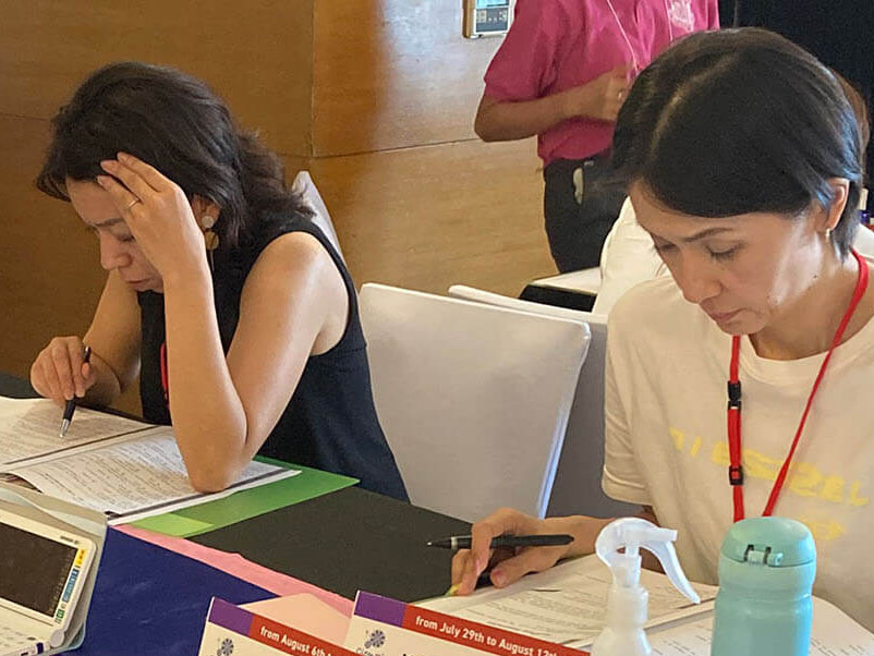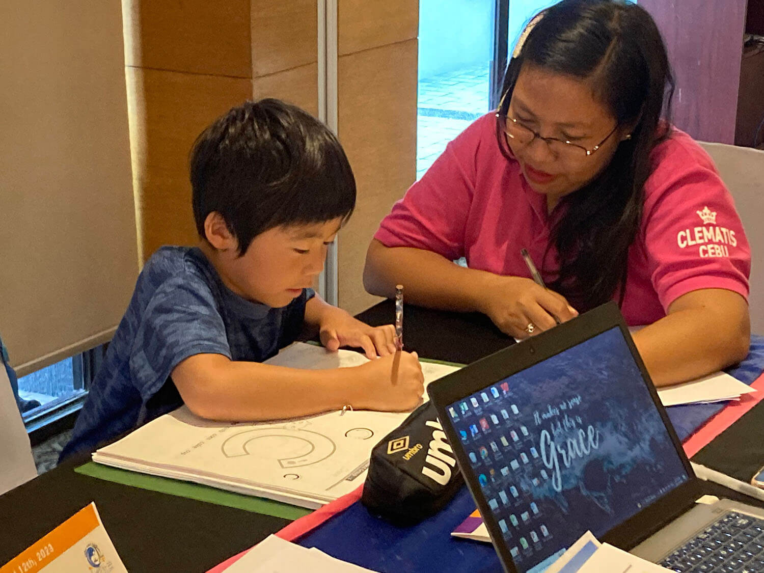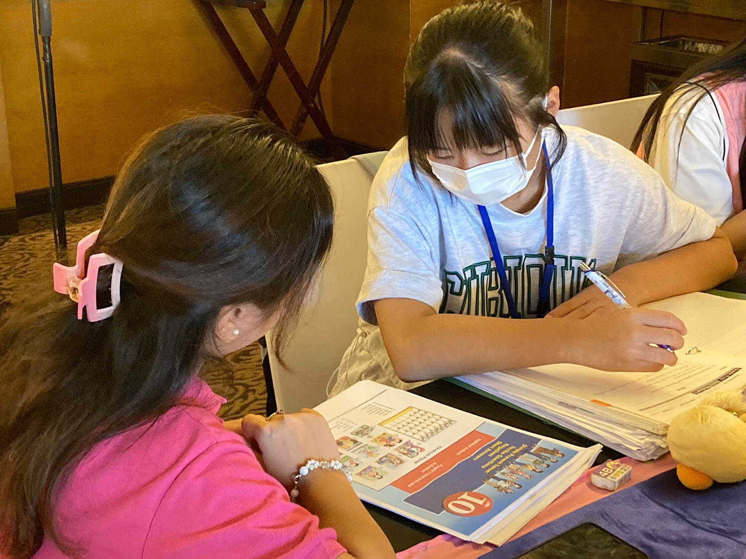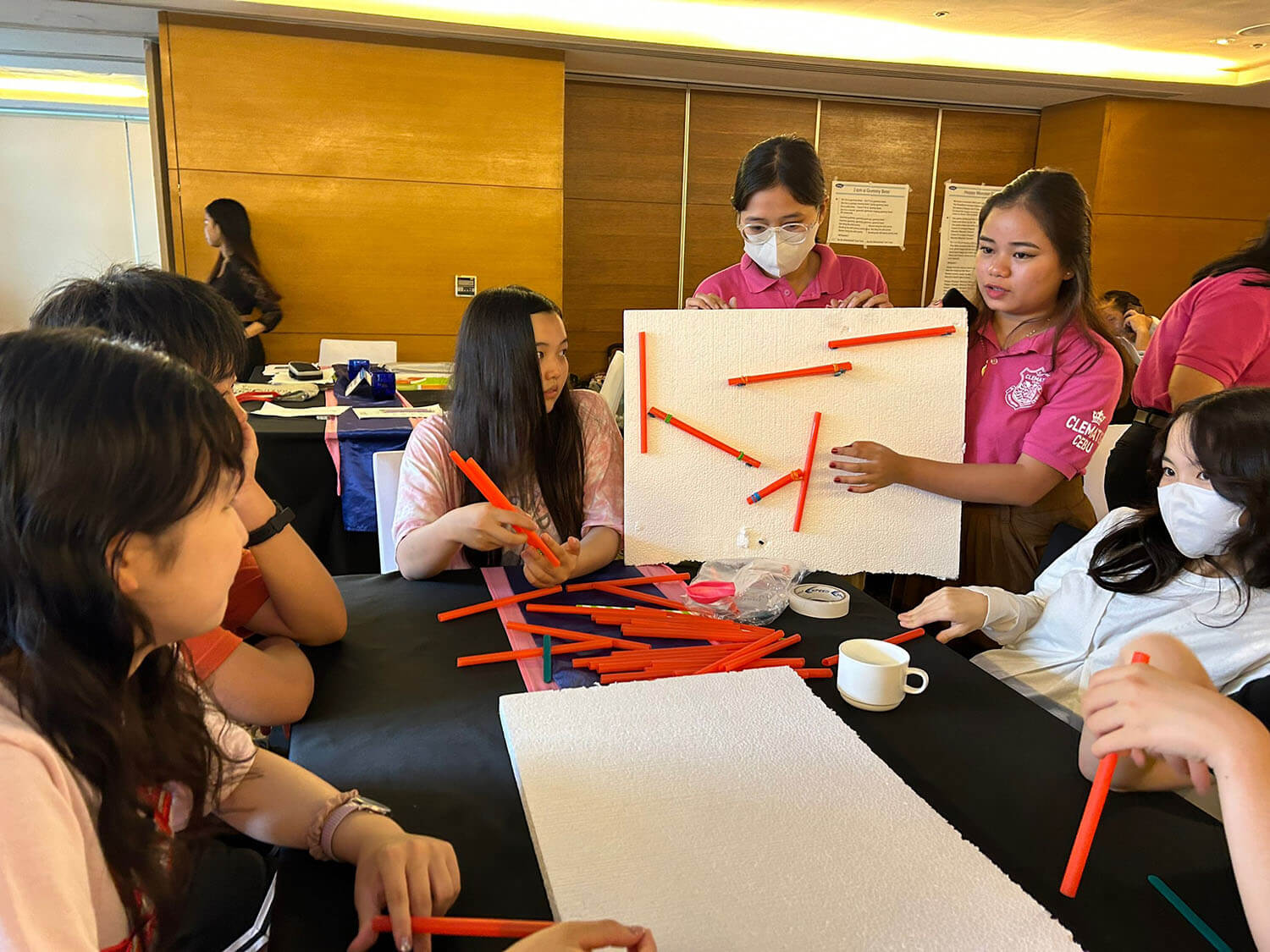 大盛況で進行中の夏休み英語漬けセブ島リゾート親子留学・ジュニアキャンプ併催のセブシティクエストホテル会場!クラスルームとなるカンファレンスは、プールが目の前のリゾート感あふれるファンクションルーム!