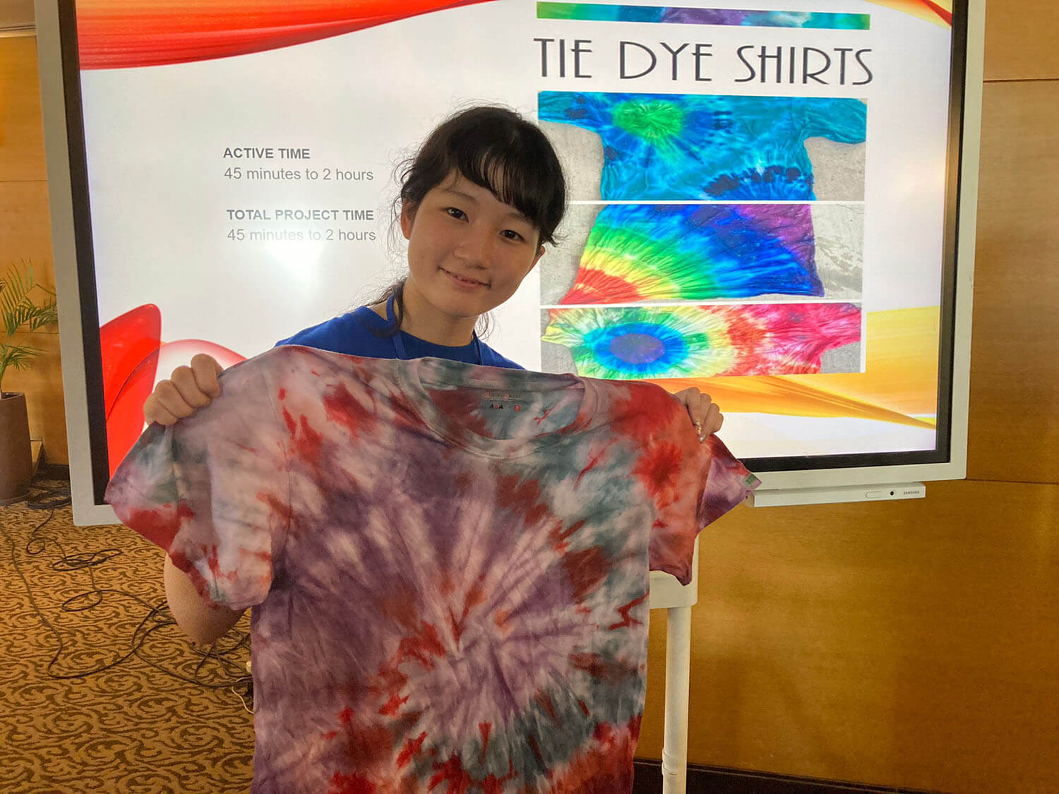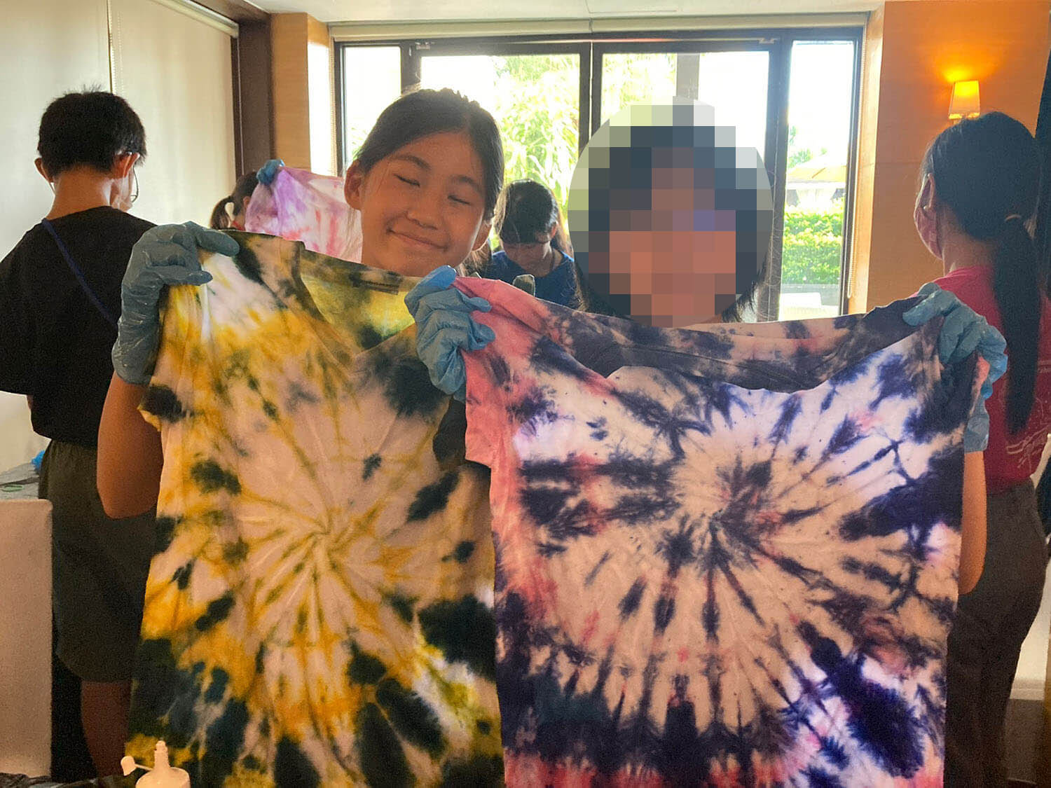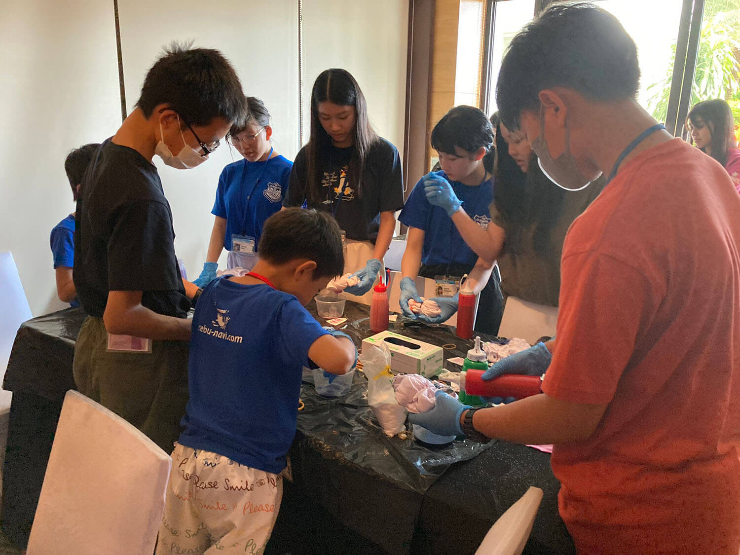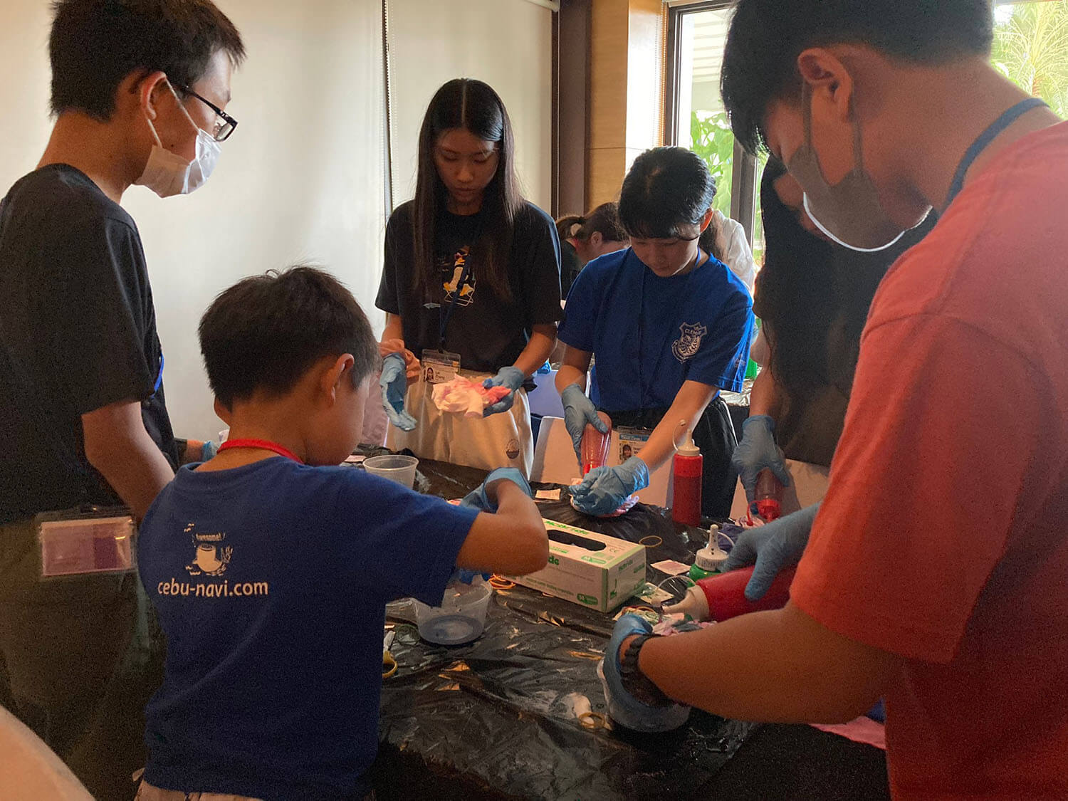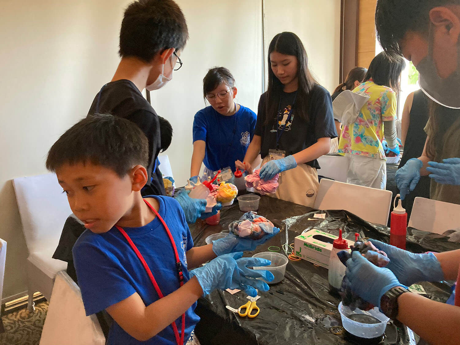 新入生の定番、Tシャツ染めサイエンスは、お昼に行われます。それぞれ個性的なTシャツが出来上がっていますね!