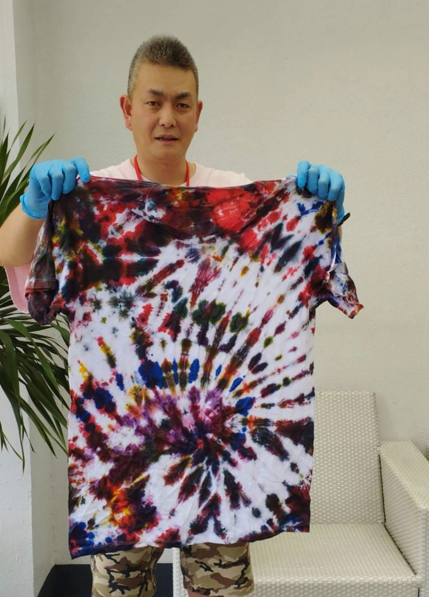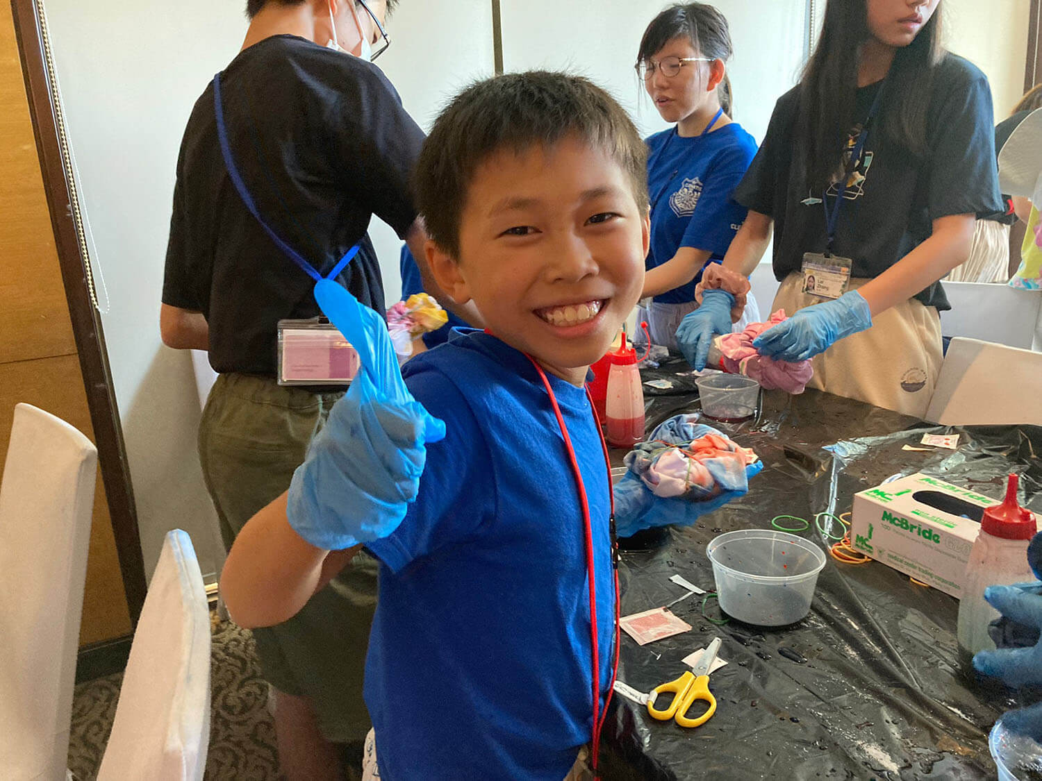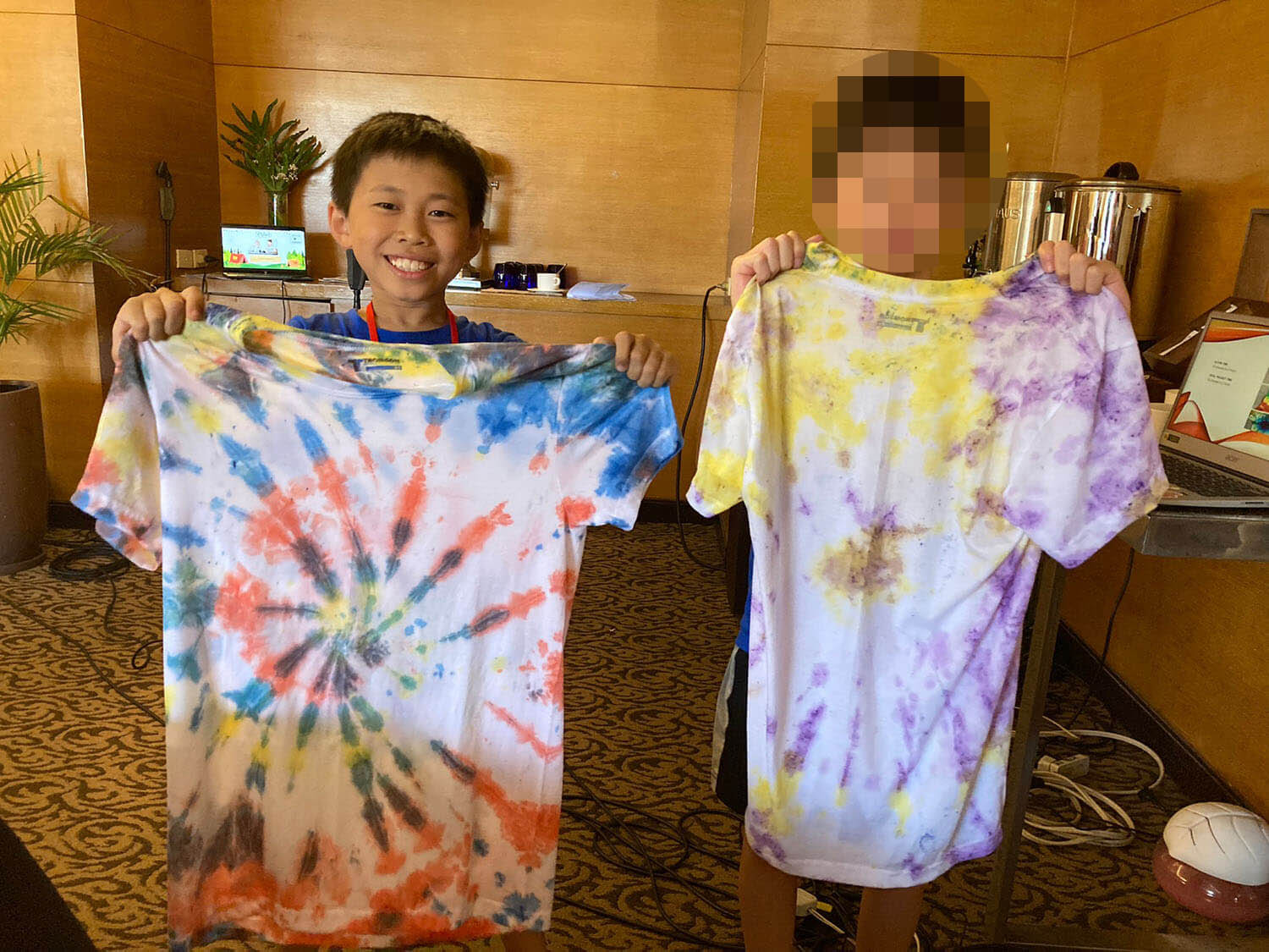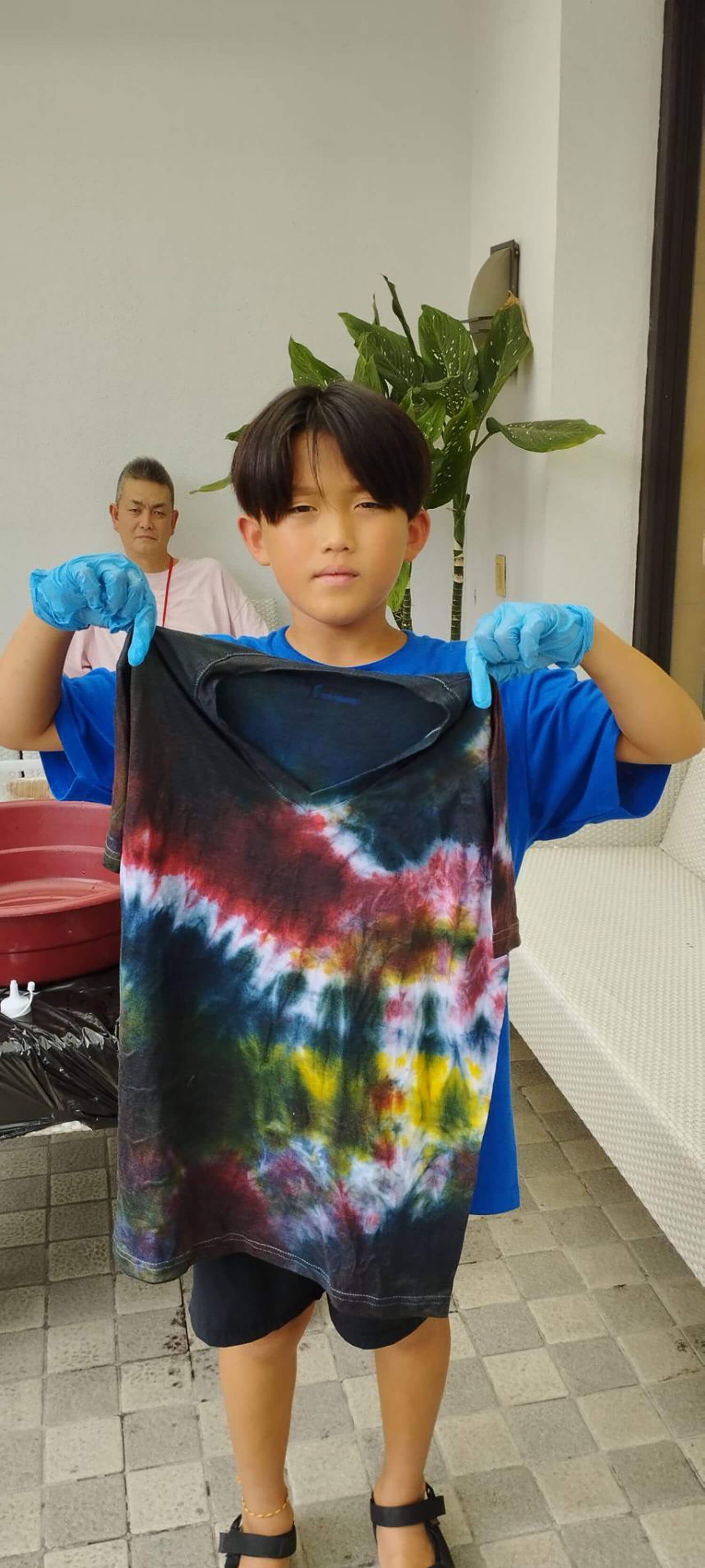 新入生の定番、Tシャツ染めサイエンスは、お昼に行われます。それぞれ個性的なTシャツが出来上がっていますね!