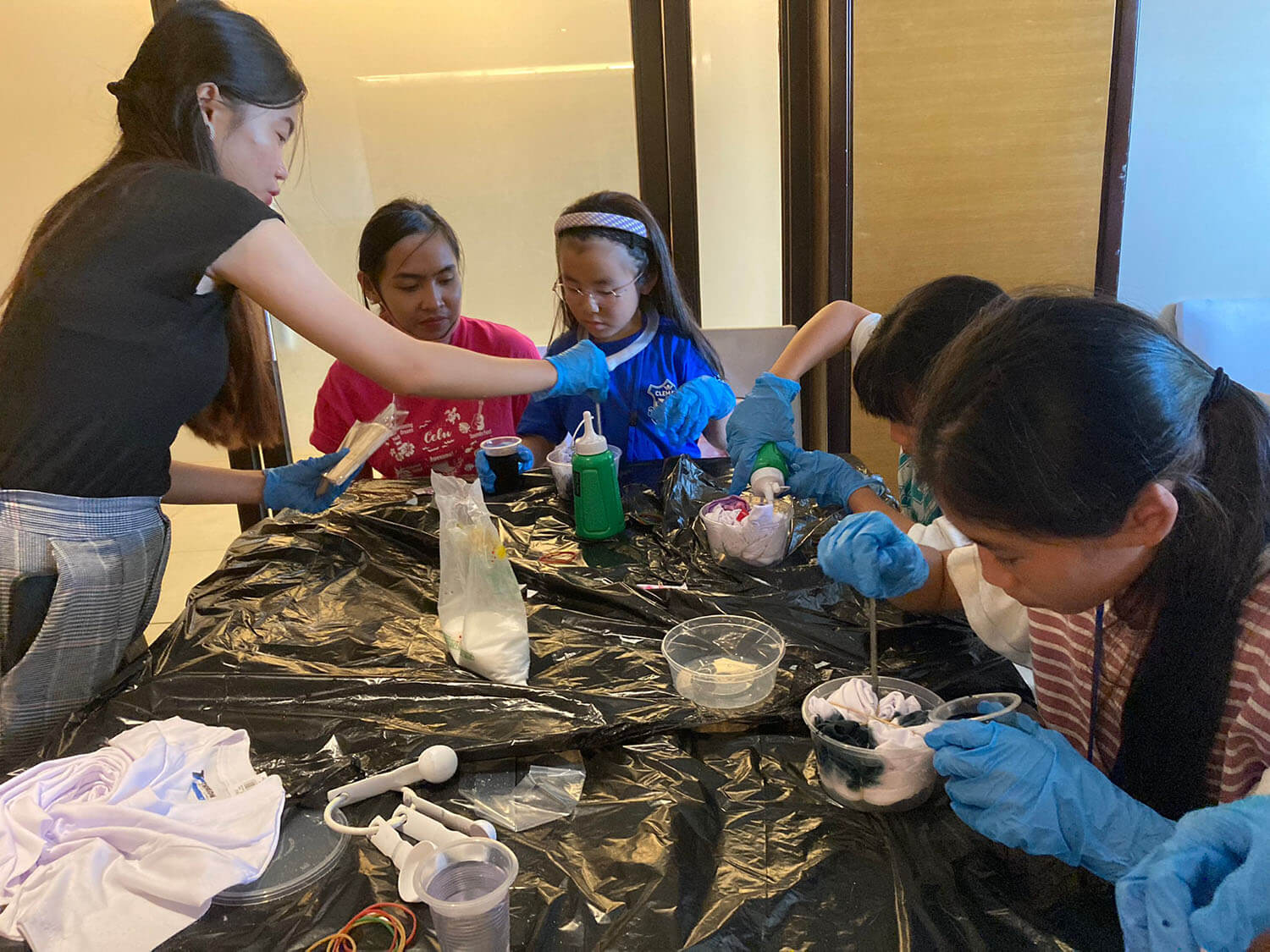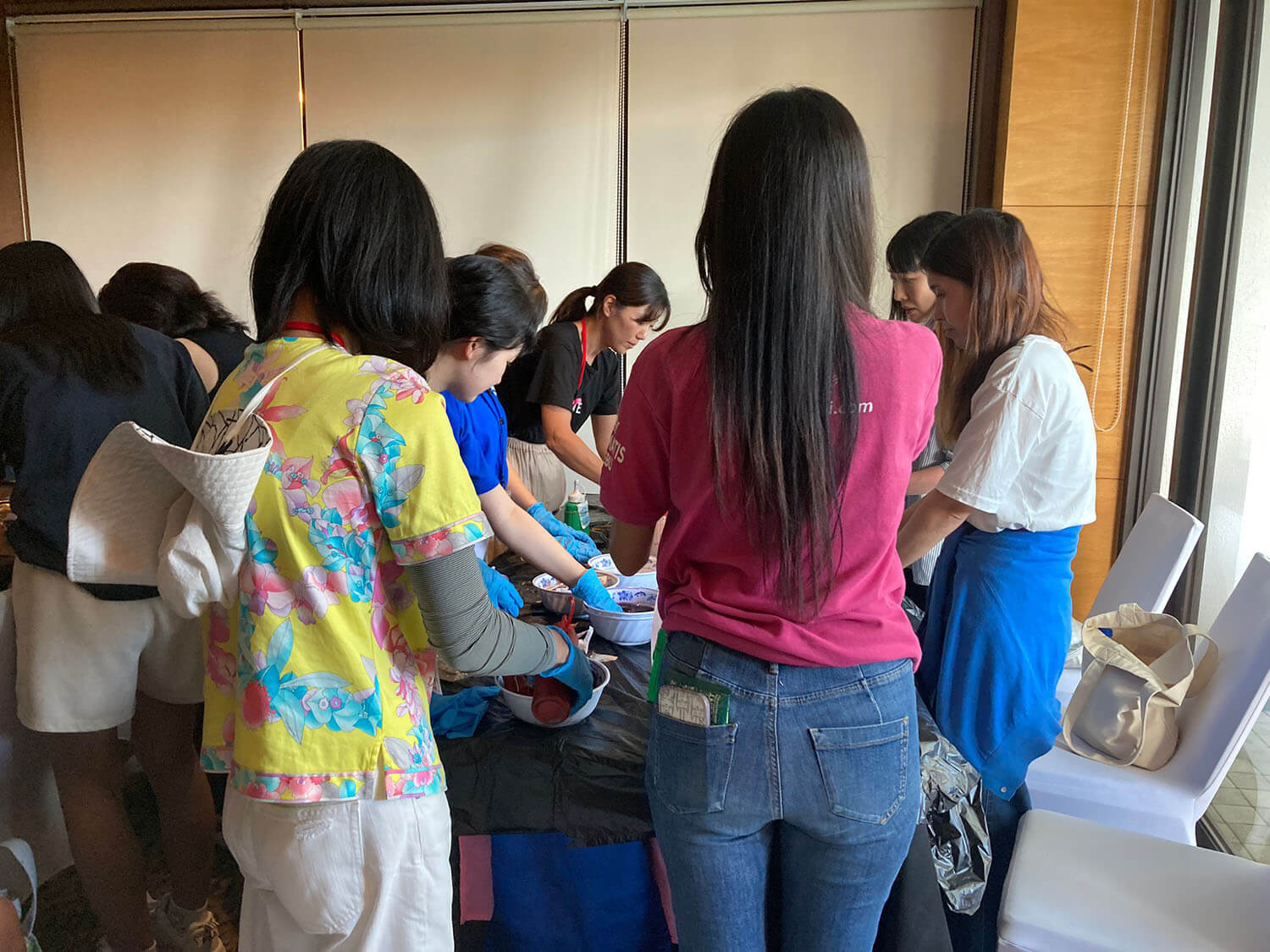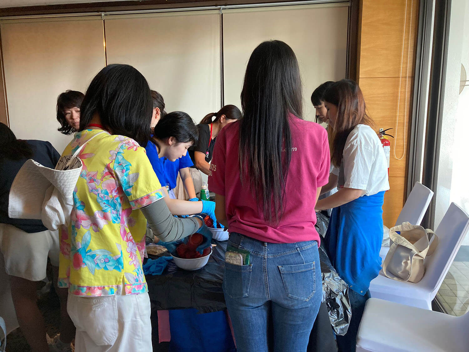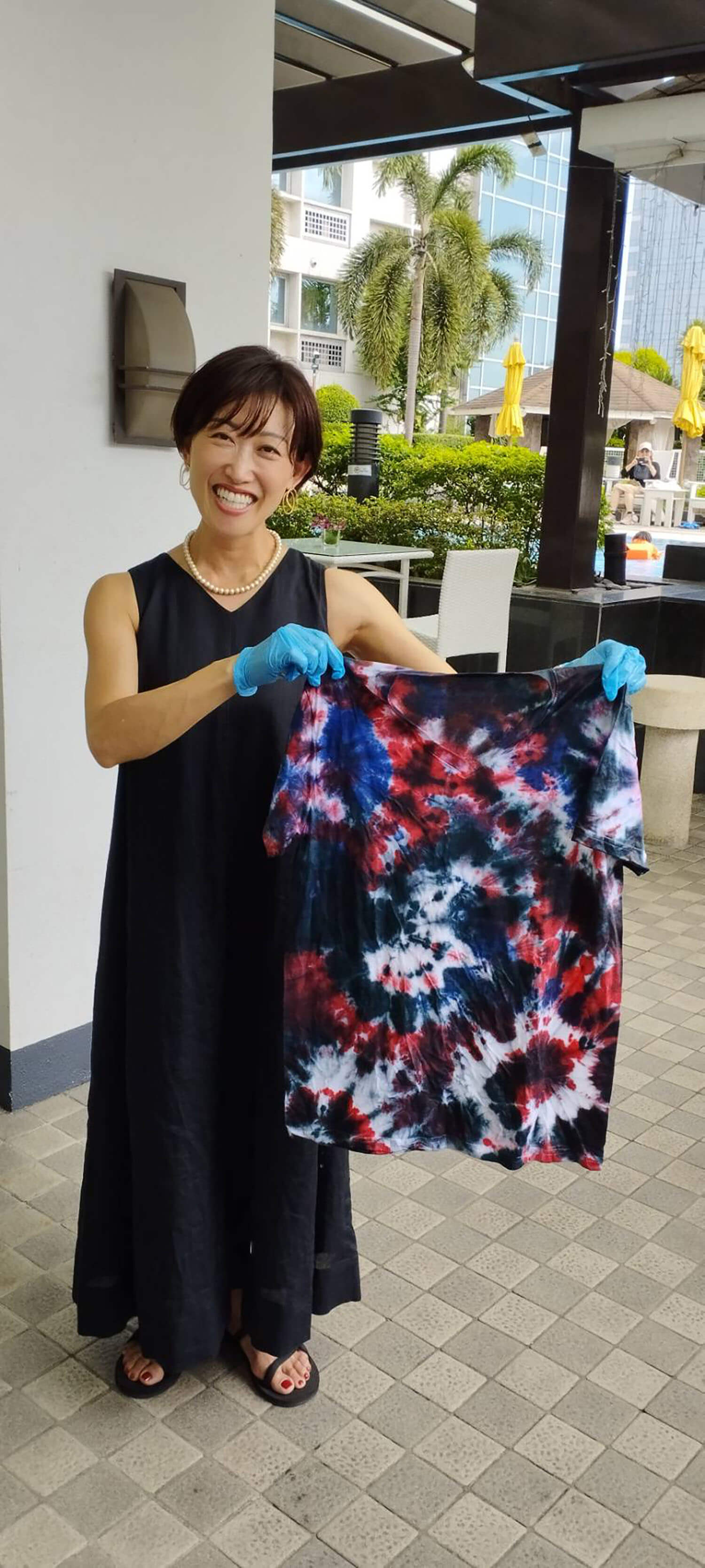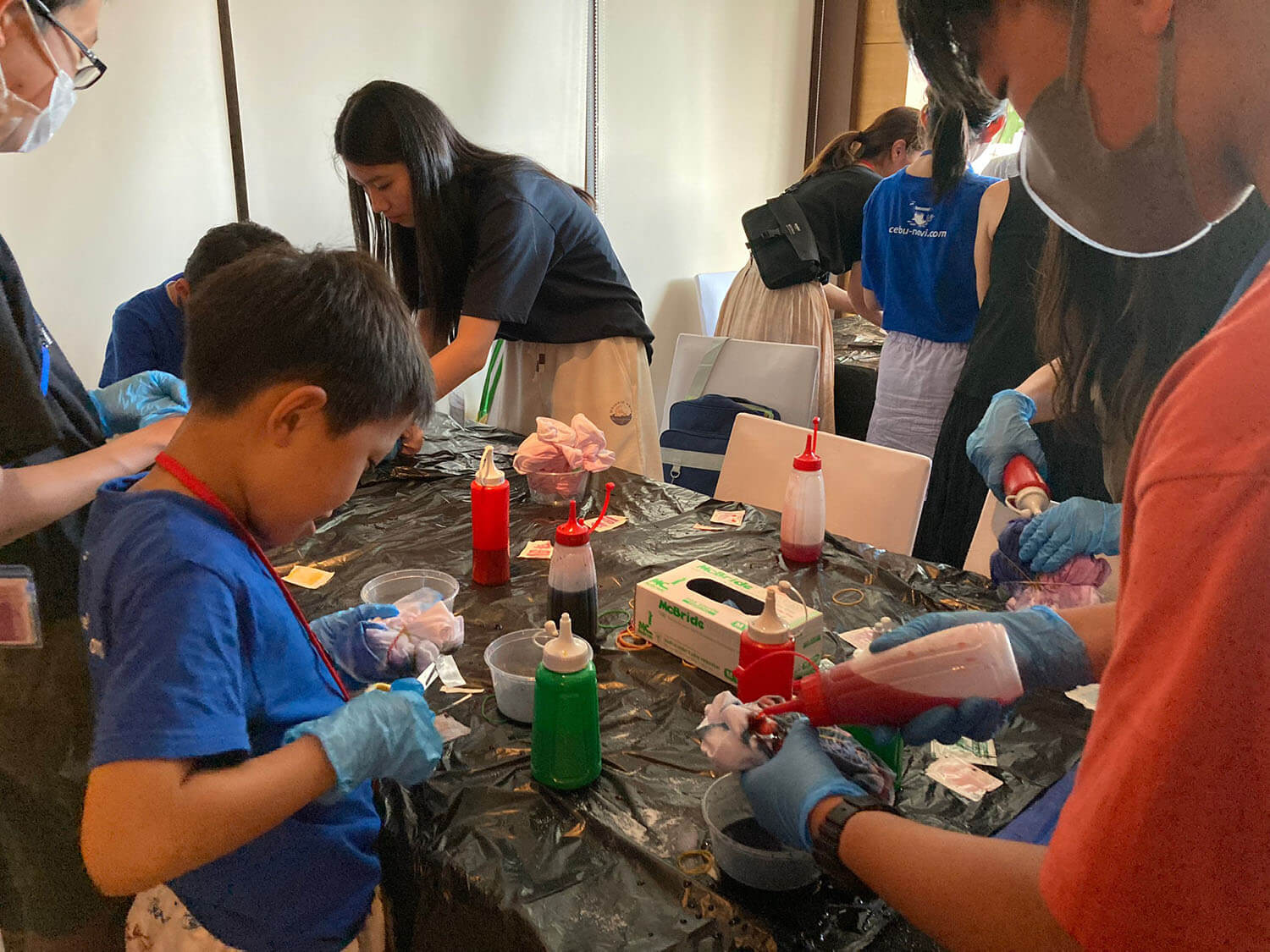 新入生の定番、Tシャツ染めサイエンスは、お昼に行われます。それぞれ個性的なTシャツが出来上がっていますね!