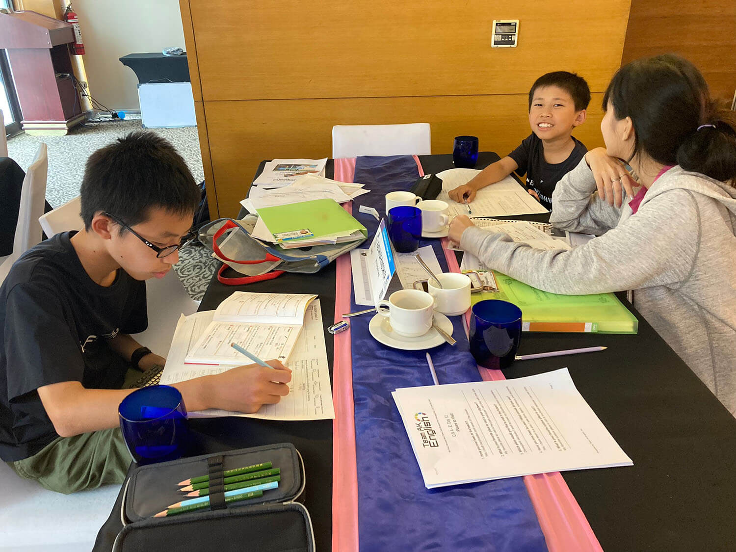 ジュニアたちは、元気いっぱいです!今日から参加のジュニアたちは、グループクラスの英検を続けて2コマ終えた後は、お楽しみのサイエンスタイムですーーー!!!
