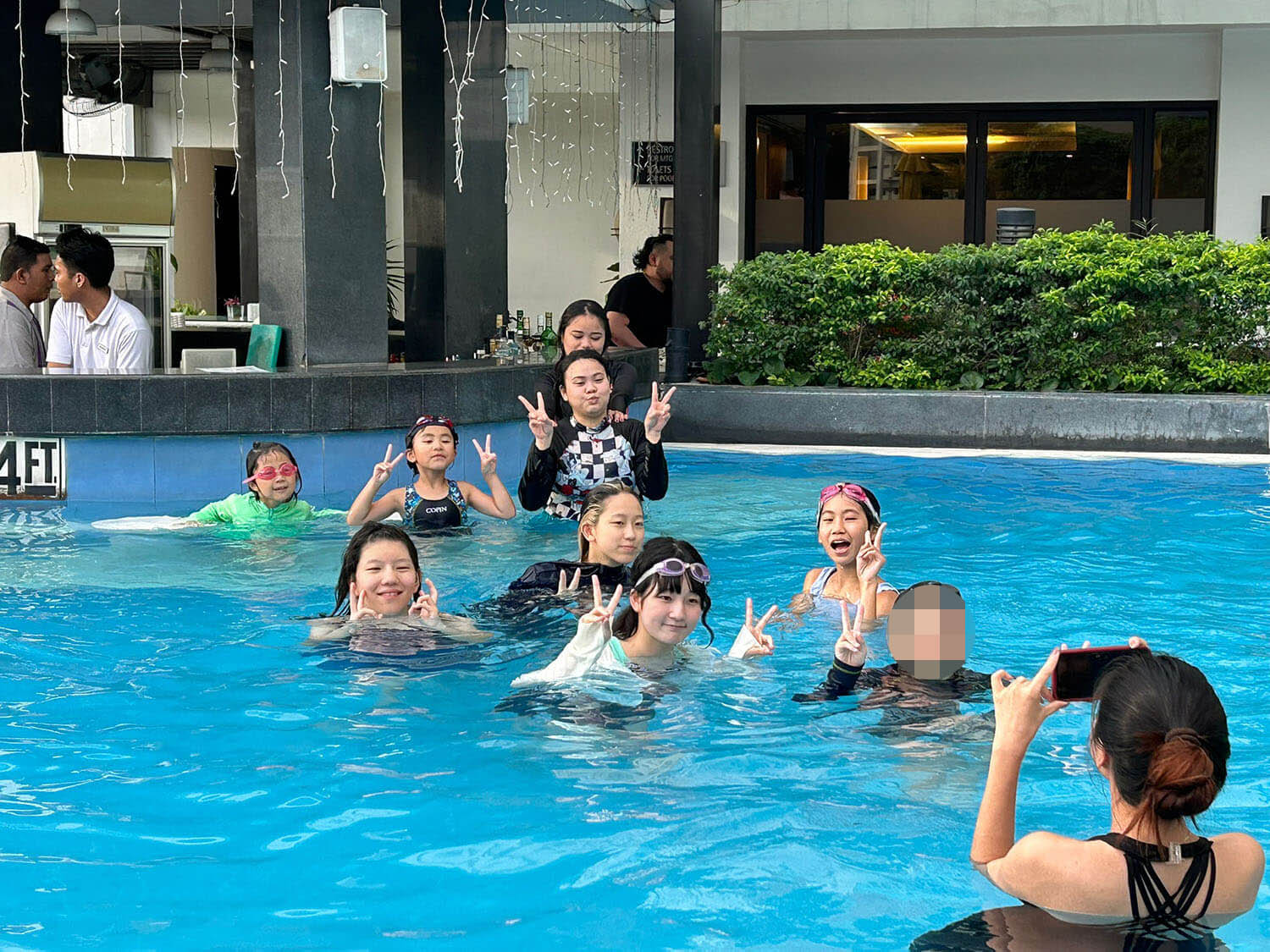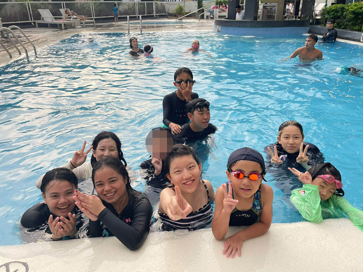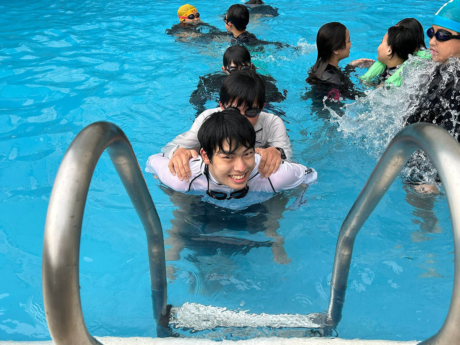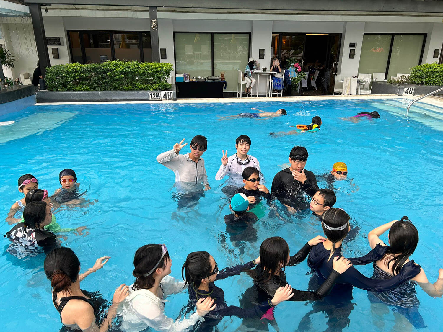 並んで泳いだり、輪になって歌ったり、みんなすごくはしゃいで楽しんでいました。
