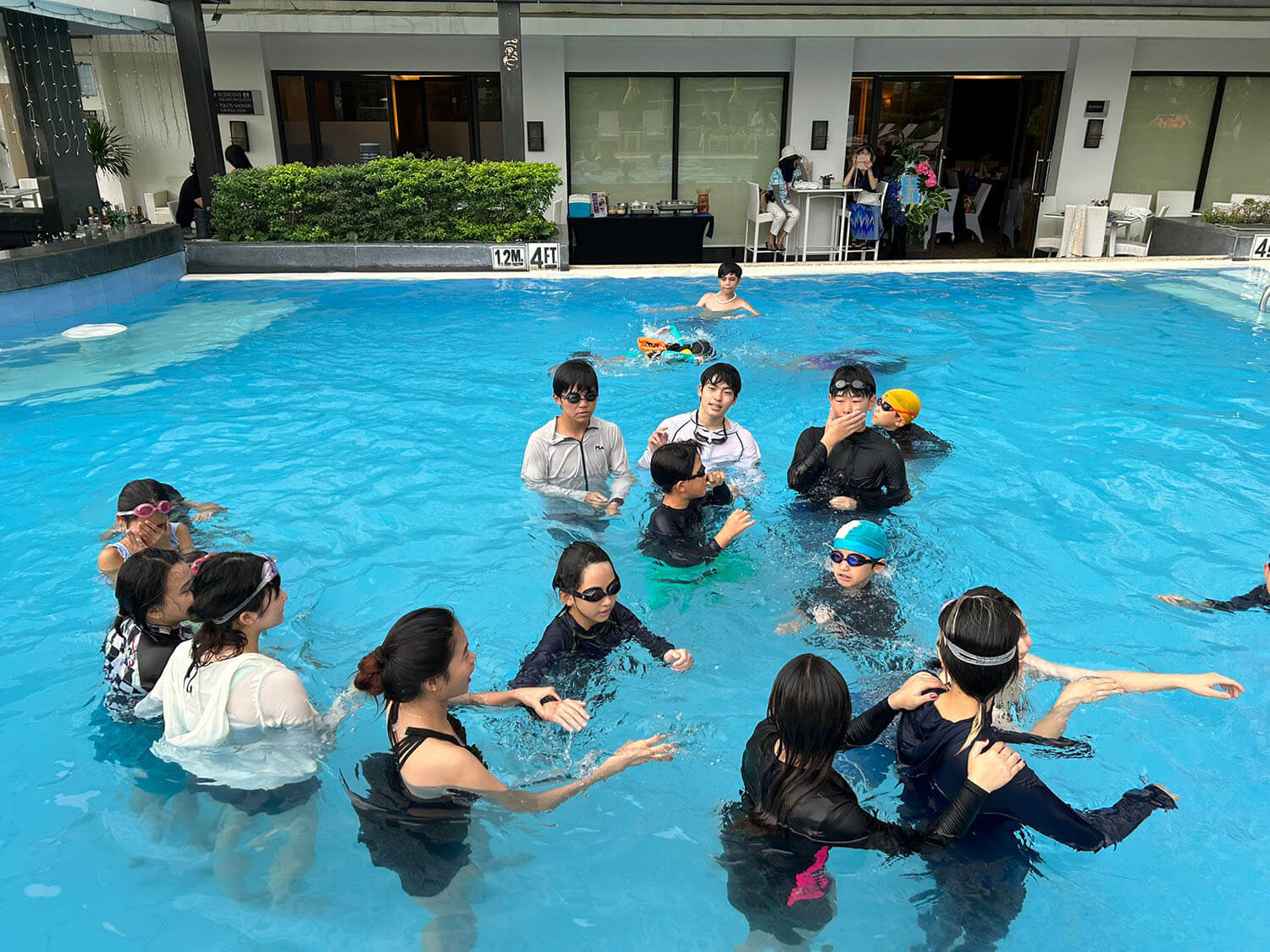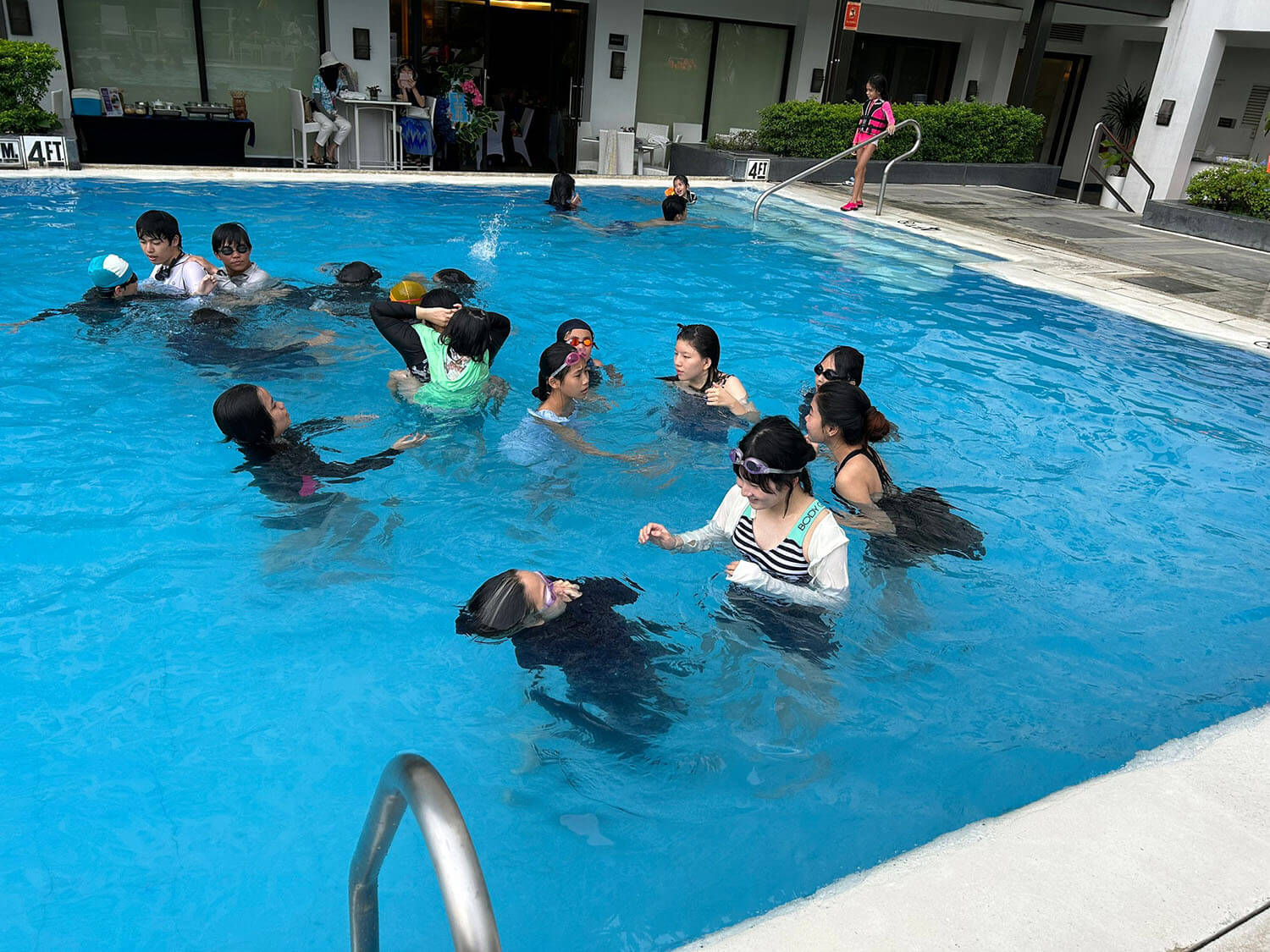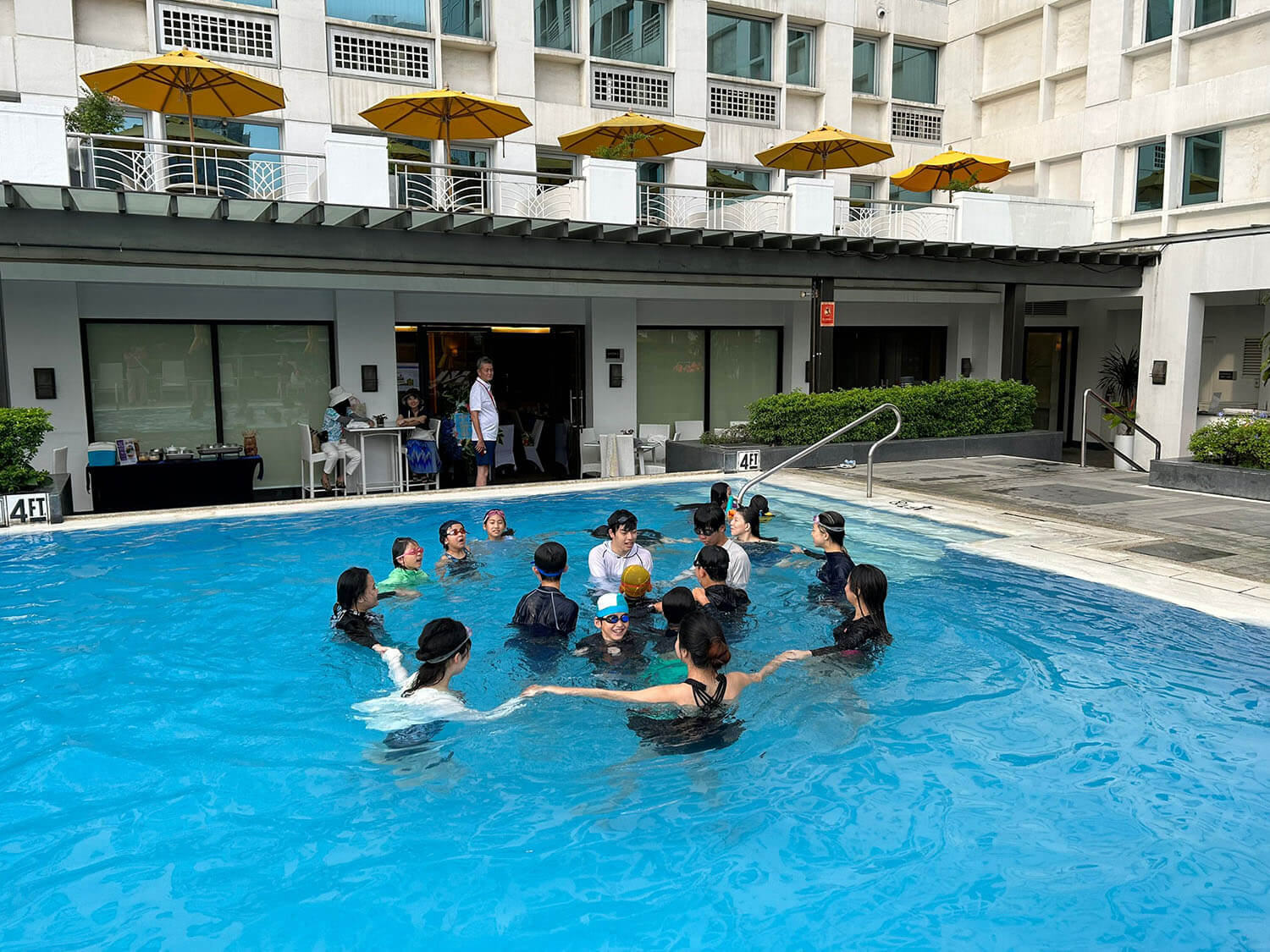 並んで泳いだり、輪になって歌ったり、みんなすごくはしゃいで楽しんでいました。