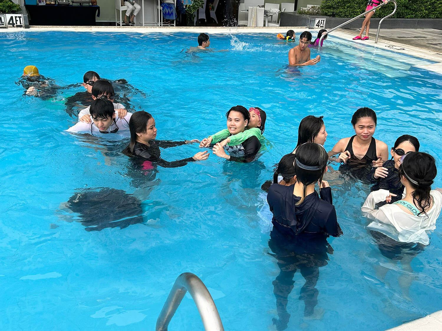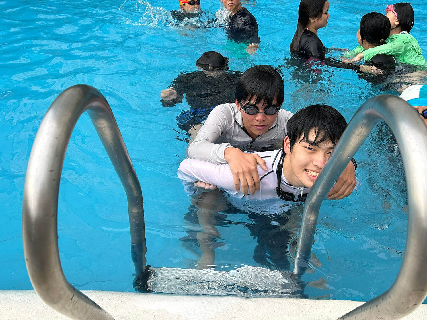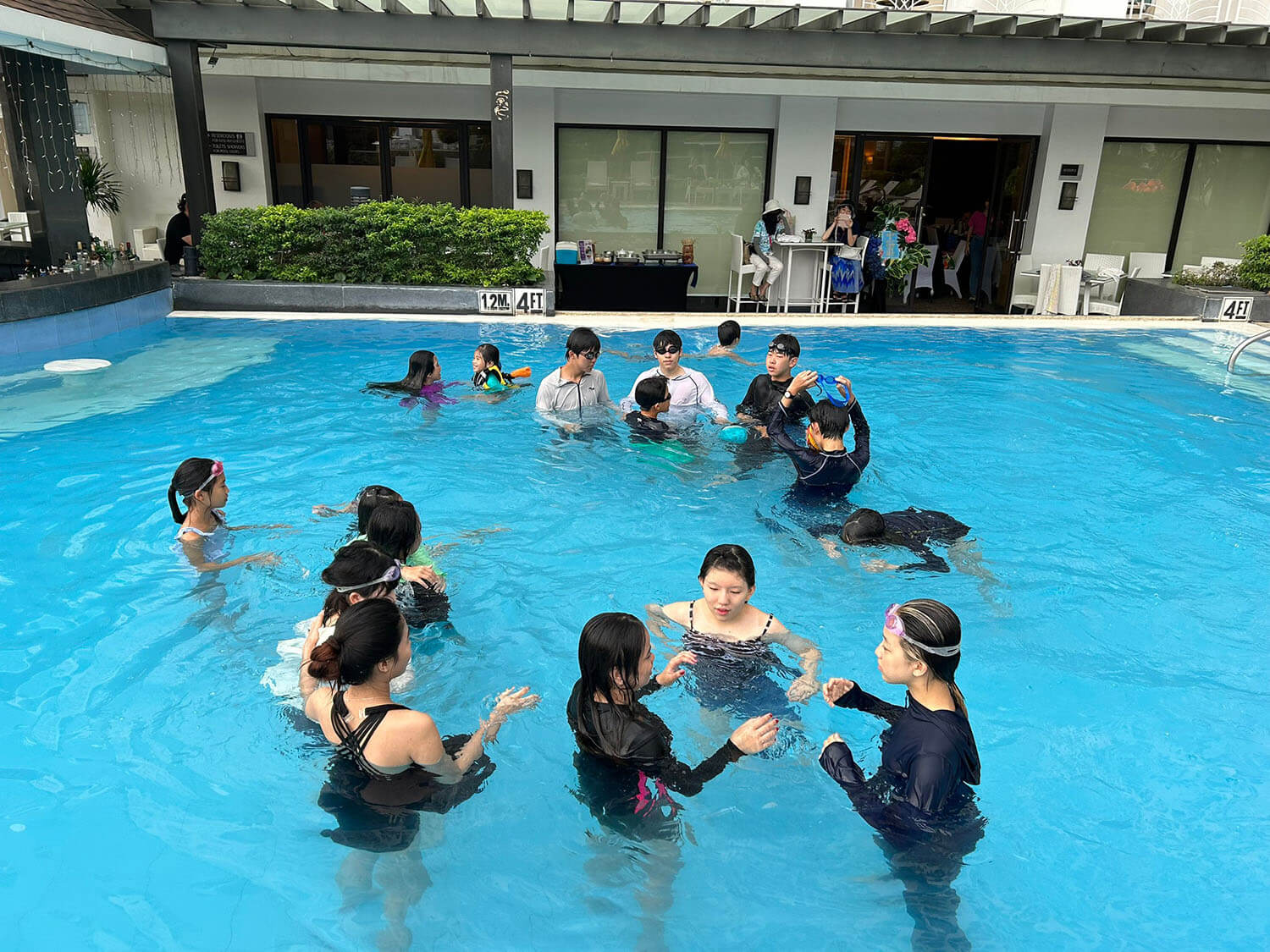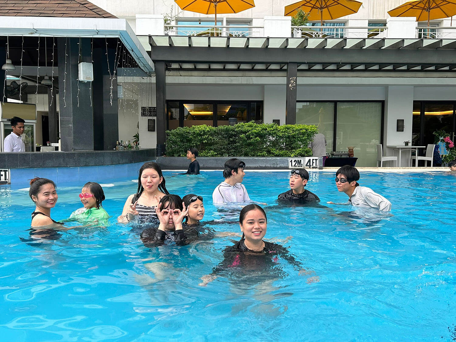 並んで泳いだり、輪になって歌ったり、みんなすごくはしゃいで楽しんでいました。
