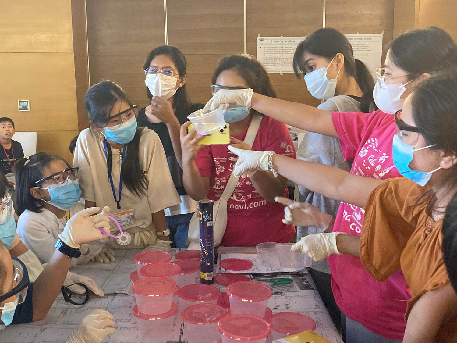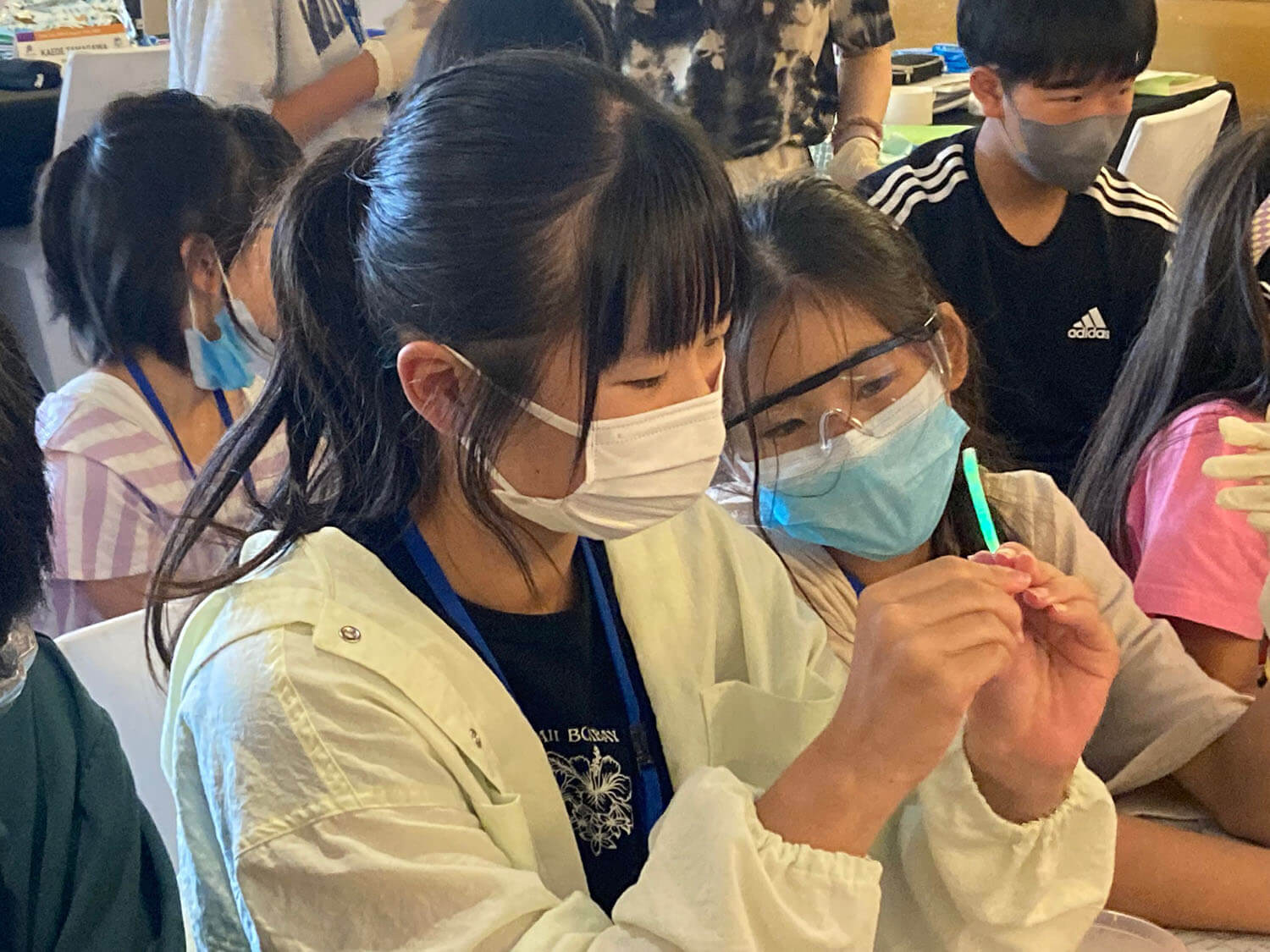 今日のサイエンスは、みんなで光るブレスレットを作りました!