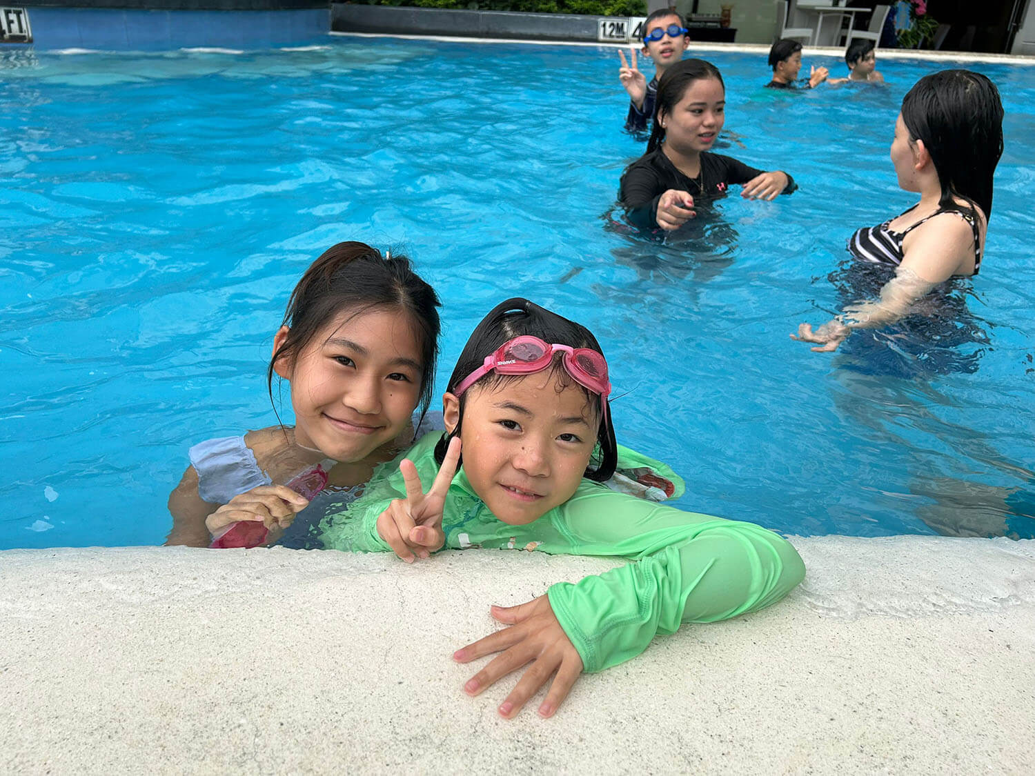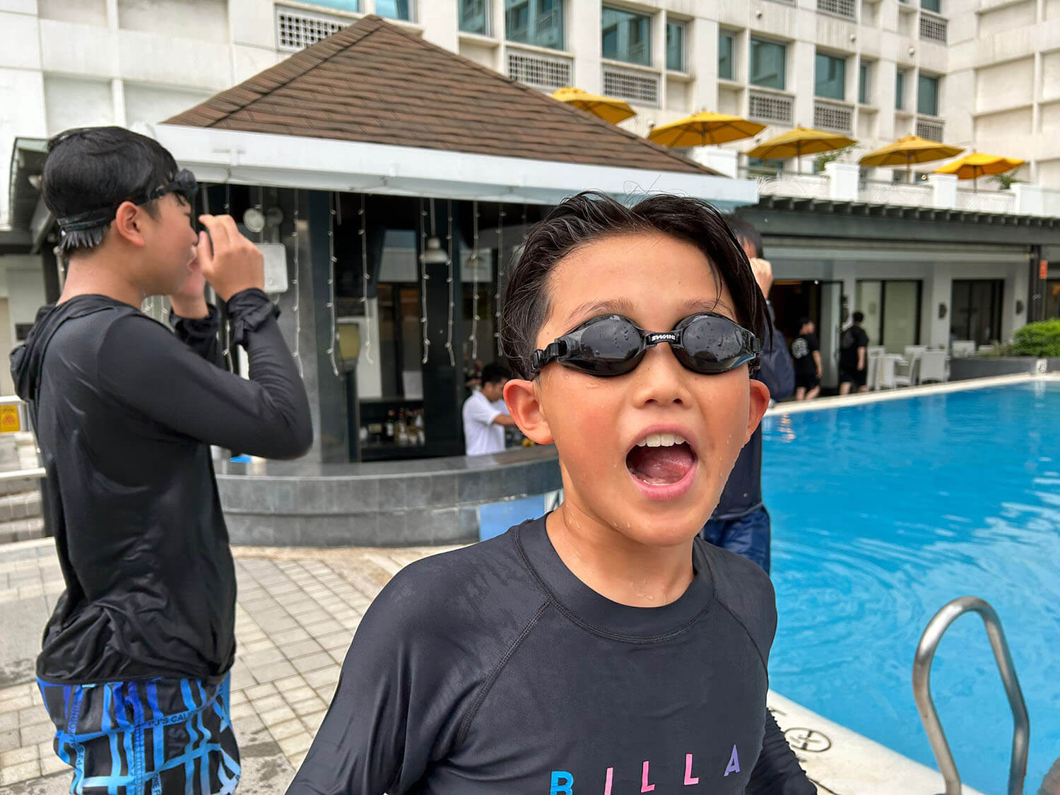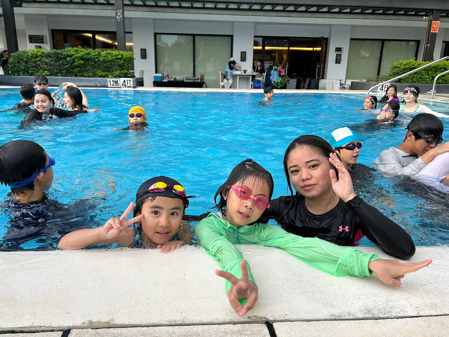 教室から眺められる広大なプールを目の前に、いつプールで遊べるの?と講師やスタッフに聞いて、この日を待ちわびていた子も!