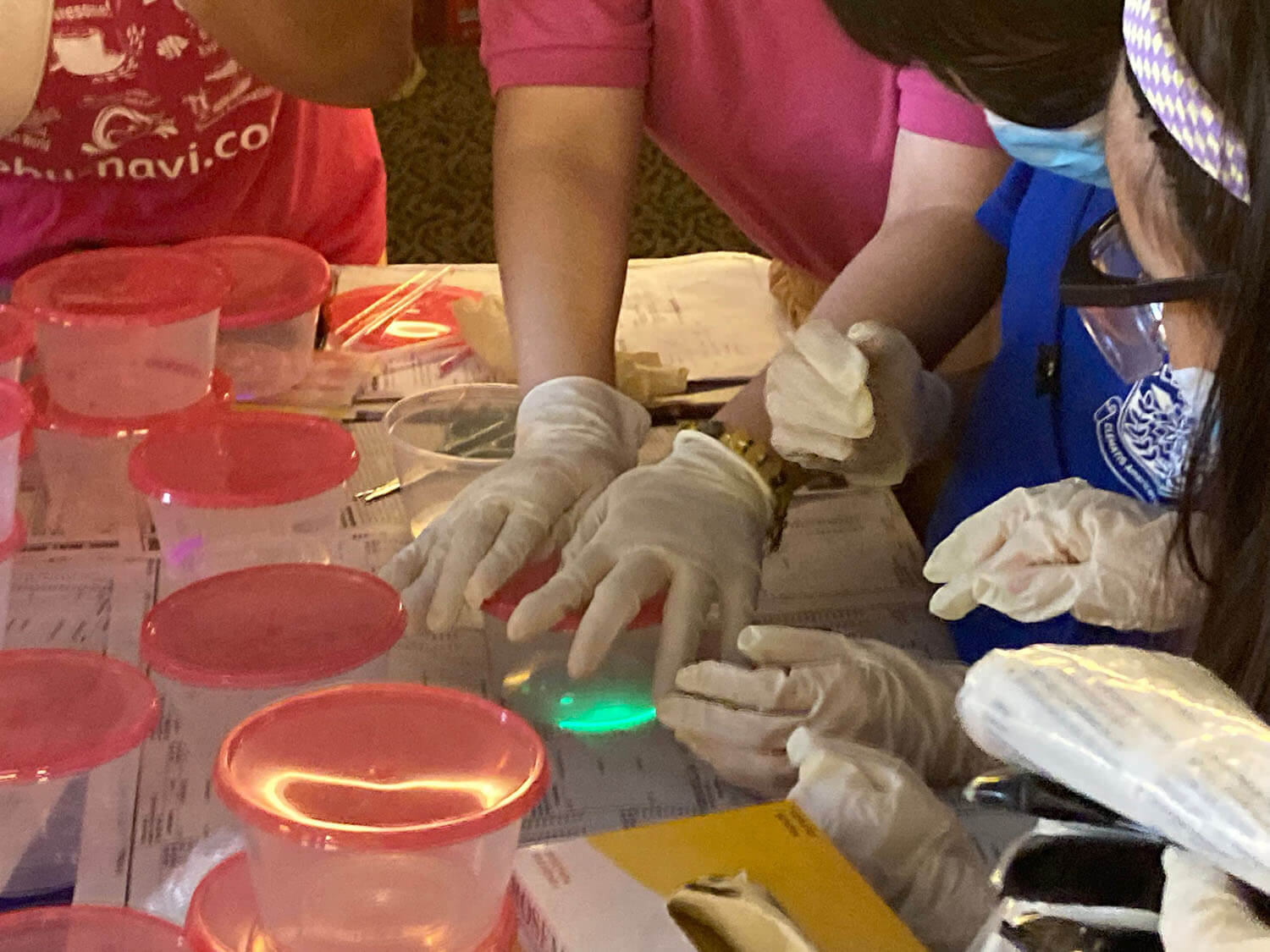 まずは、光っていないブレスレットを分解し、中の2種類の液体を慎重に取り出します。