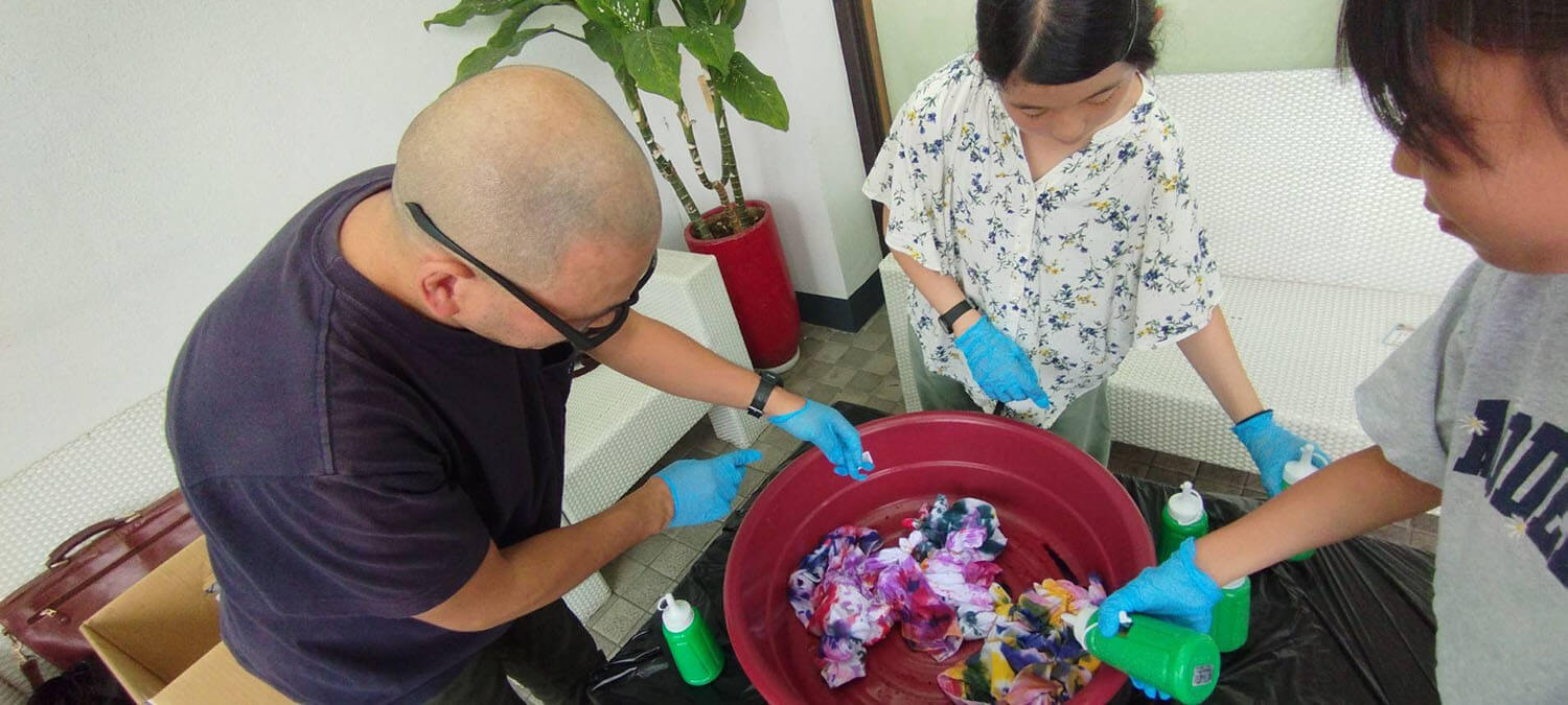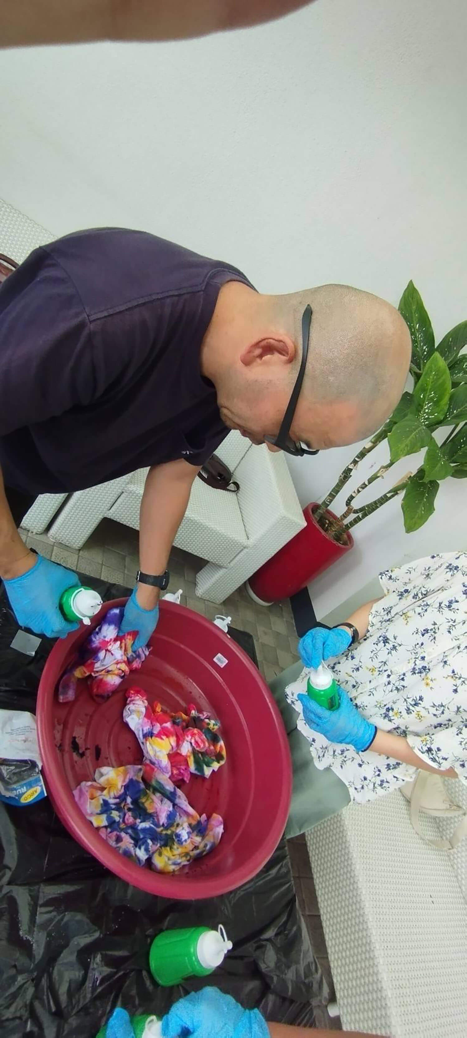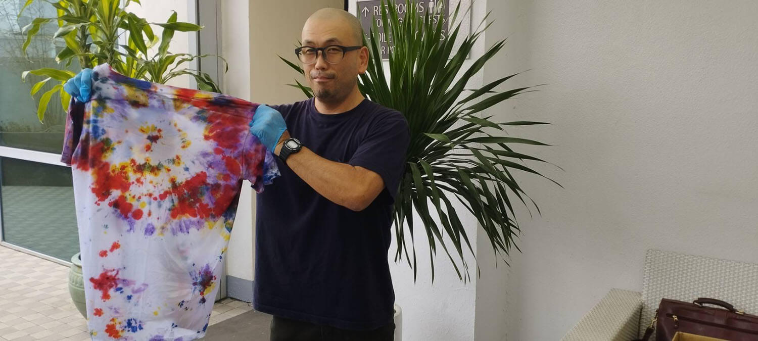留学すると、まずは誰もが最初にチャレンジするタイダイのTシャツ染め。