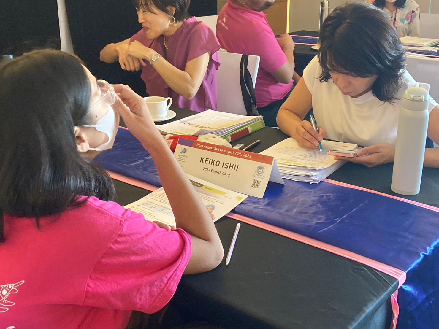 午前中4コマのマンツーマンを無事済ませてランチを美味しくいただいた後は、午後から6コマのグループクラス。これぞセブナビ×TAKE CEBU英語漬けキャンプ!!