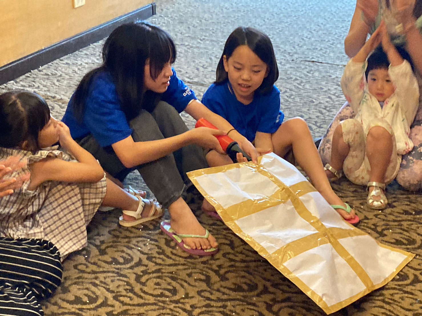 大きなドームが完成したら、空気入れで空気を入れて膨らませてみましょう!