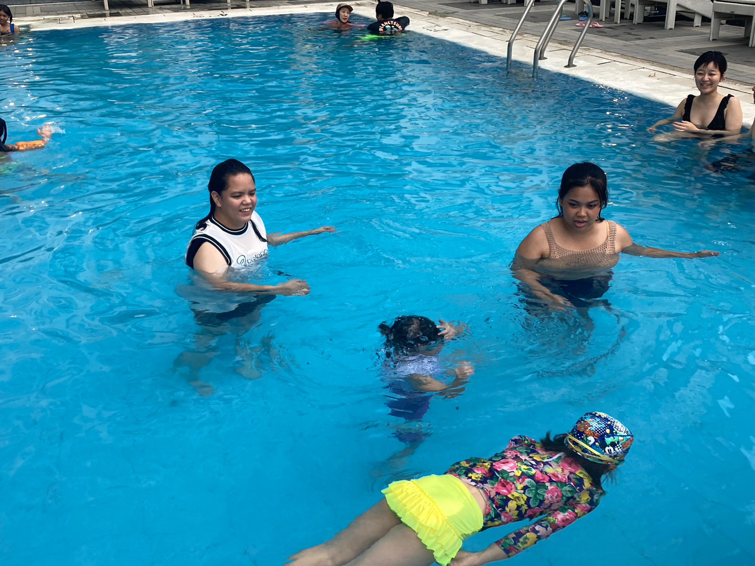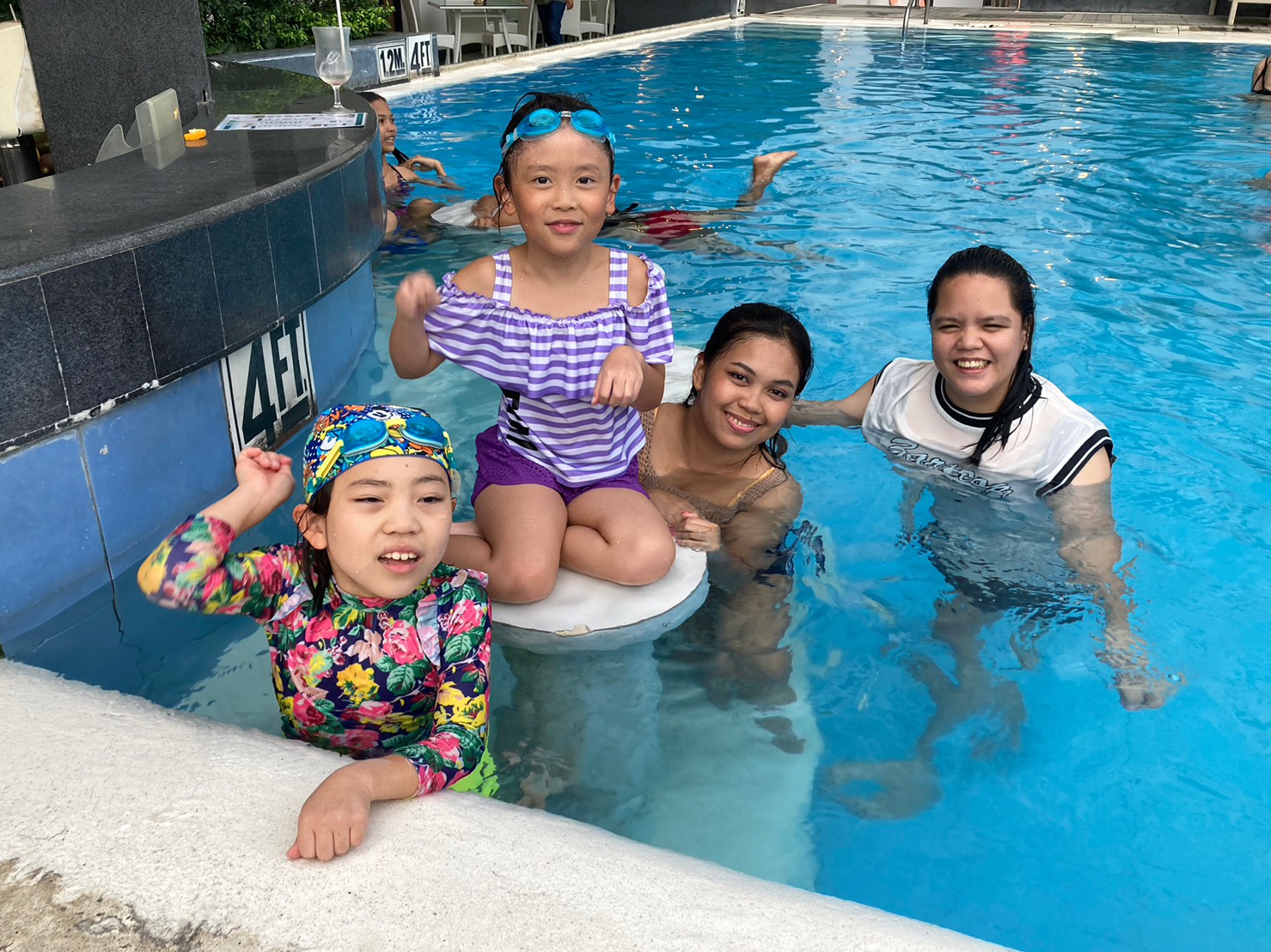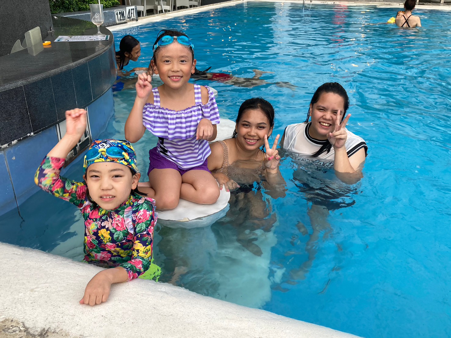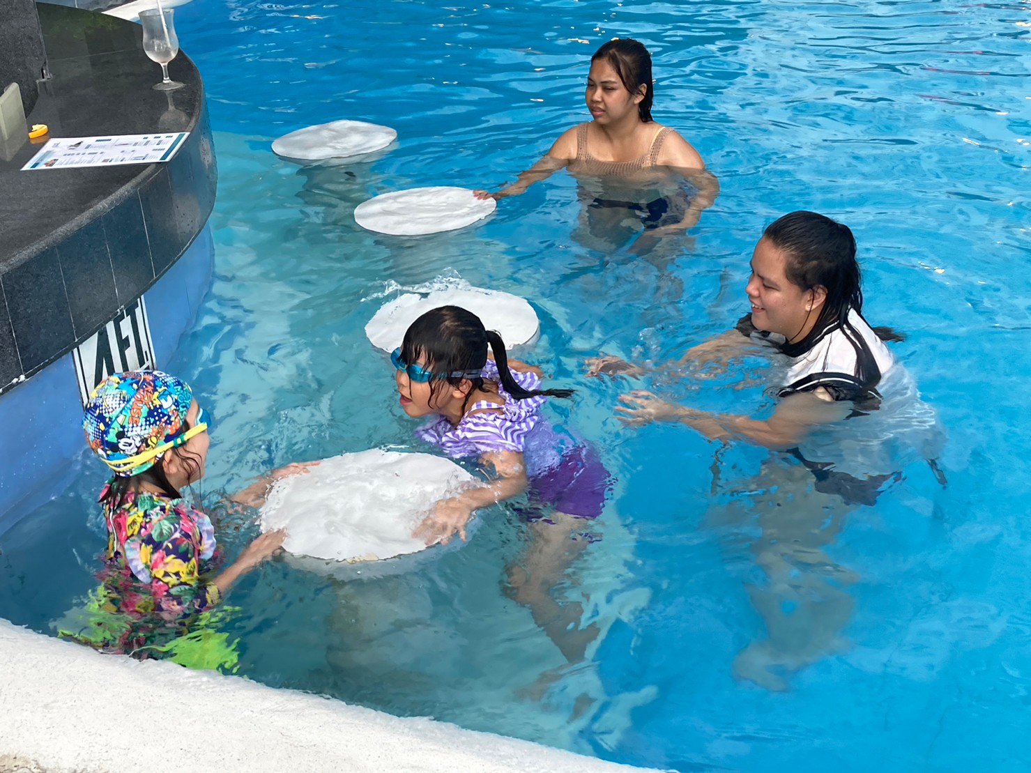 フィリピン講師も一緒に入って、英語で会話しながらのプール遊び!