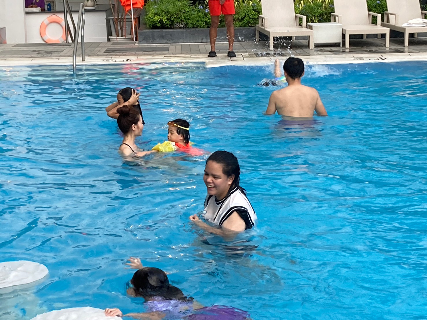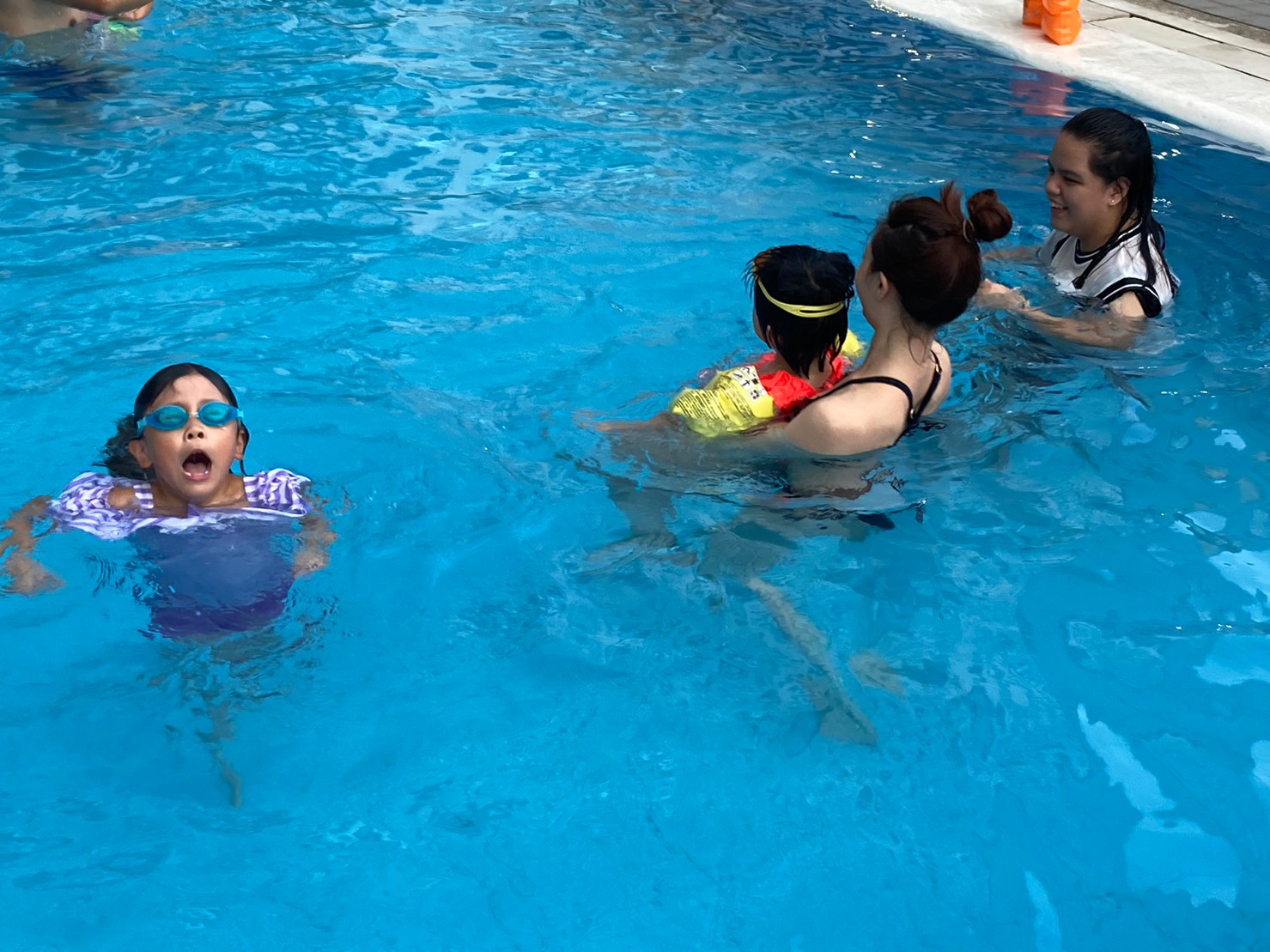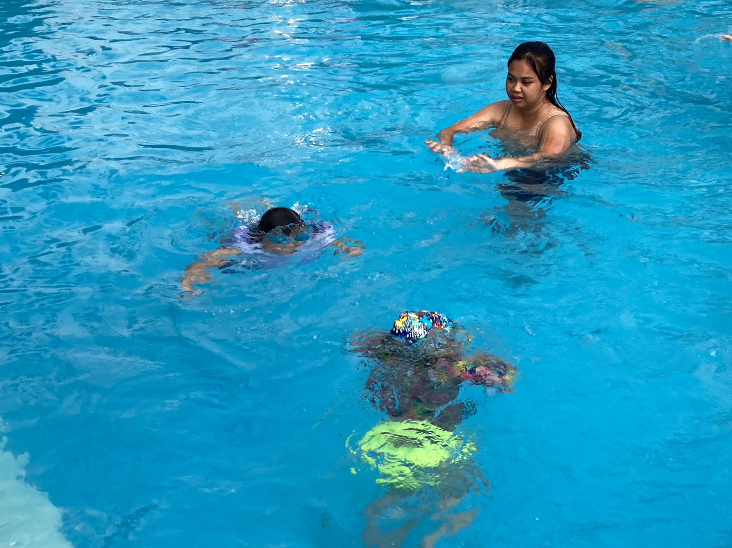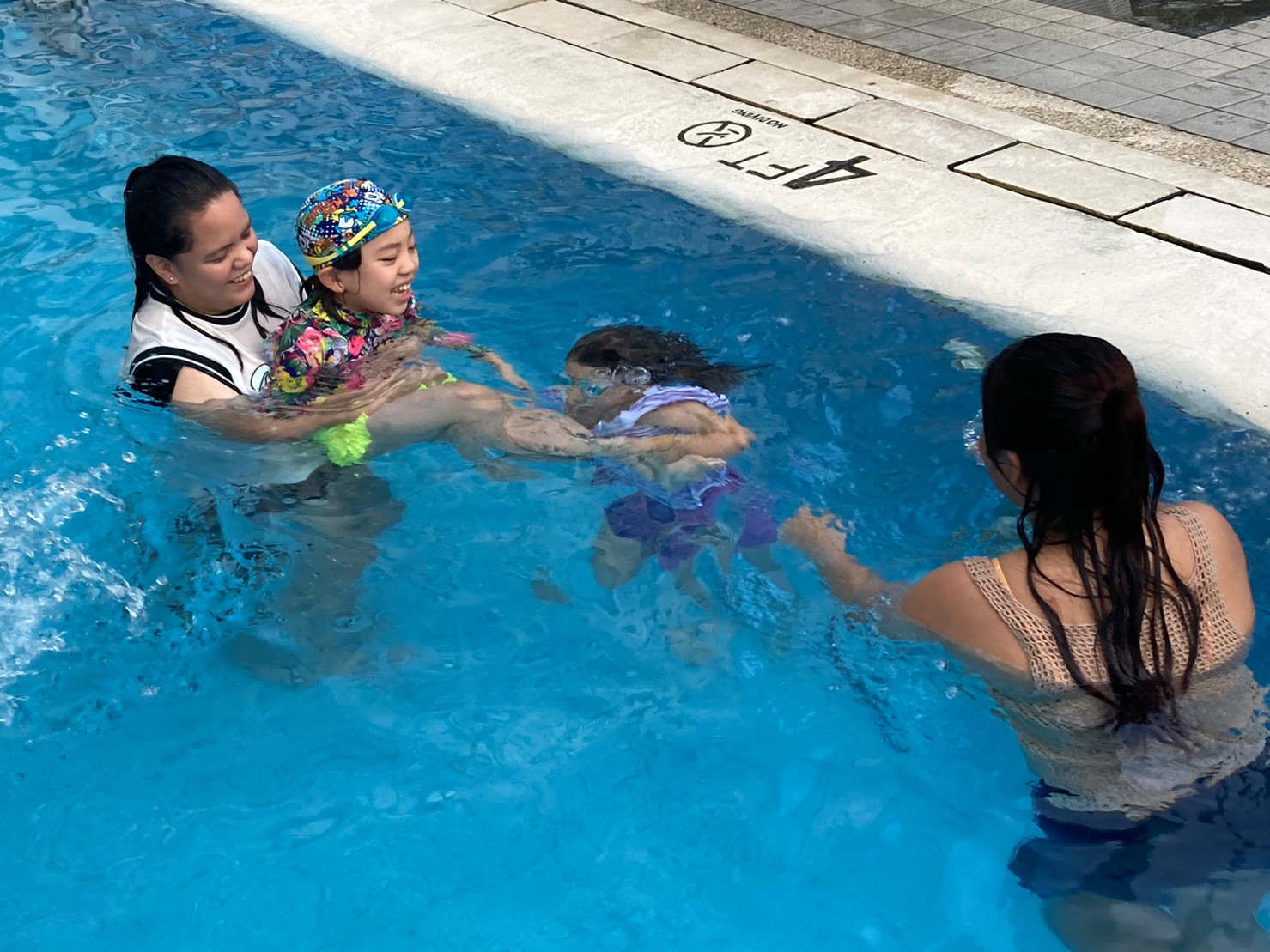 フィリピン講師も一緒に入って、英語で会話しながらのプール遊び!
