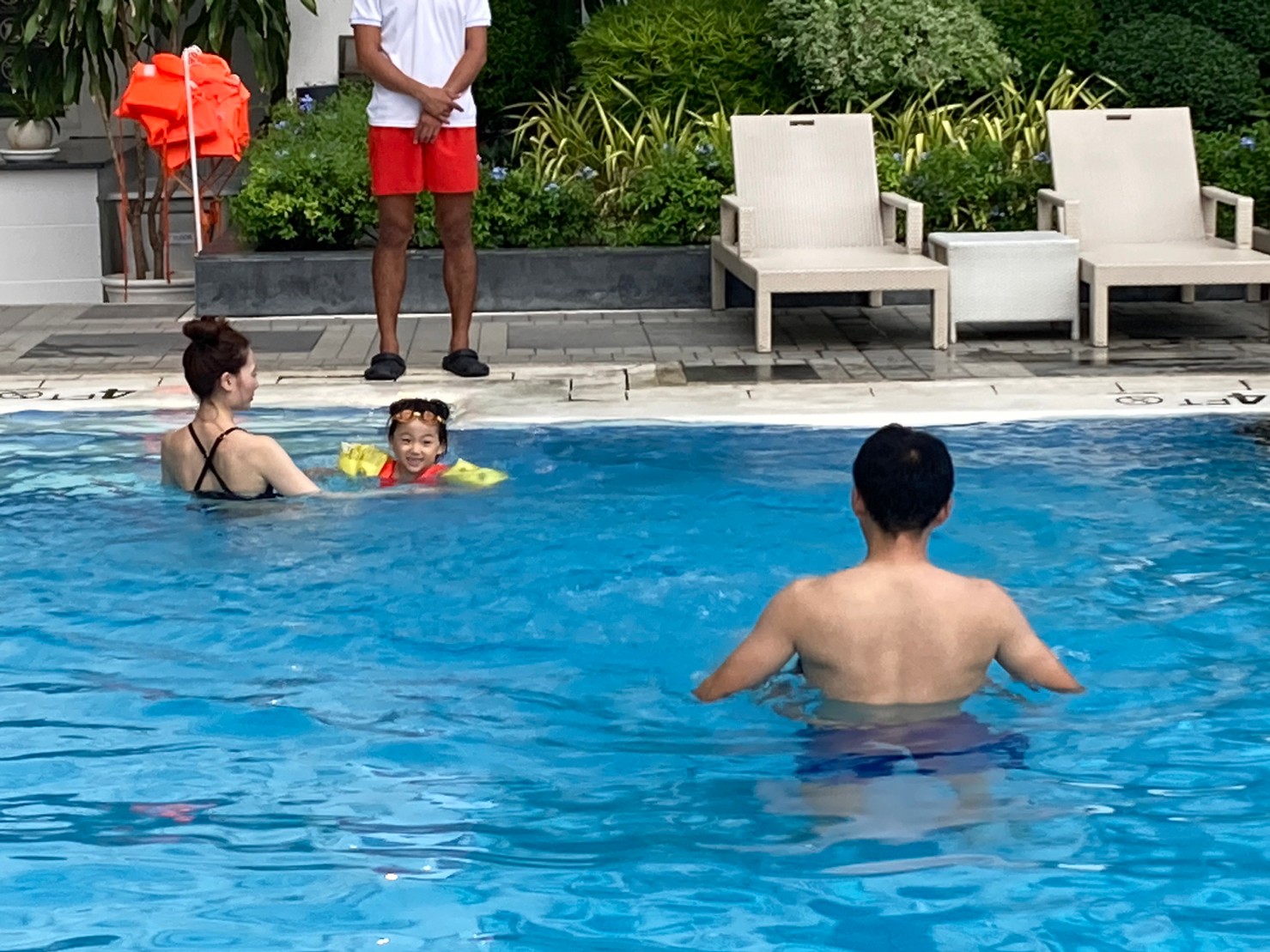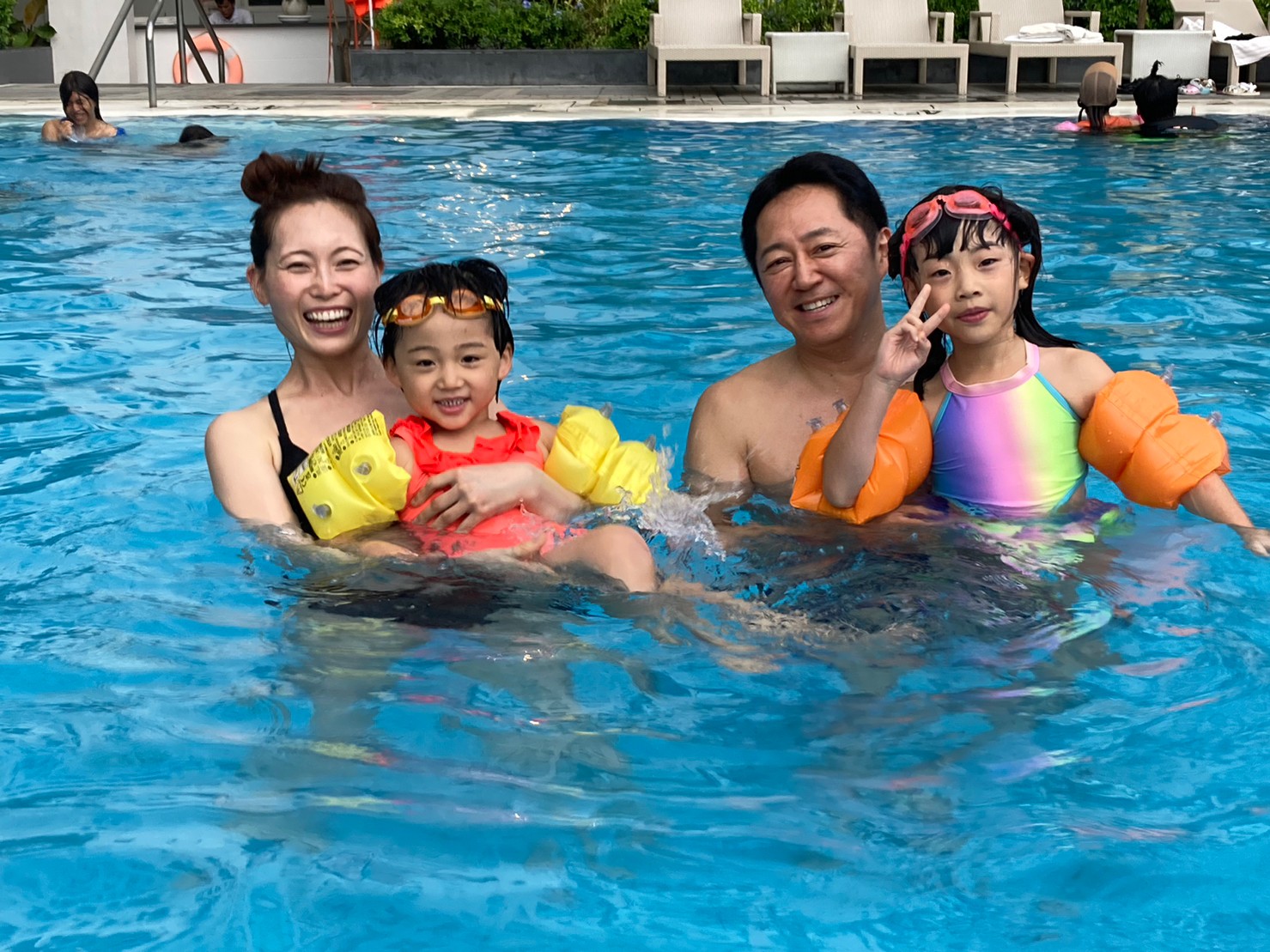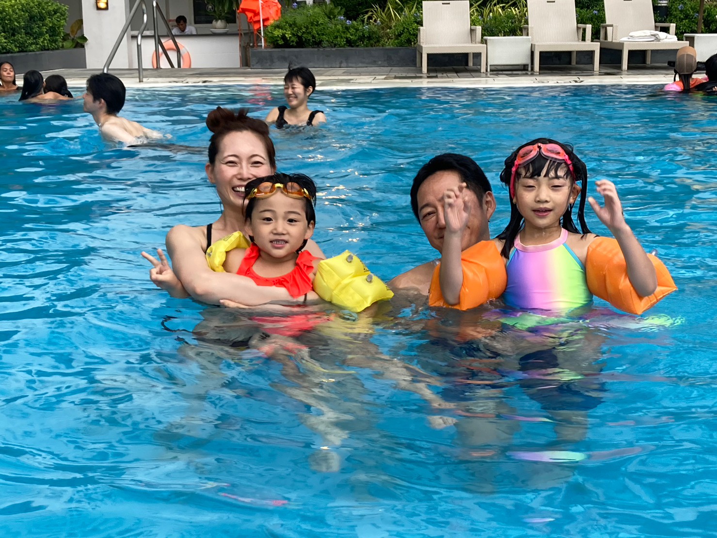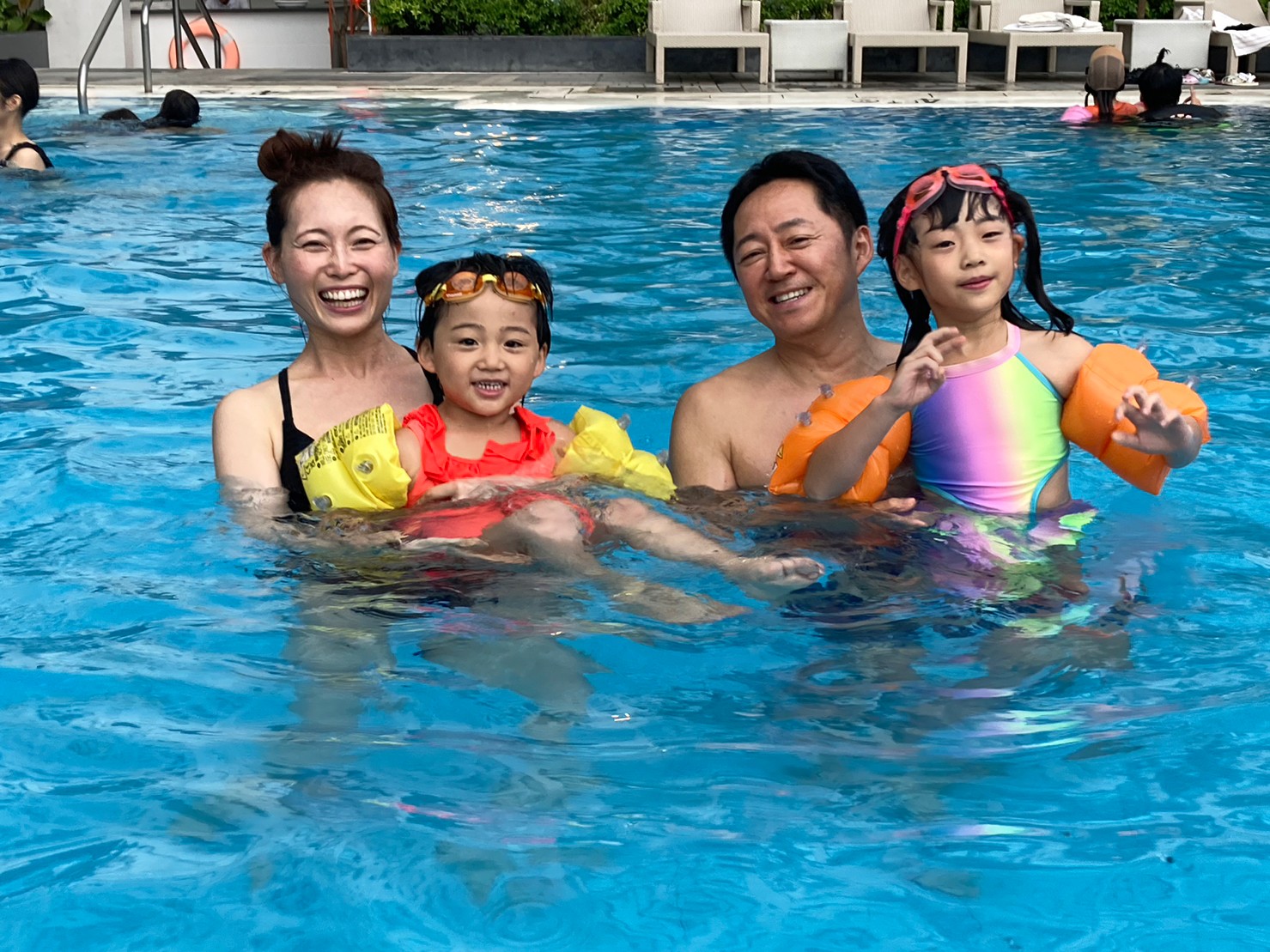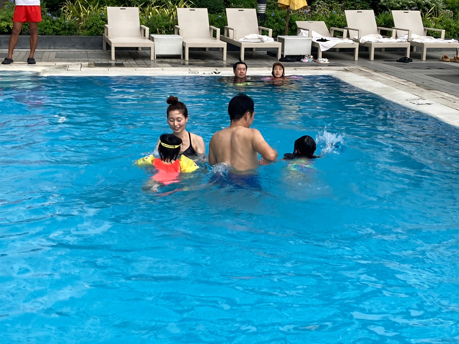 昨日一昨日と急な雨でプールに入れなかった分、晴天の中でのプールは最高に気持ちいいですね♪