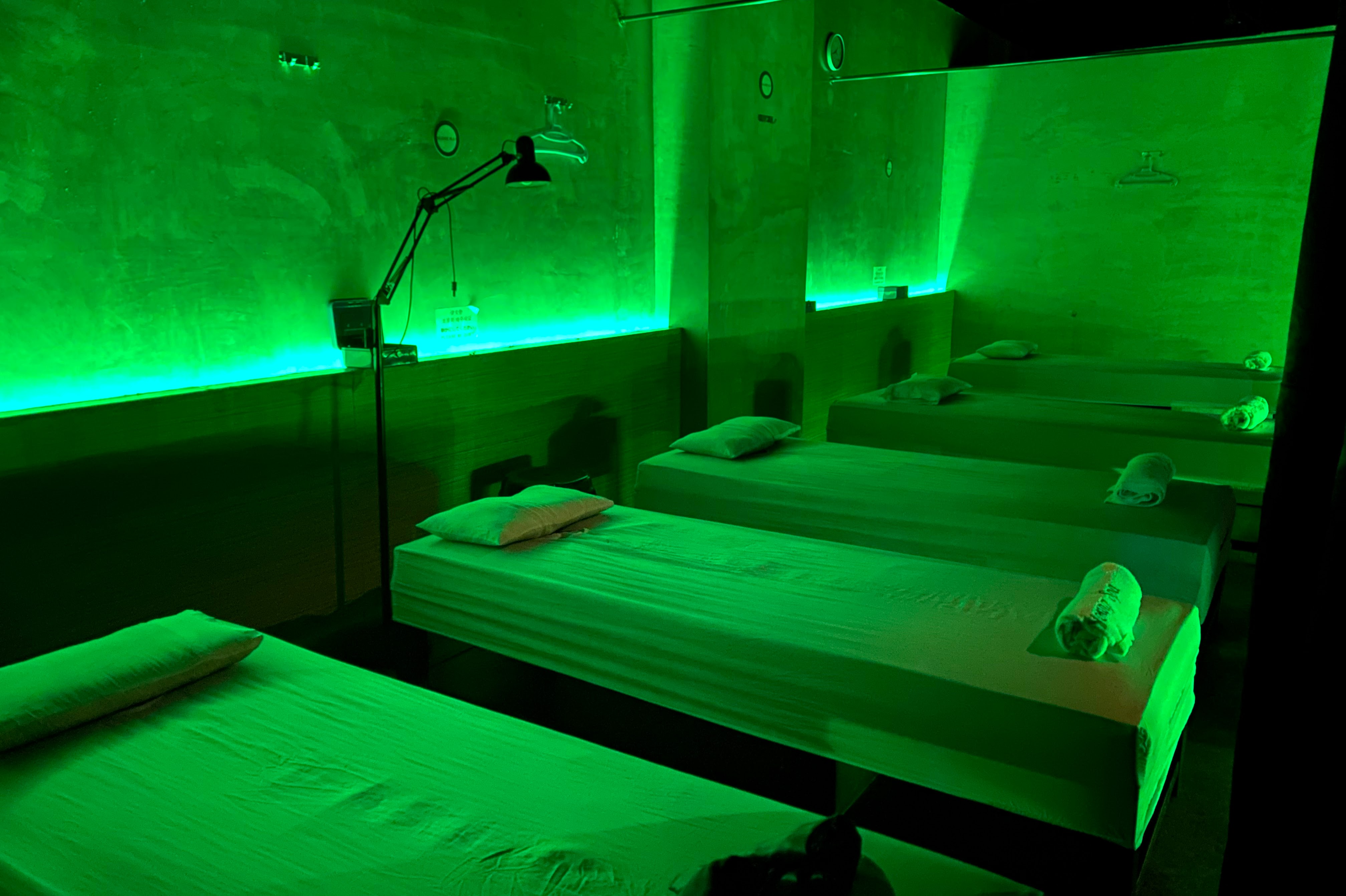 ベッド12台・シャワー室2部屋・トイレ(CR)2つを完備。さらにサウナ室もあります♪