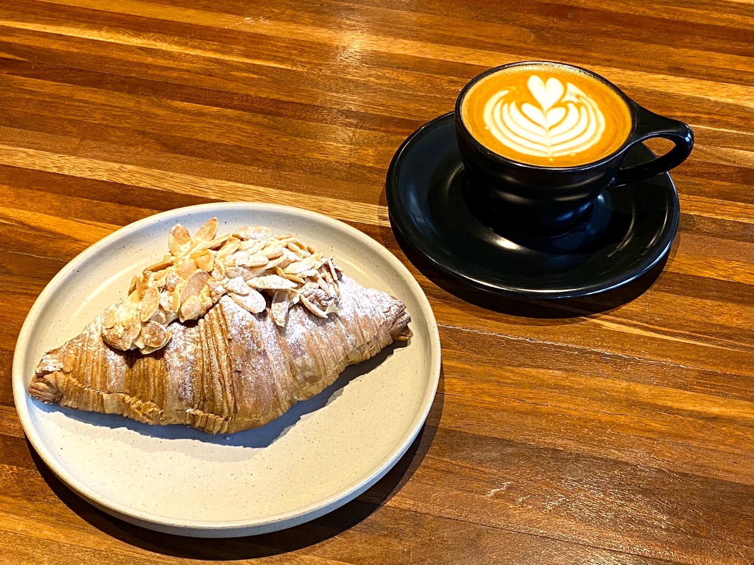 - 個人的に好きなのはこの組み合わせ!アーモンドクリームがちょうどよい甘さ!ナッツ好きな方は気に入るはず✨ラテとの相性も抜群です。
