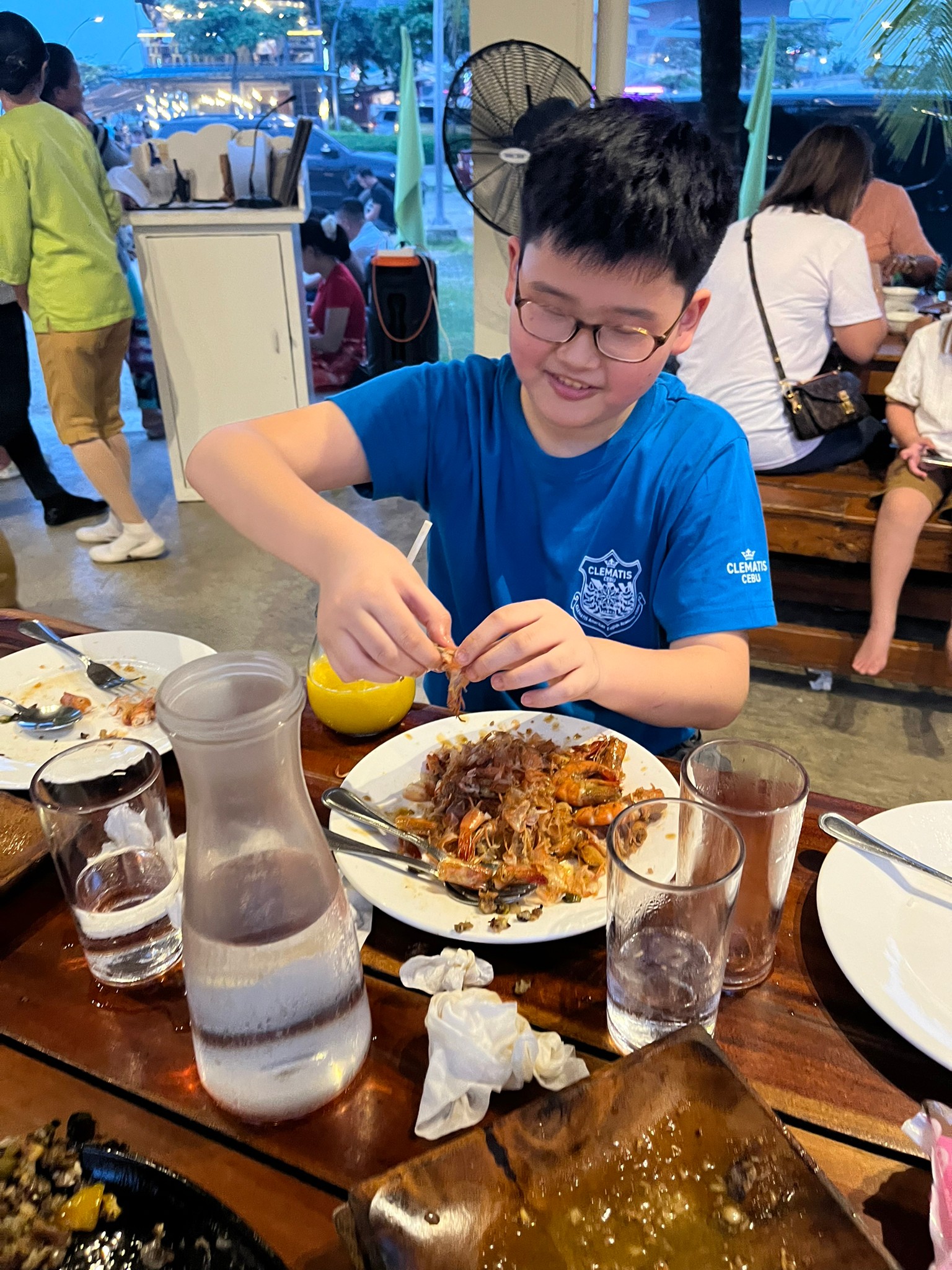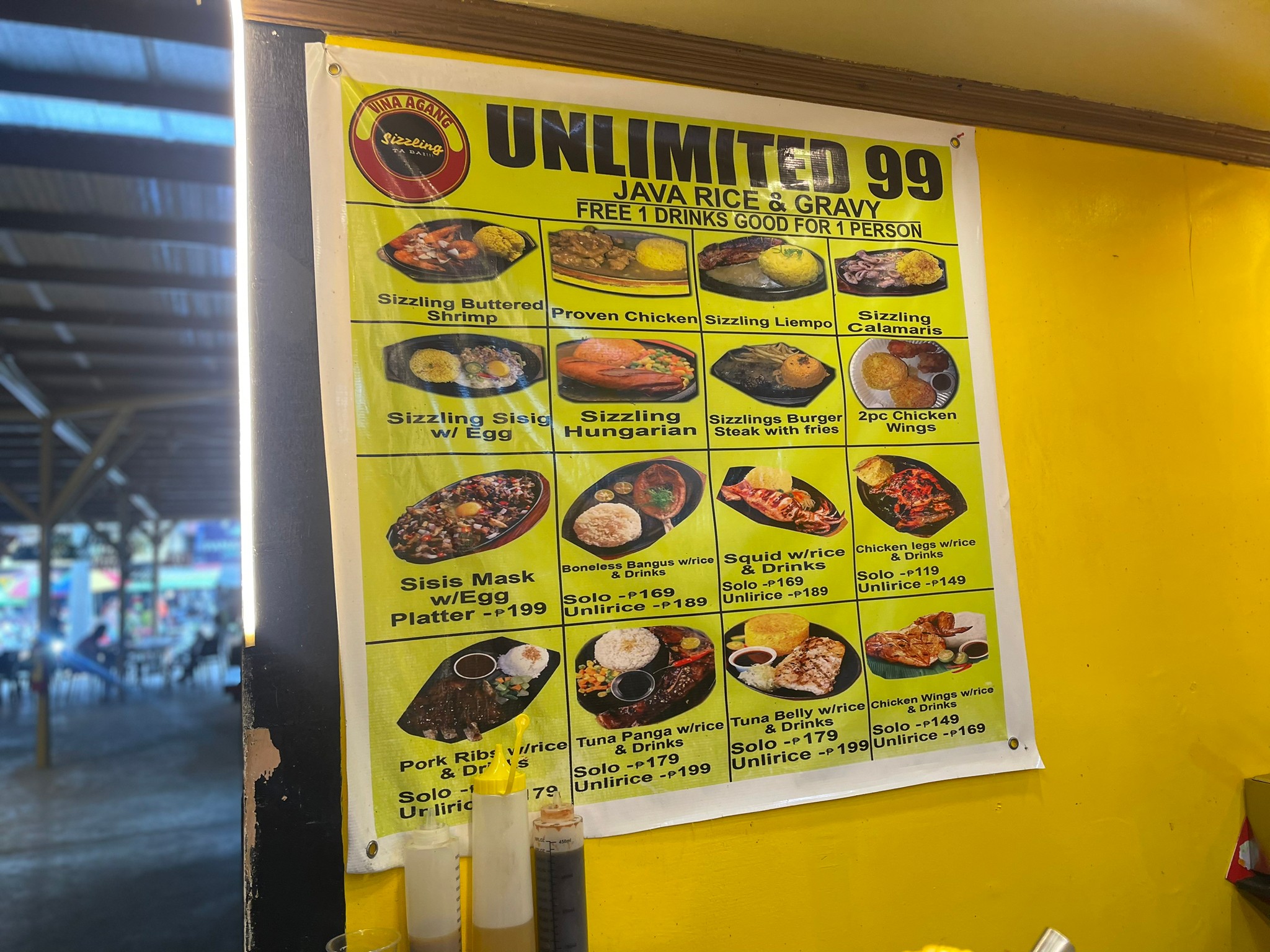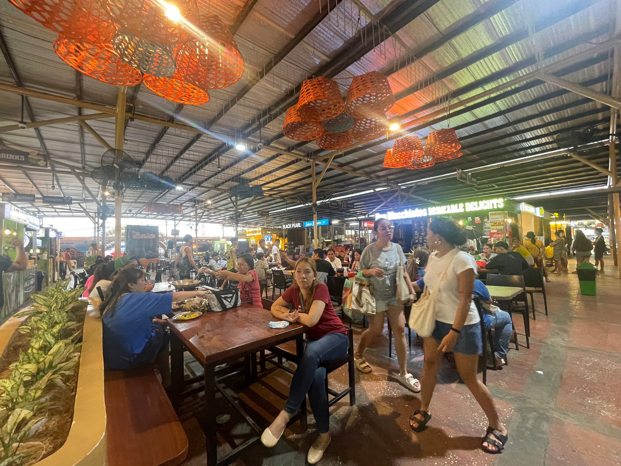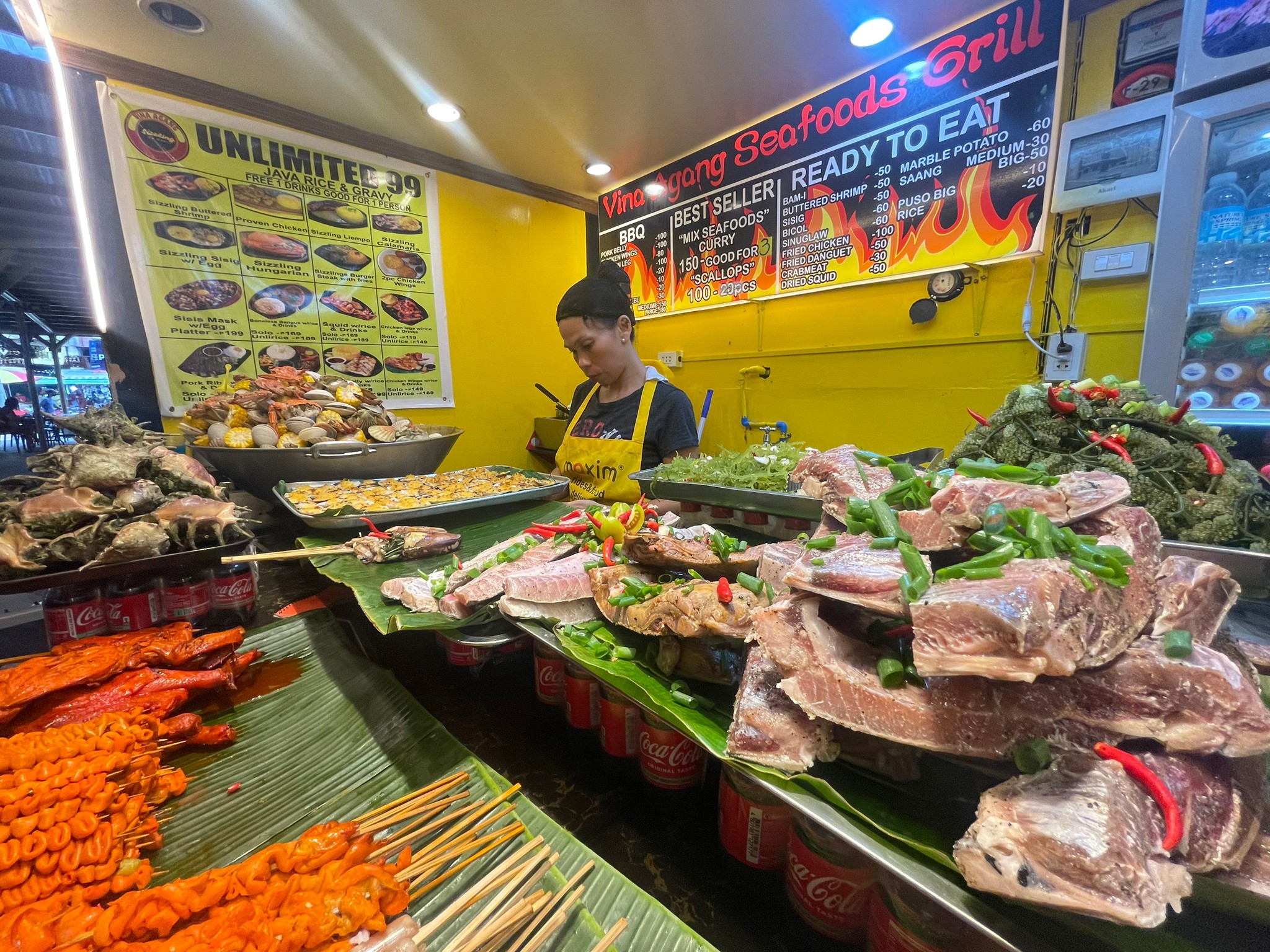 今宵のご馳走は、車で30分ほど移動したシーサイドにあるフィリピン料理店「New Lantaw Ⅱ Corso」。口コミ評価も高い、活気あるお店です。