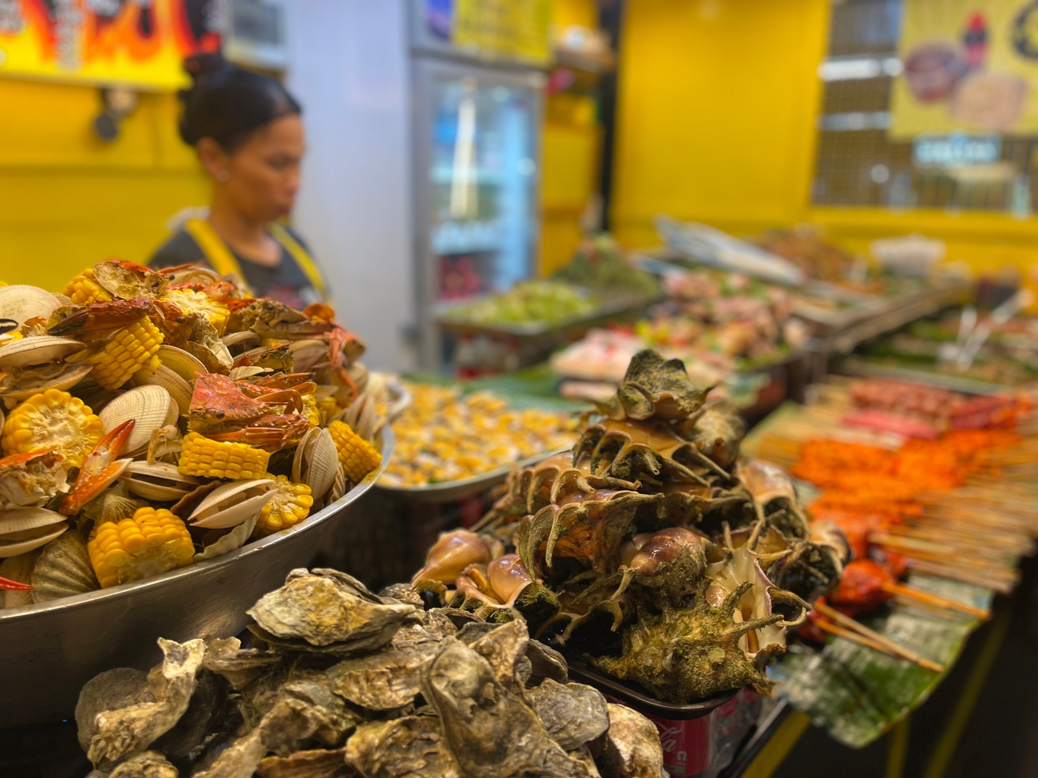 新鮮なフルーツや魚介、豚の丸焼きなど日本で見たこともないようなフードがずらり!