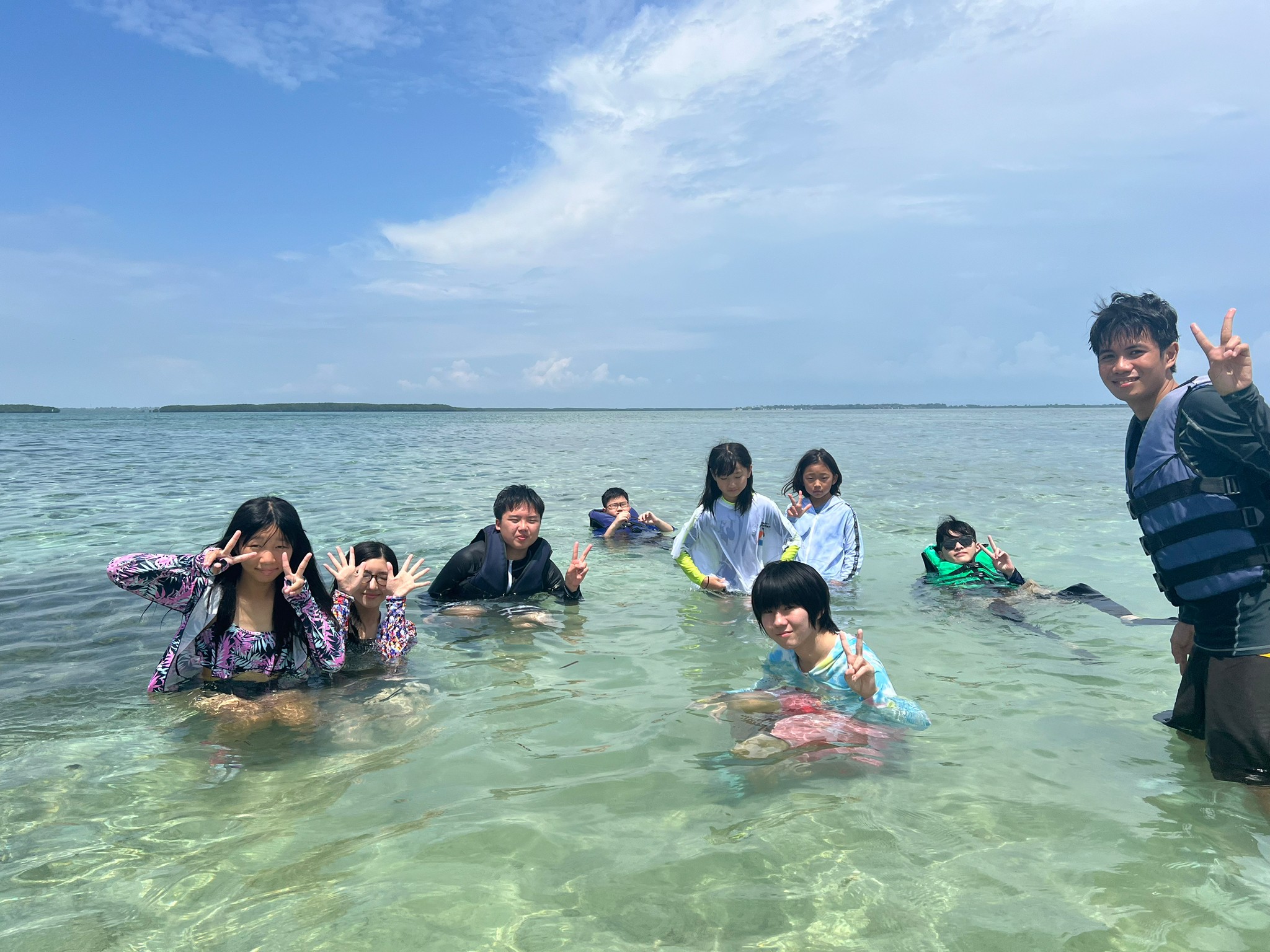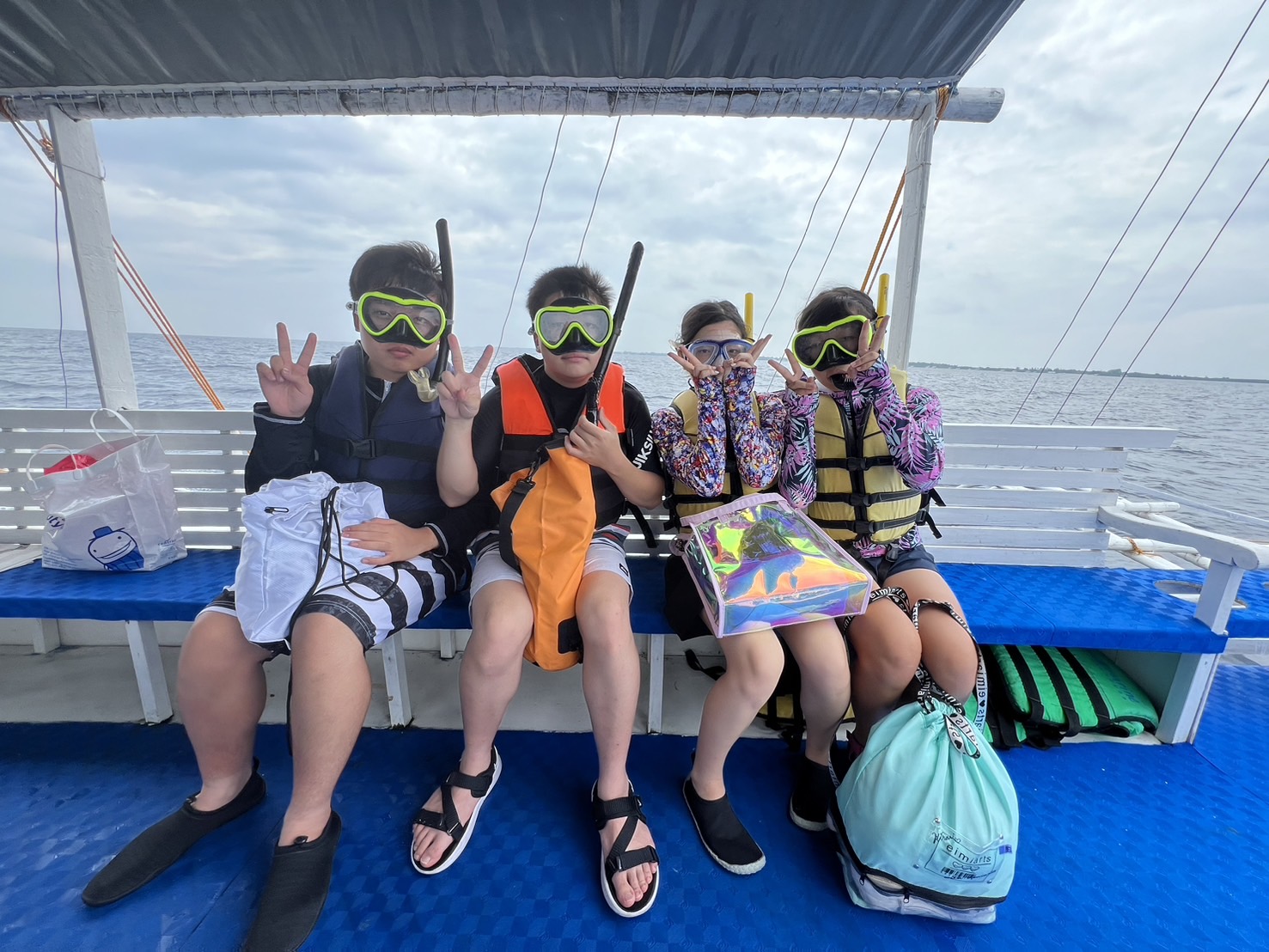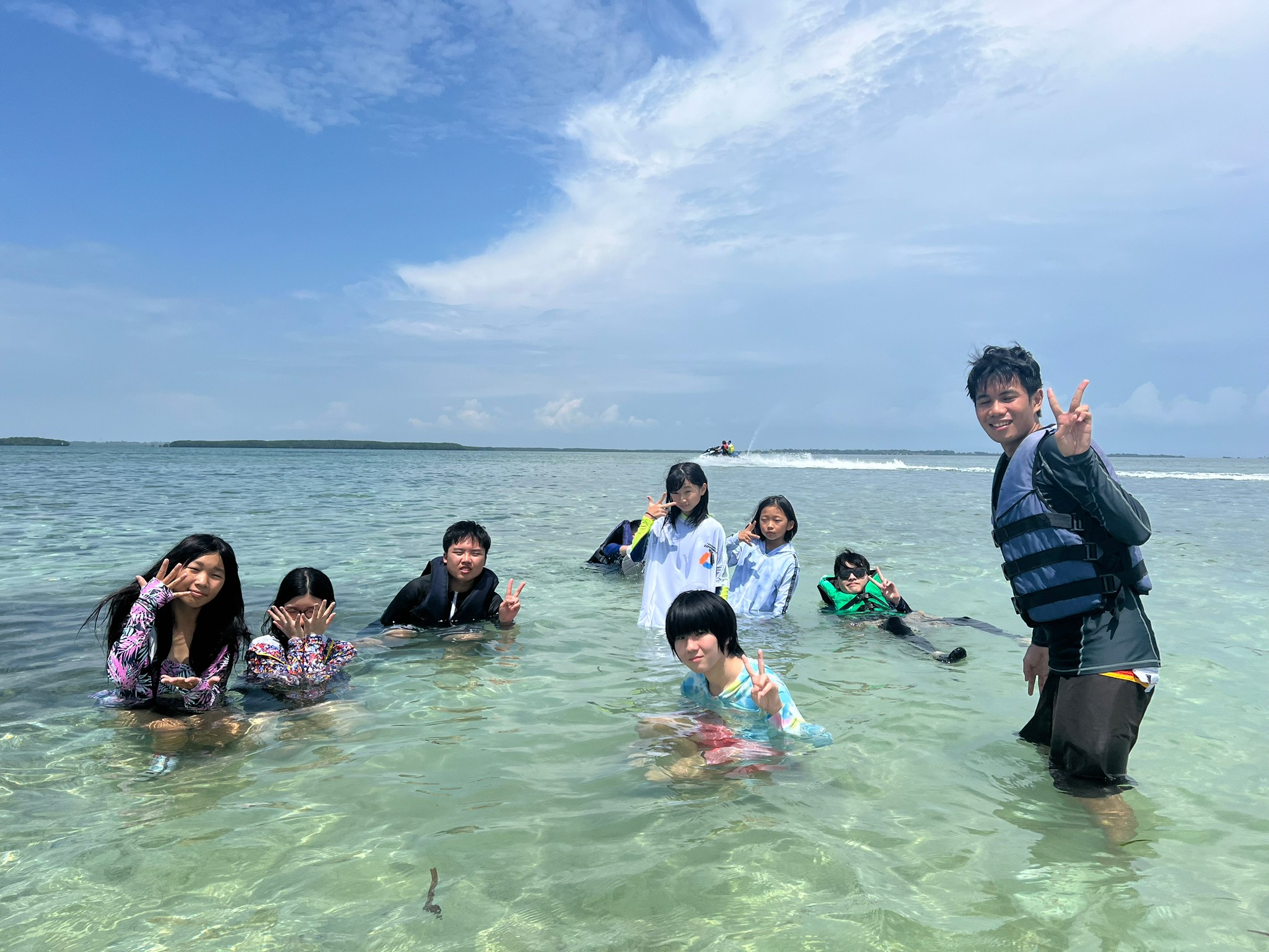 ライフジャケットとゴーグルを装着し、準備万端!近づいてくる島に胸が高鳴ります♪