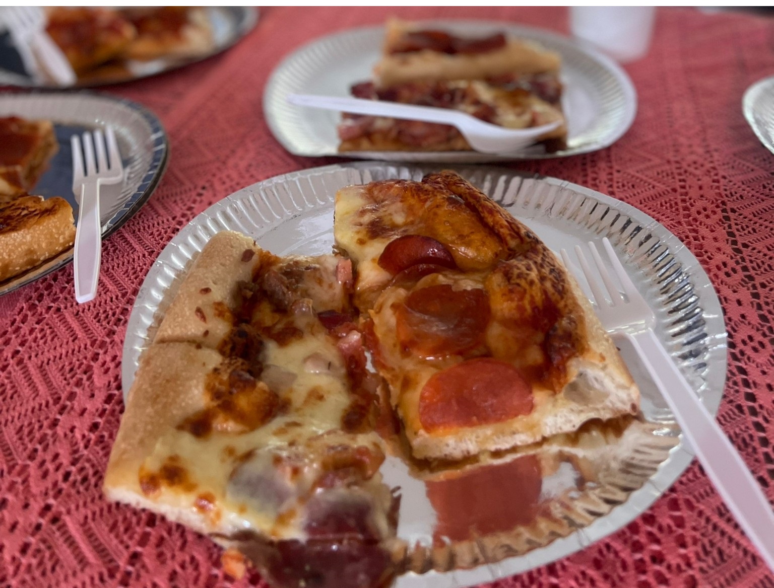 午前中たっぷりとみんなと歌やダンス、ゲームやサイエンスなどを楽しんだら、美味しいピザタイム!