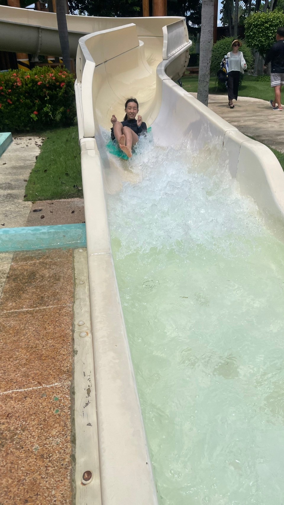 長さ120mと150mの2本の大型スライダー、円状でぐるぐると螺旋を描きながら落ちるスペースボウルのほか、アイランドプール、ゆったりと流れるアマゾンリバー、人口の波を楽しめるウェーブライダー、人工ビーチ、海賊船が浮かぶキャンプテンフックプールや水深約50cmキッズプール。趣向が異なる6つのプールがあり、満足感がスゴイ!思いきり遊び尽くしました♪