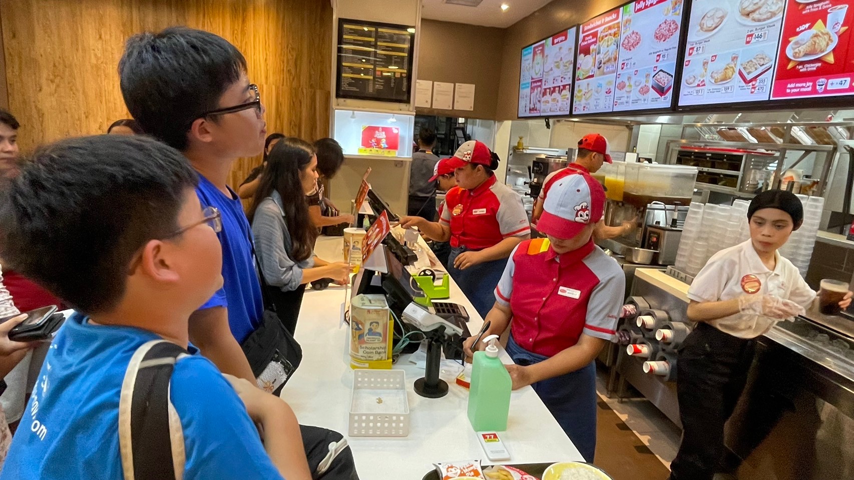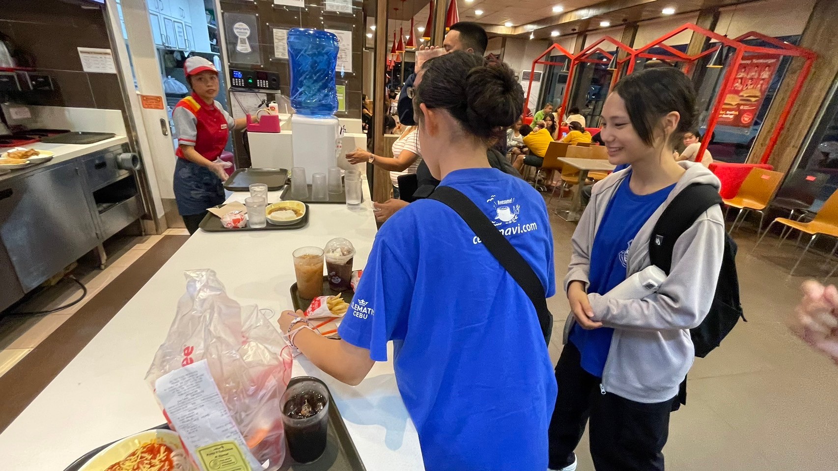 選んだのは、セブナビジュニアキャンプ御用達「Jolibee(ジョリビー)」♪ここでも、各自英語でオーダーを行いました。