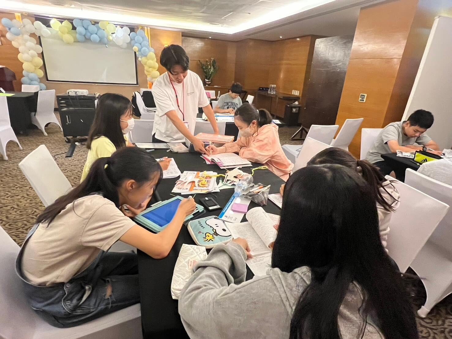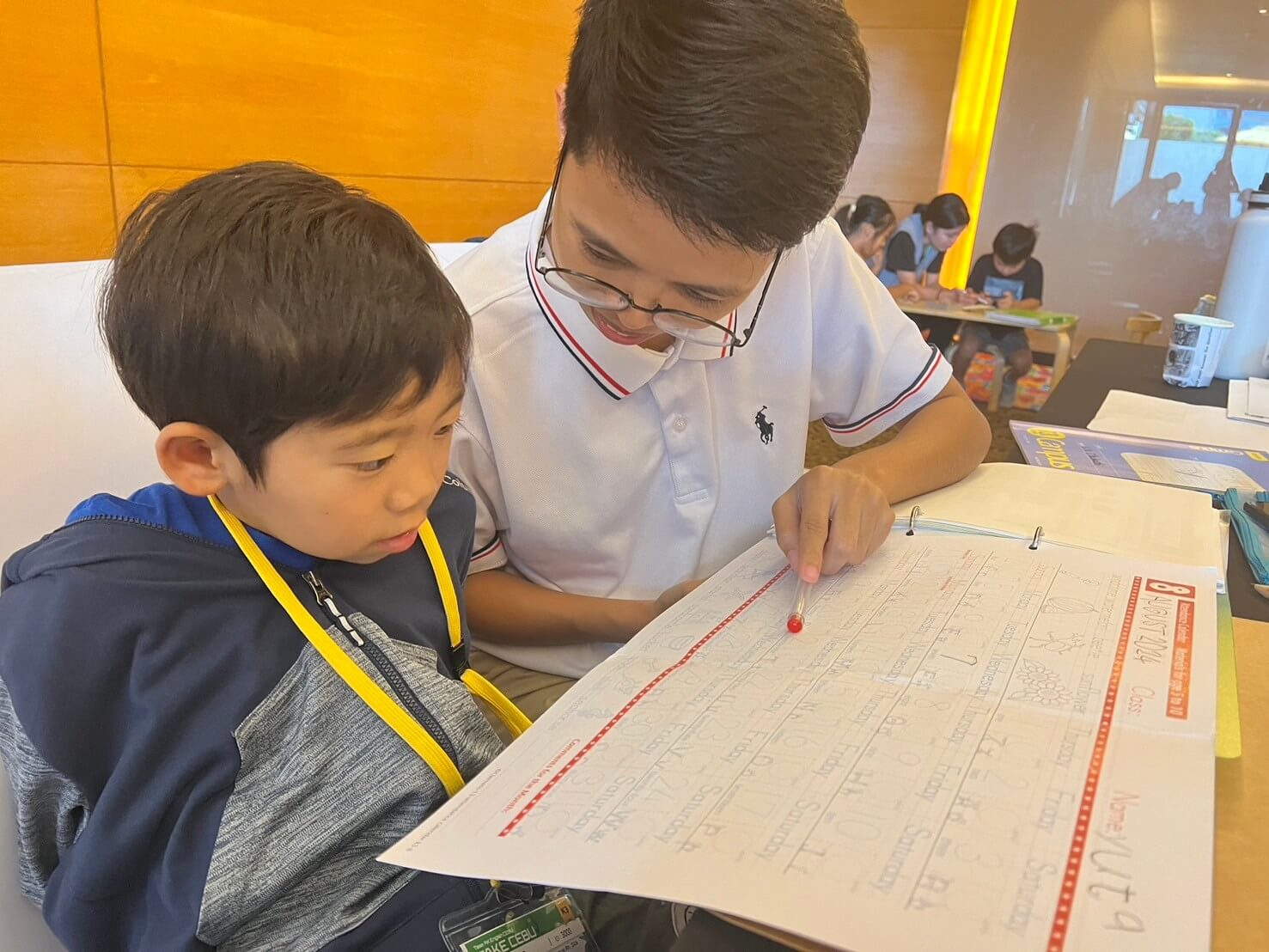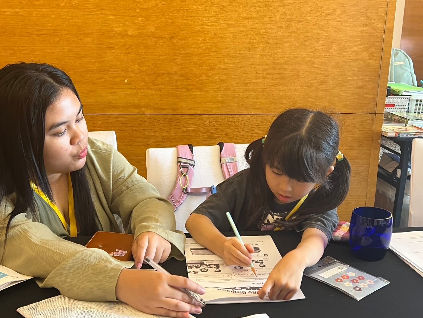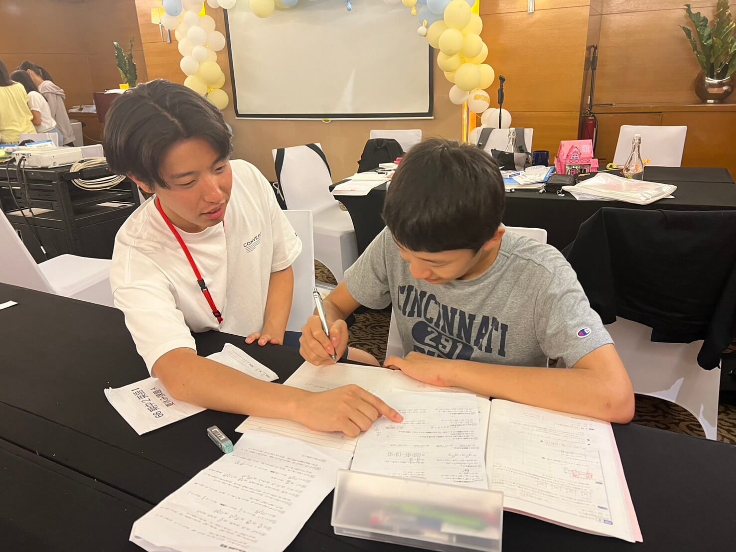 この日は、日本から来ている大学生のインターン講師がみなさんのデスクを回り勉強を見てくれました。