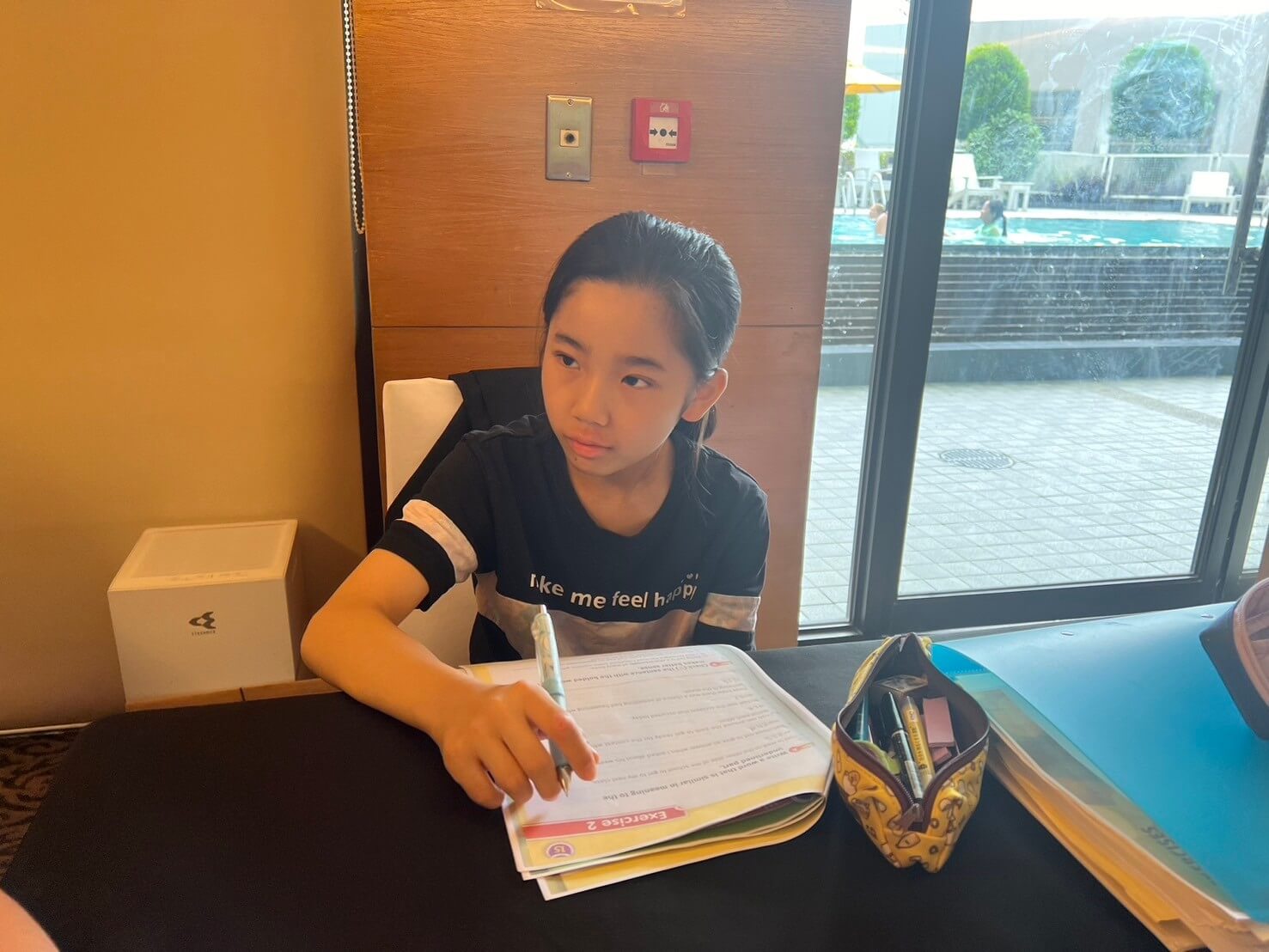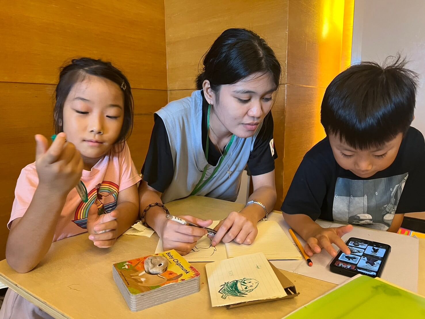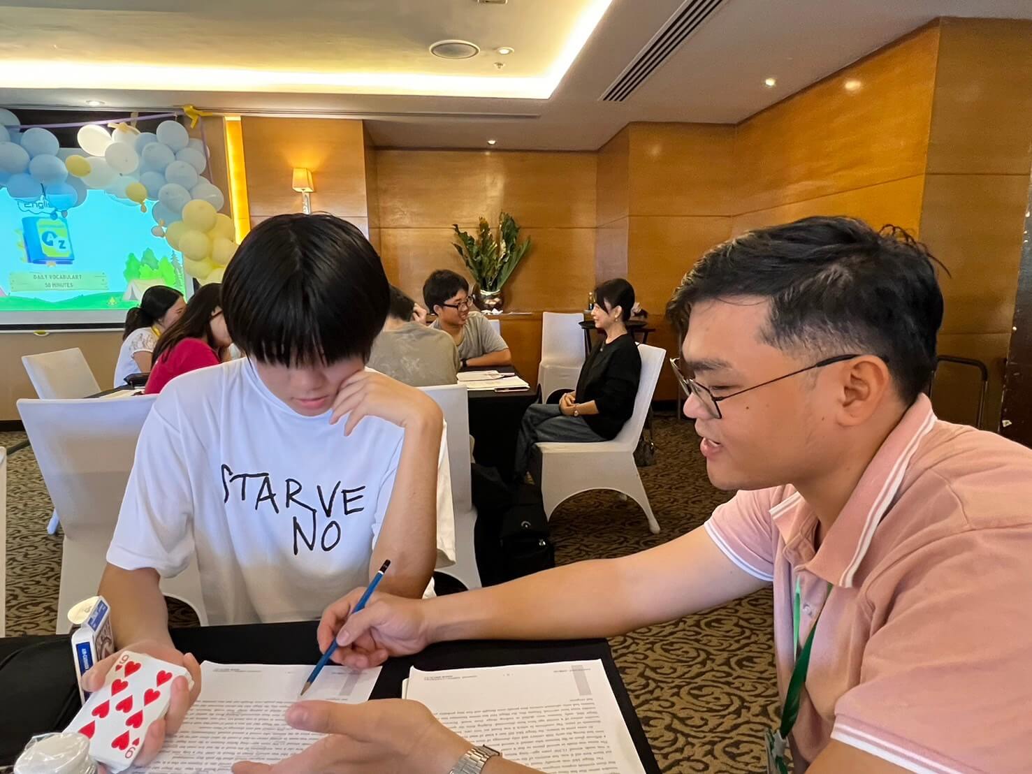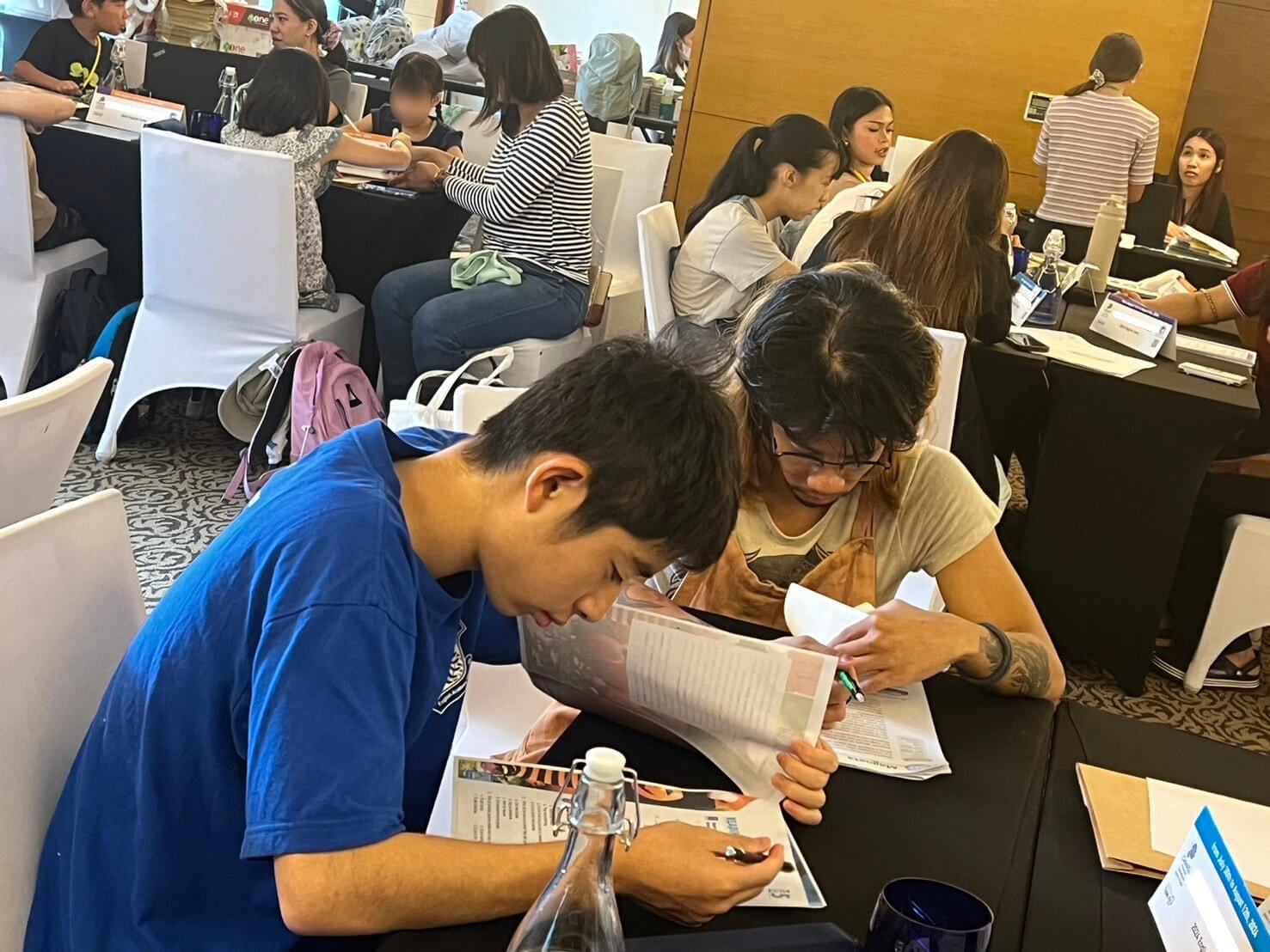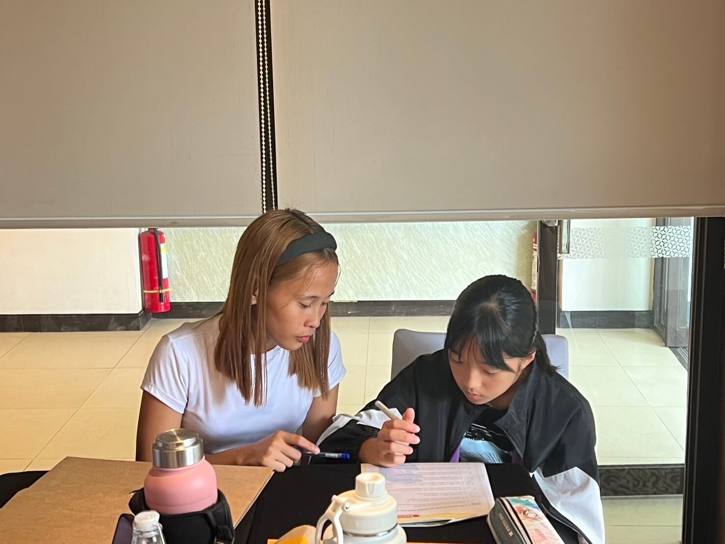 この日は、日本から来ている大学生のインターン講師がみなさんのデスクを回り勉強を見てくれました。
